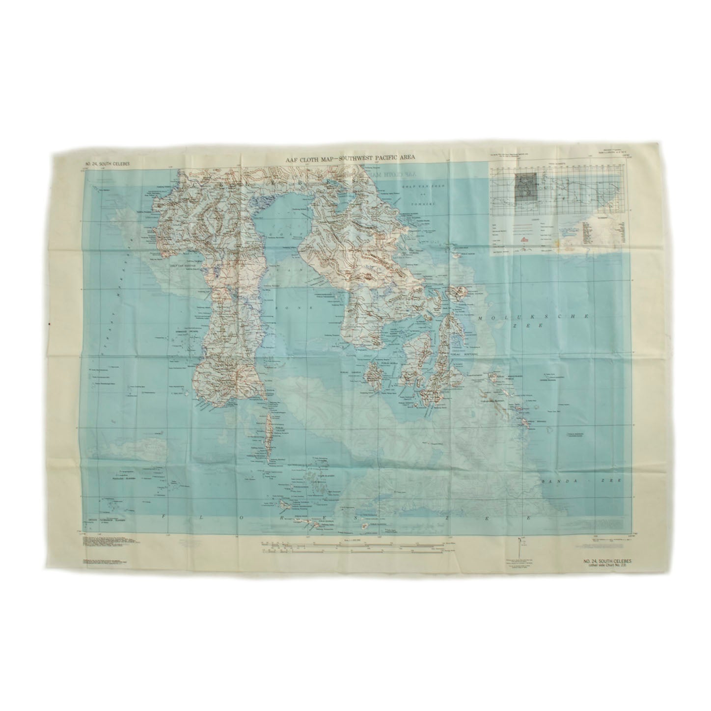 - 37 ½” x 25 ½” AAF Cloth Map - Southwest Pacific Area (1944): North Celebes and South Celebes.