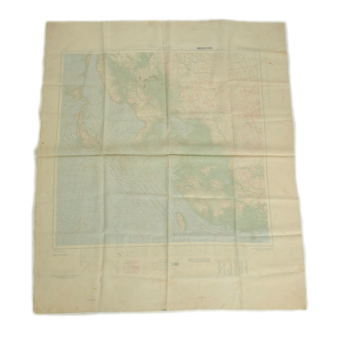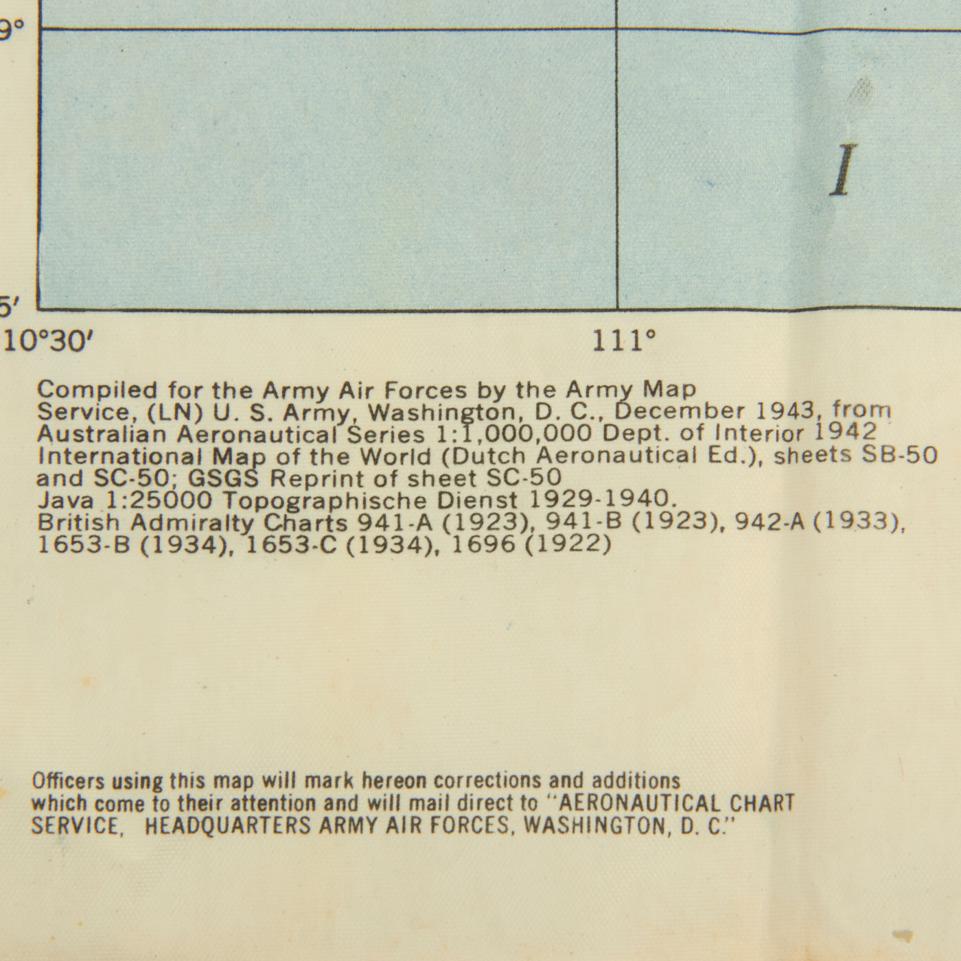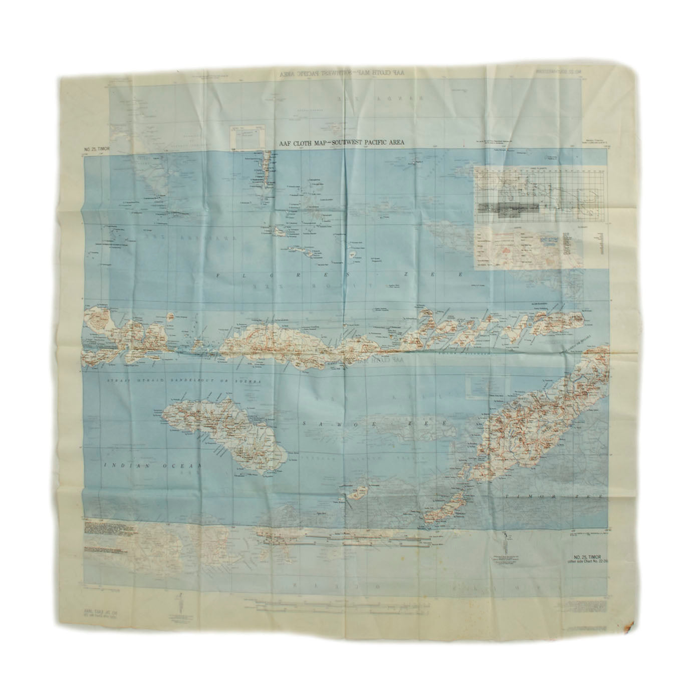 - 36” x 32 ½” AAF Cloth Map - Southwest Pacific Area (1944): Southwestern / East Java and Timor.