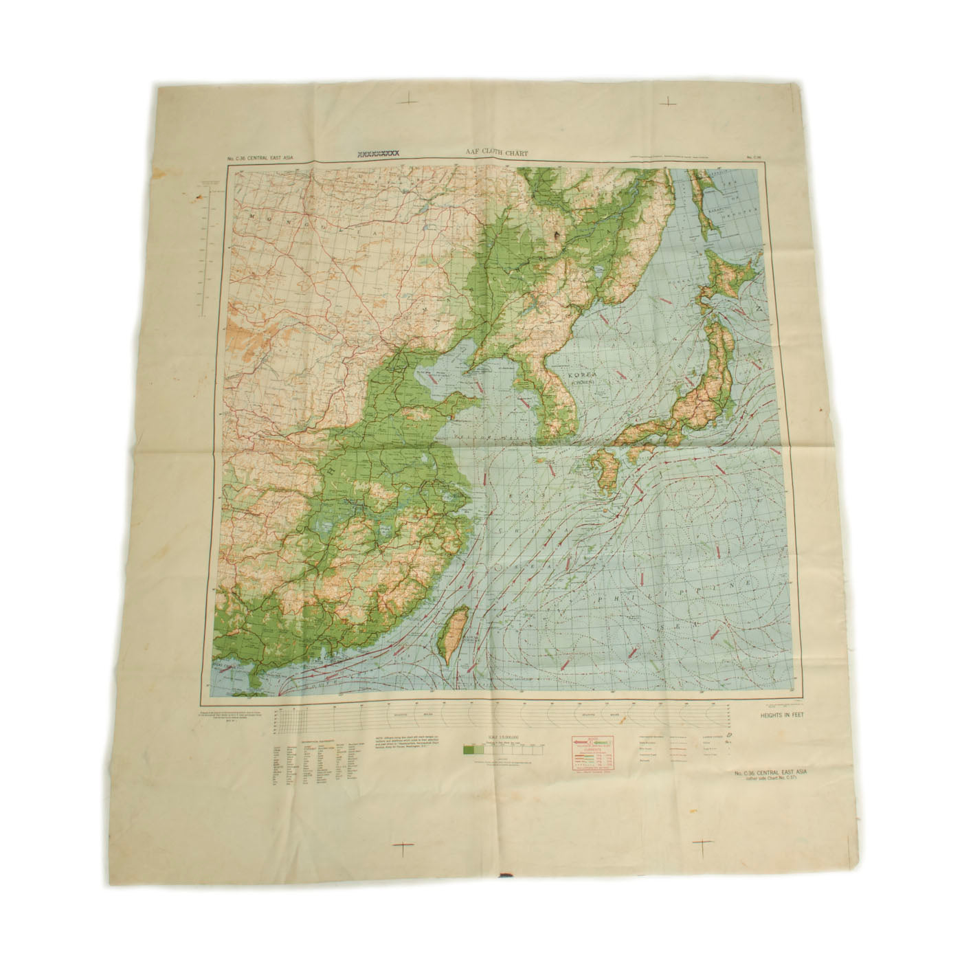 - 40 ½” x 33 ½” AAF Cloth Chart Central East Asia (1945): This is a single sided map, there are no other locations on the back side.