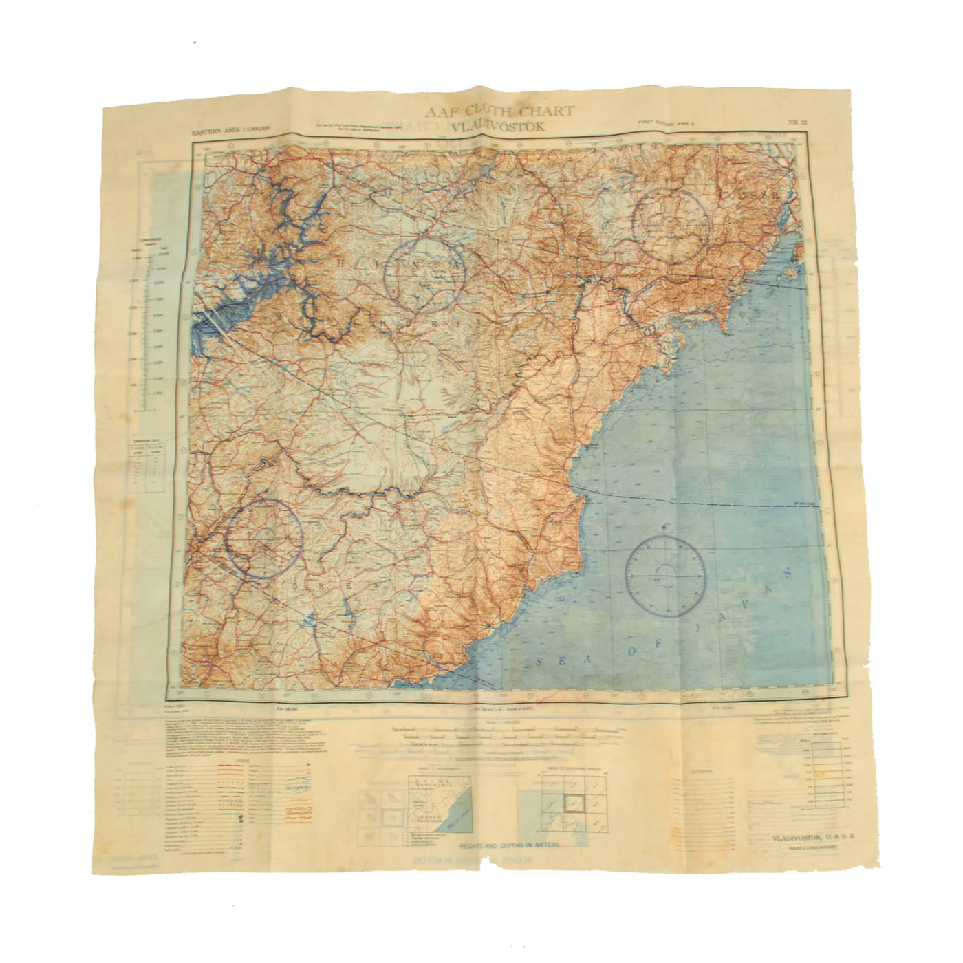 - 25” x 23 ½” AAF Cloth Chart Vladivostok - Eastern Asia / Keijō (1944)