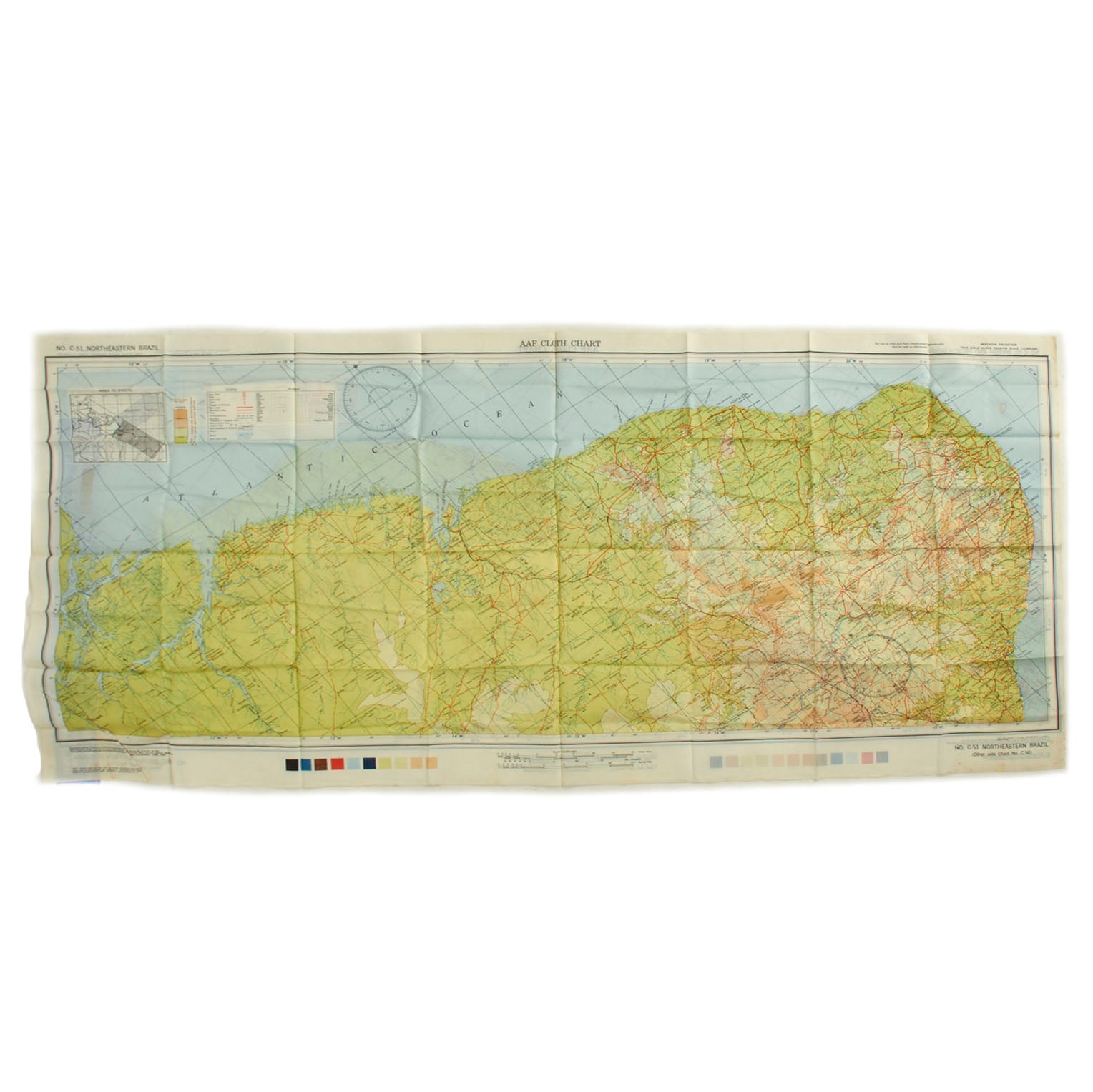 - 41 ½” x 20” AAF Cloth Chart North Eastern Brazil / British and French Guiana (1944)