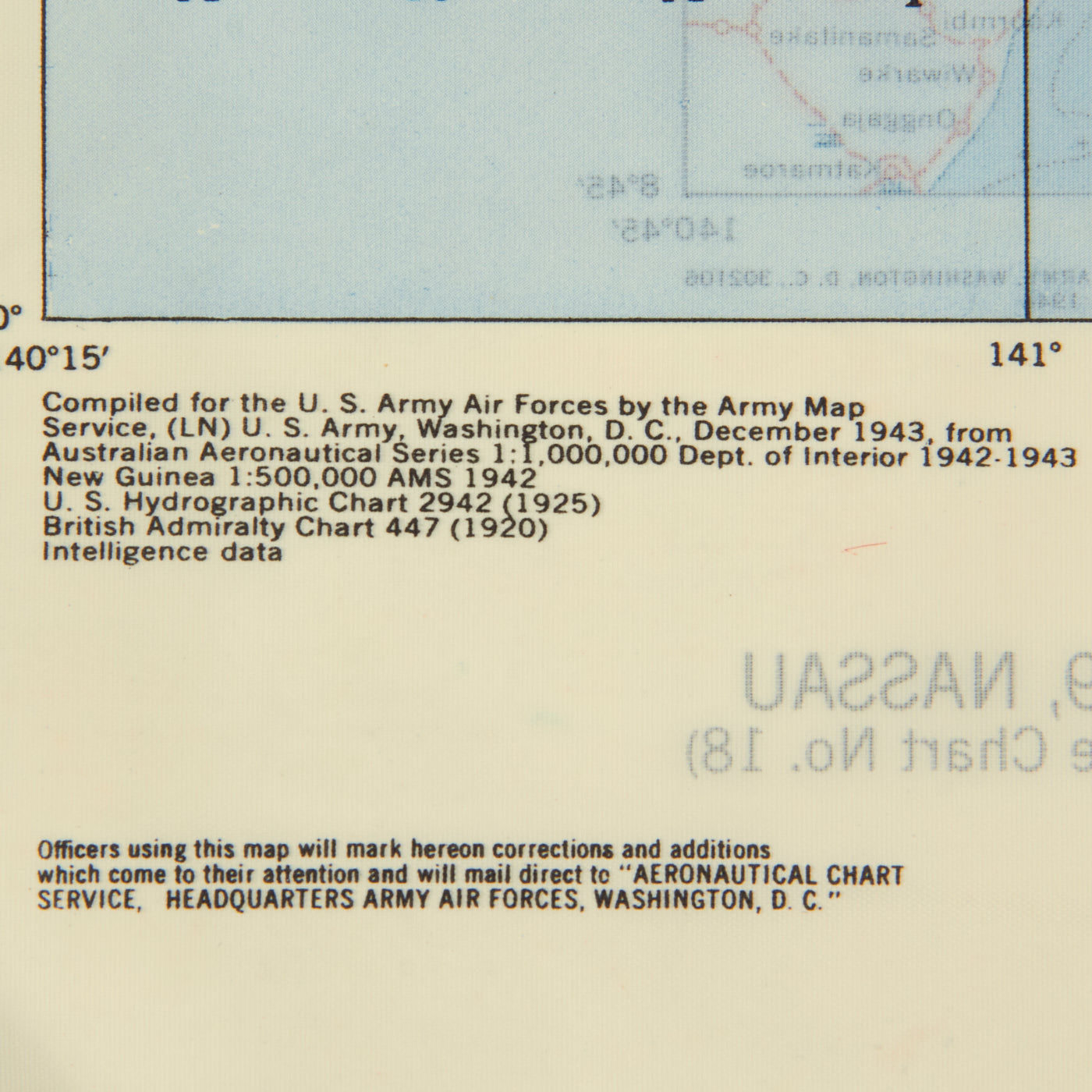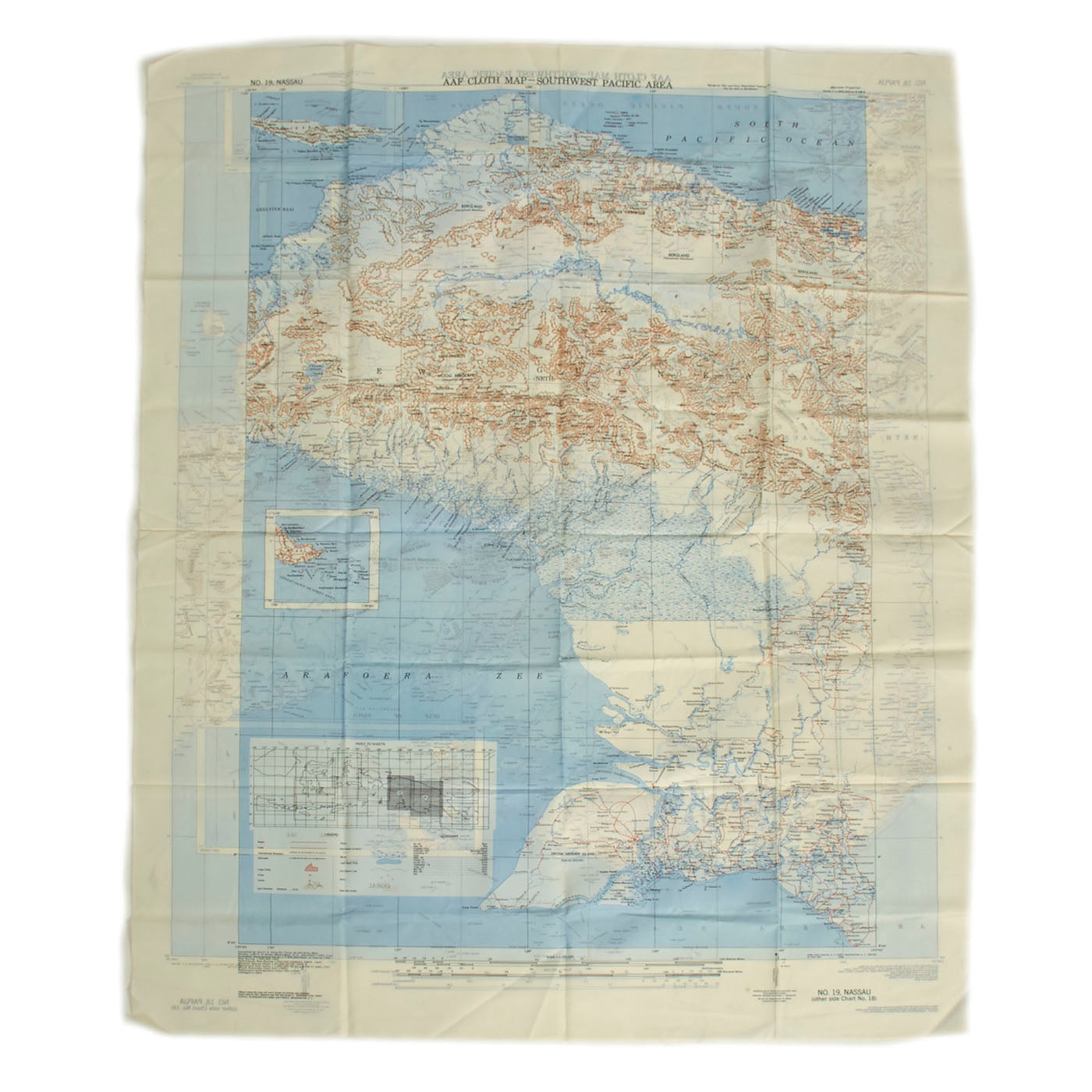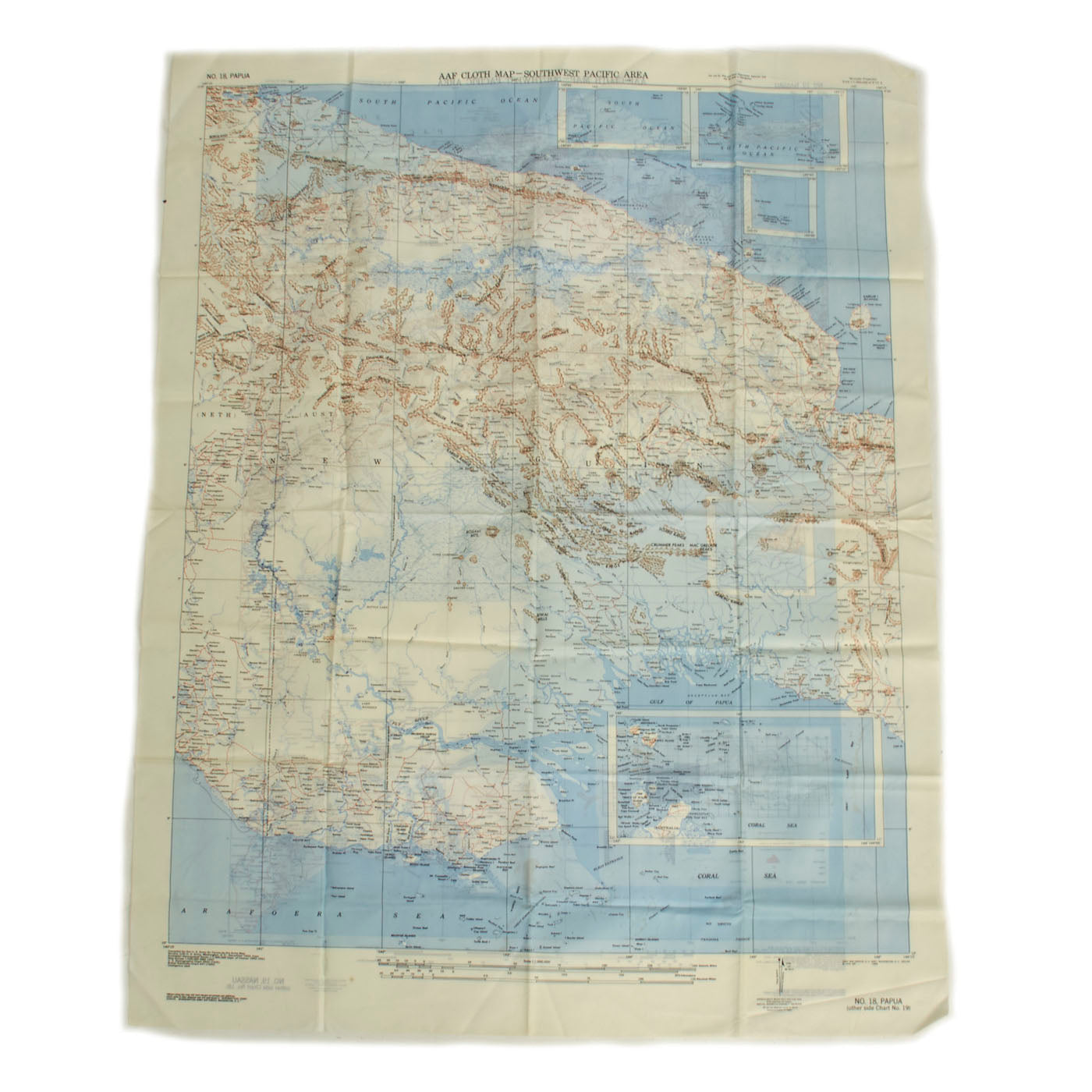 - 36 ½” x 28 ½” AAF Cloth Map - Southwest Pacific Area (1944): Papua and Nassau.