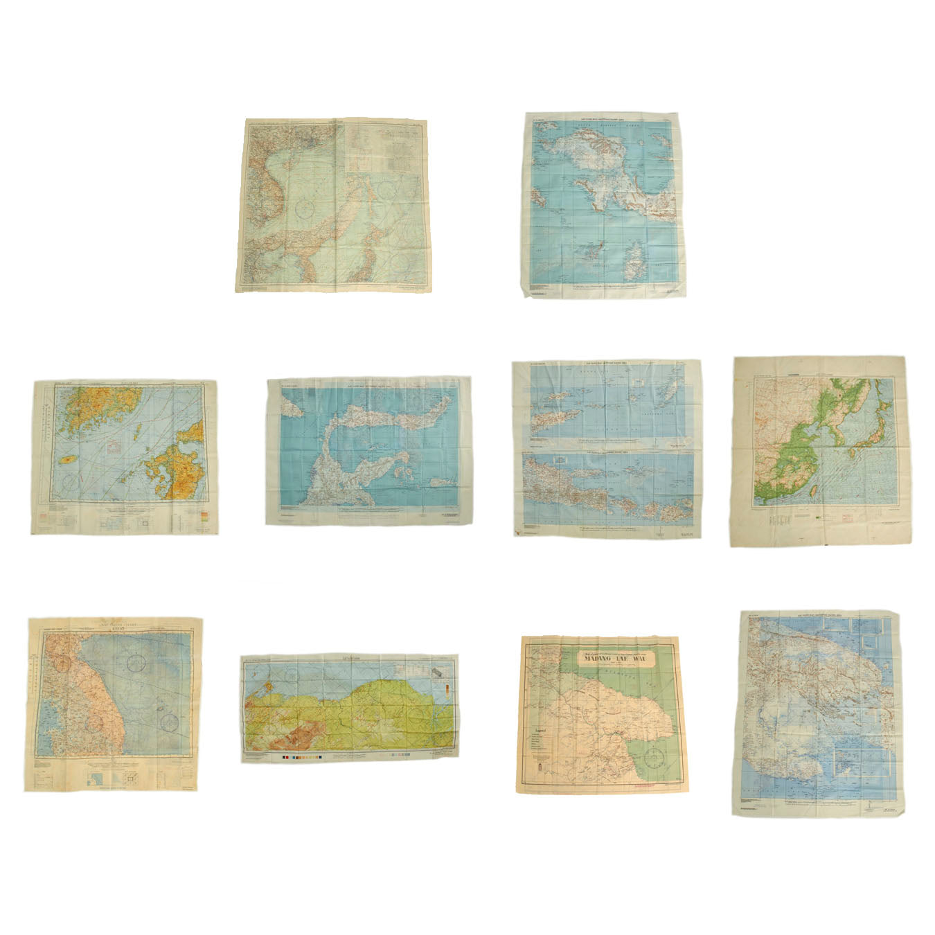 Original Items: Only One Lot of 10 Available. Evasion charts or escape maps are maps made for service members, and intended to be used when caught behind enemy lines to assist in performing escape and evasion. Such documents were secreted to prisoners of war by various means to aid in escape attempts.