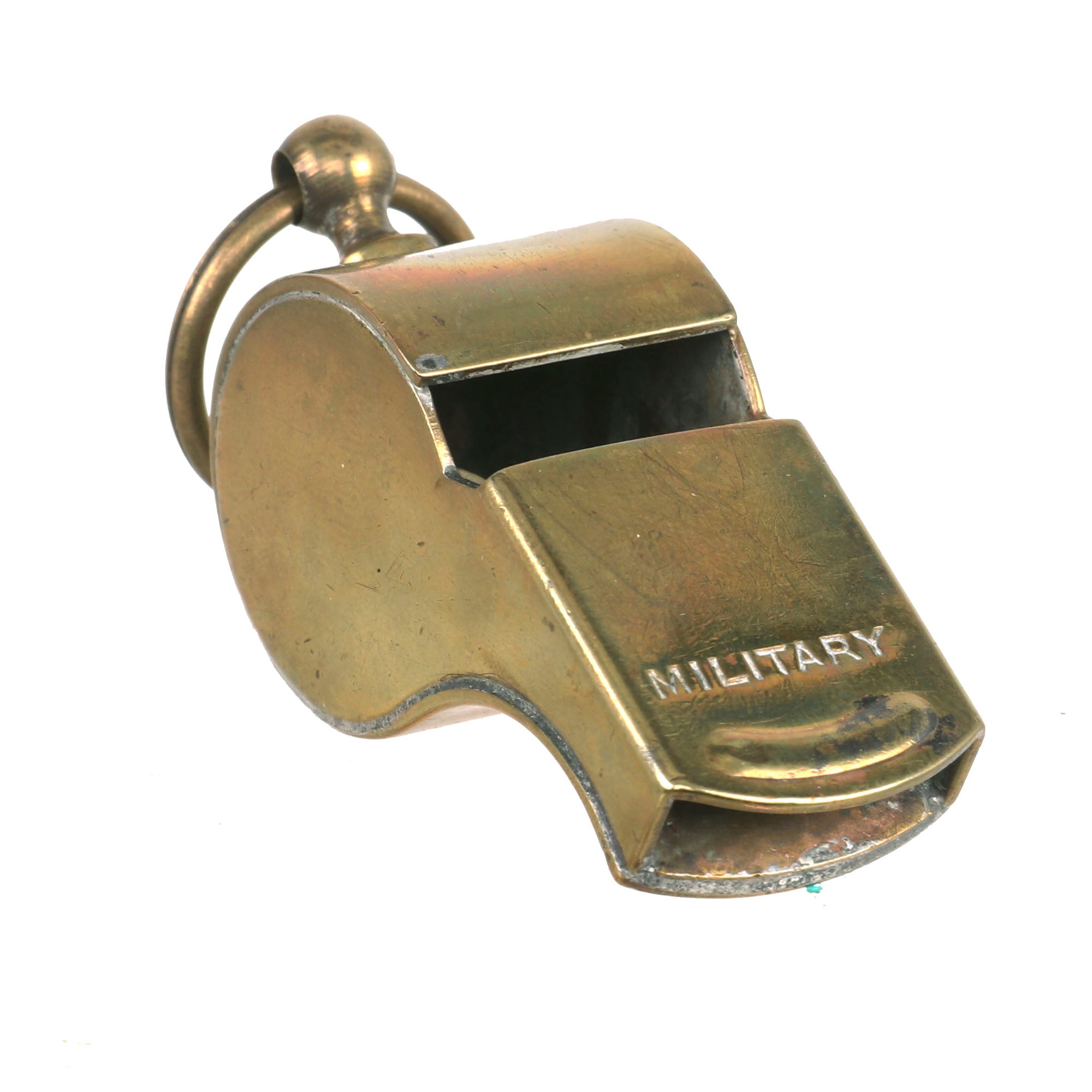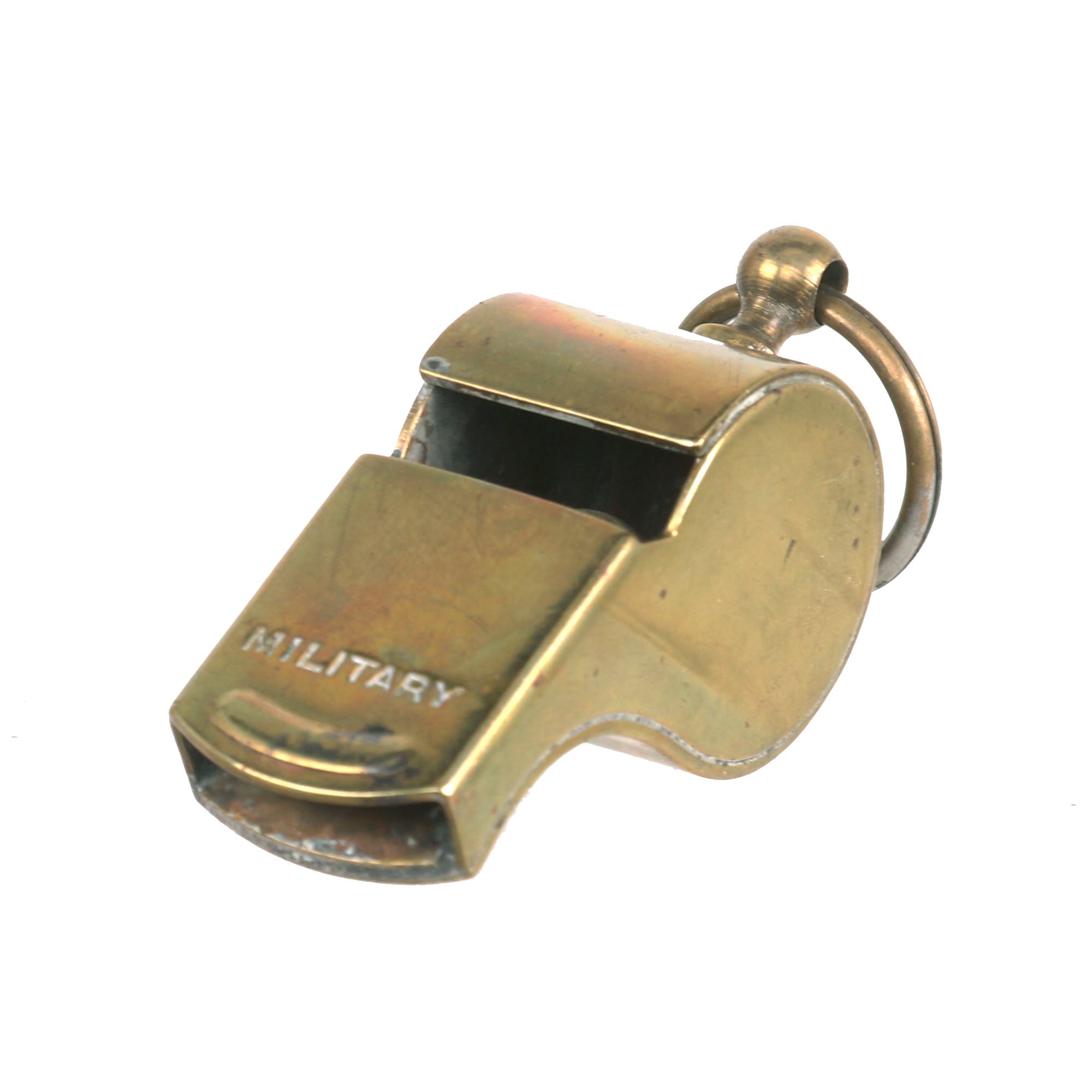 -Brass Military Whistle, no rope. Marked MADE IN USA.