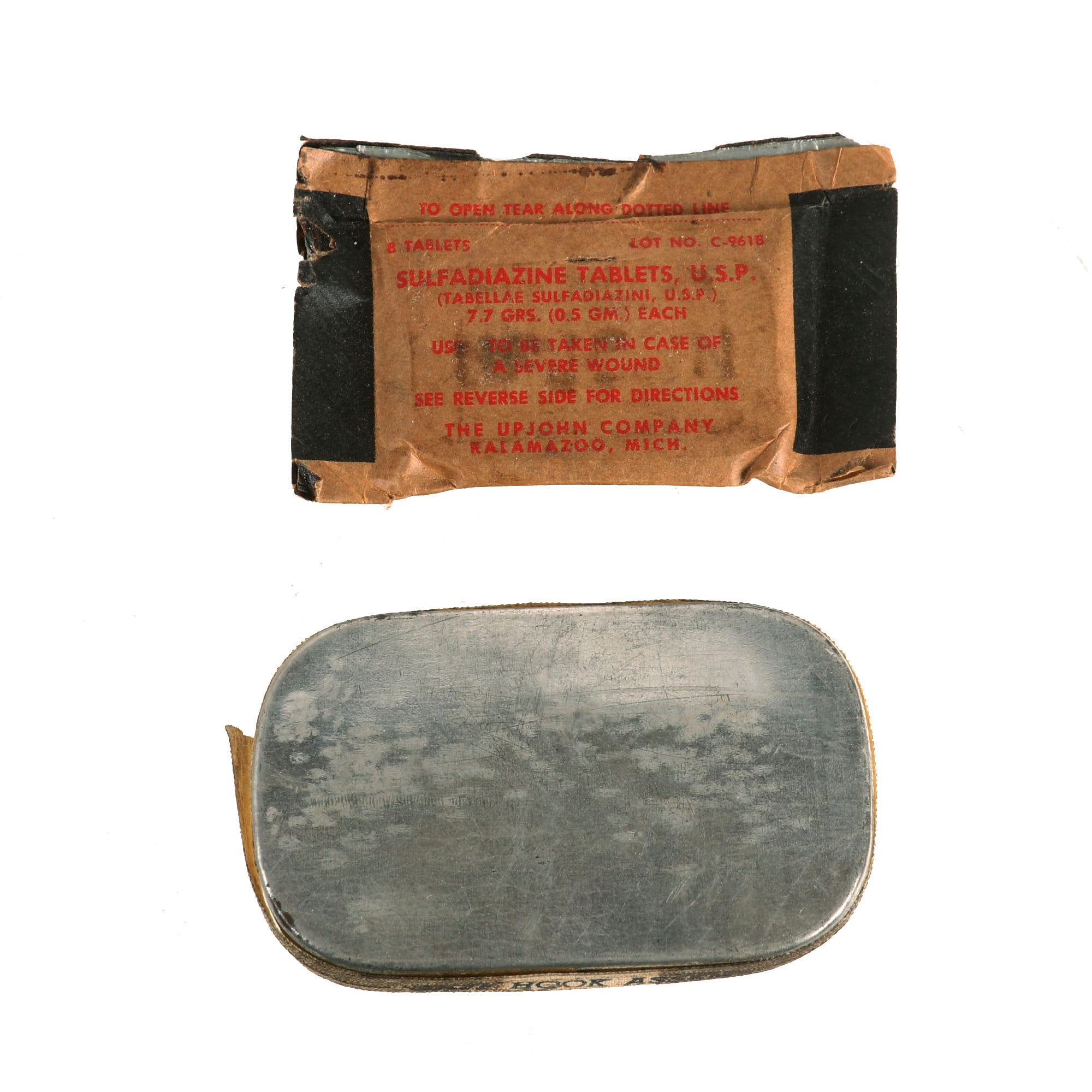 -Sulfadiazine Tablets, U.S.P. in original packaging, manufactured by the Upjohn Company, Kalamazoo, Michigan. Very rare piece to find sealed! Measures roughly 3x2”.
