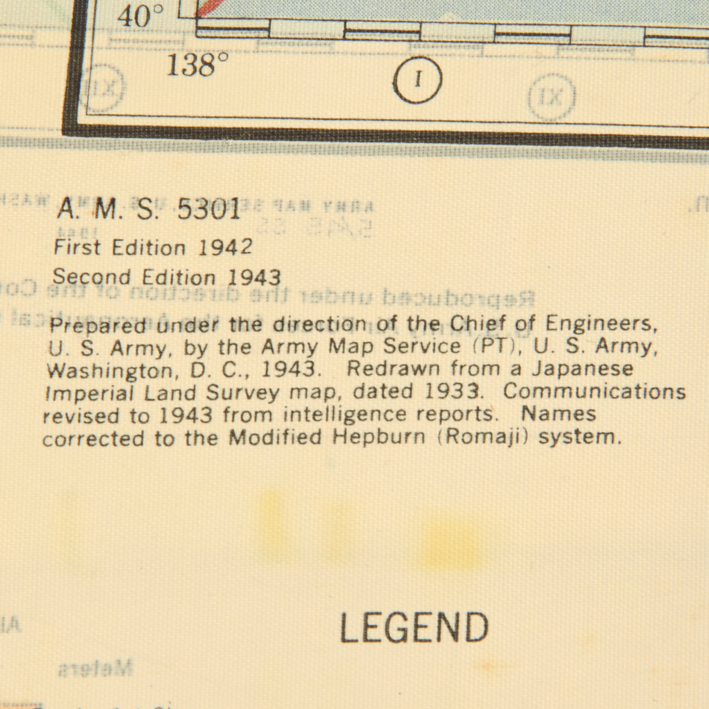 - Eastern Asia Nemuro/Hakodate: The map measures 24 ½” x 23” and is dated 1944. The scale is 1:1,000,000 and the map is slightly used, minor stains and the edges are starting to fray, but is still serviceable.