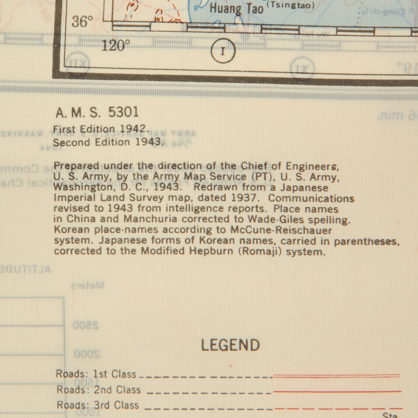 - Eastern Asia Peking/Ryojun: The map measures 24 ½” x 24 ½” and is dated 1944. The scale is 1:1,000,000 and the map is in unused condition.
