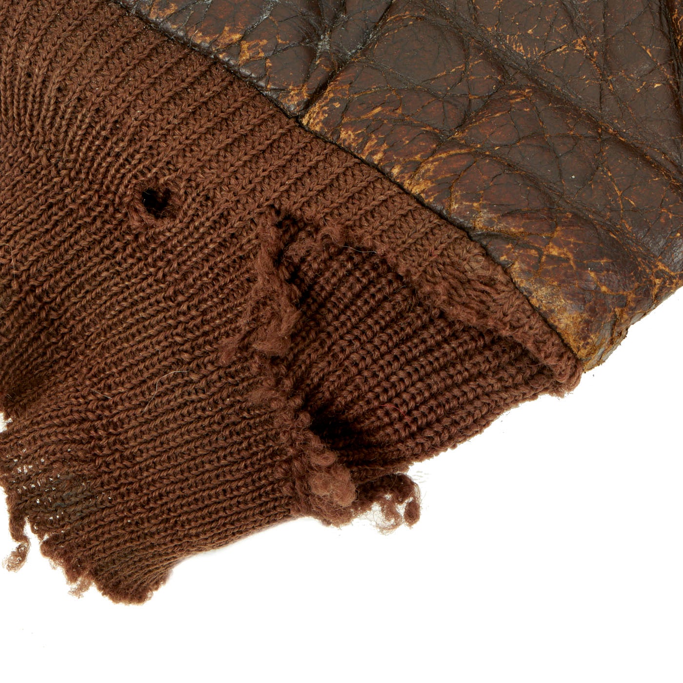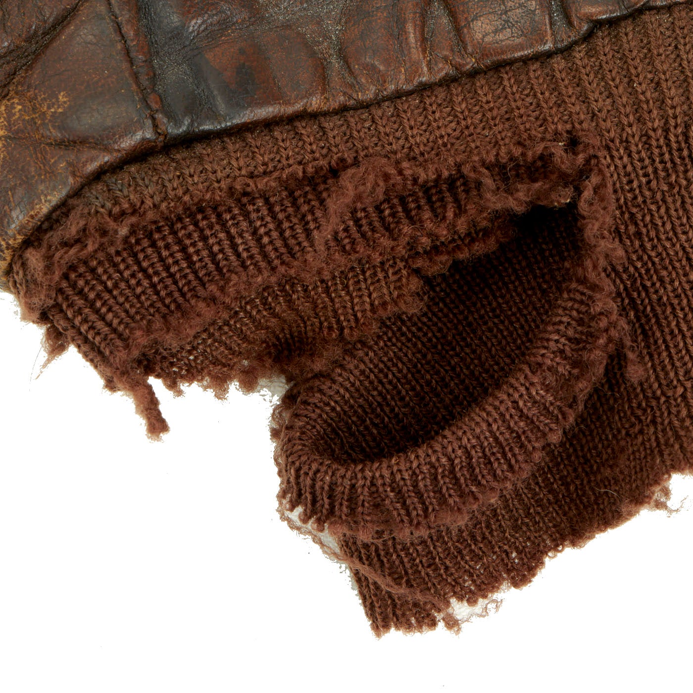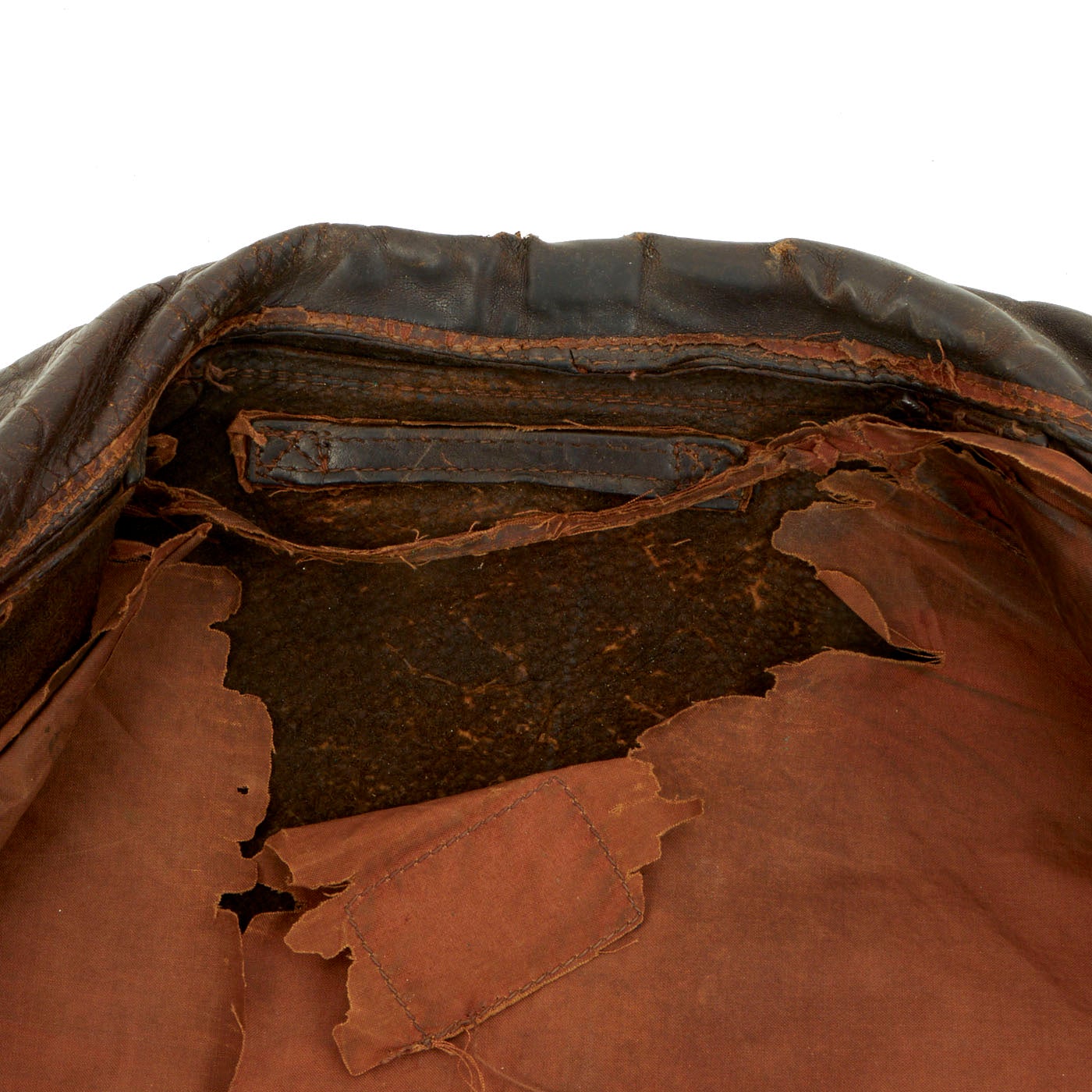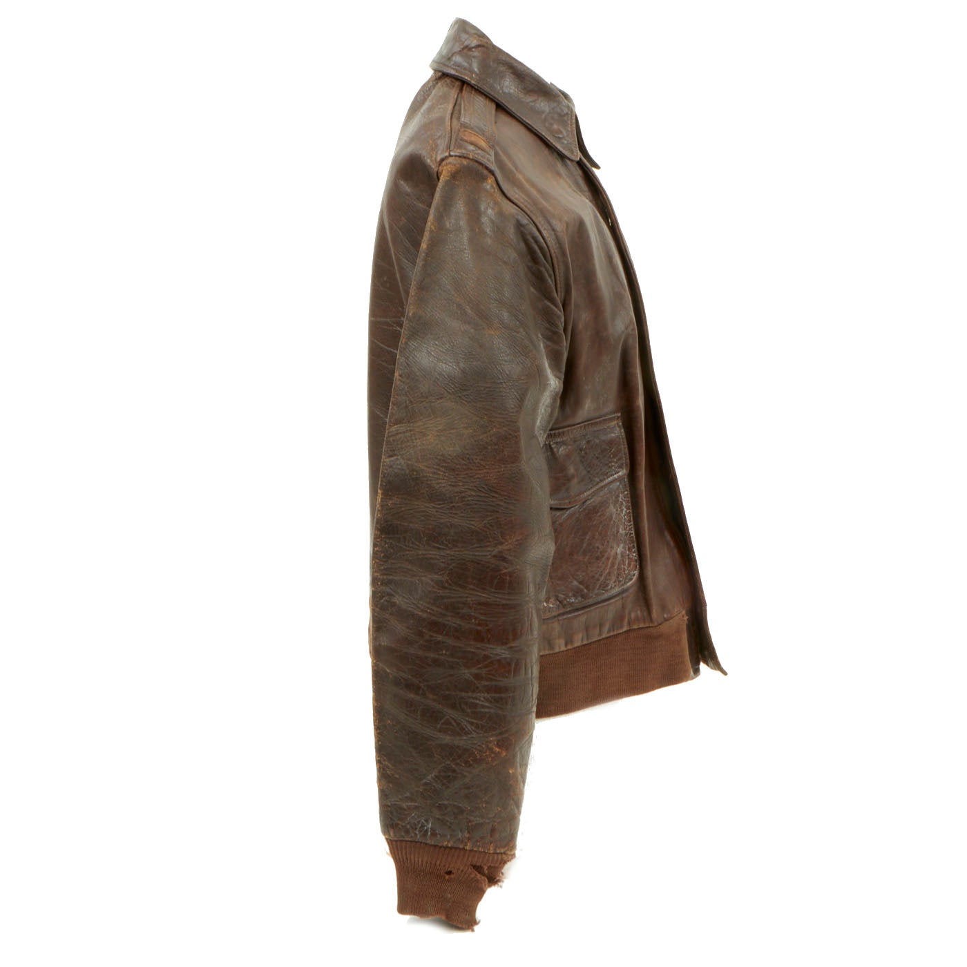 • Original Item: One-of-a-kind. This is a nice but well worn A2 leather flight jacket issued to a Lieutenant who flew during WW2. It is fair condition. There is wear evident in the leather with fraying and holes in the cotton waistband and cuffs, but overall it is solid.