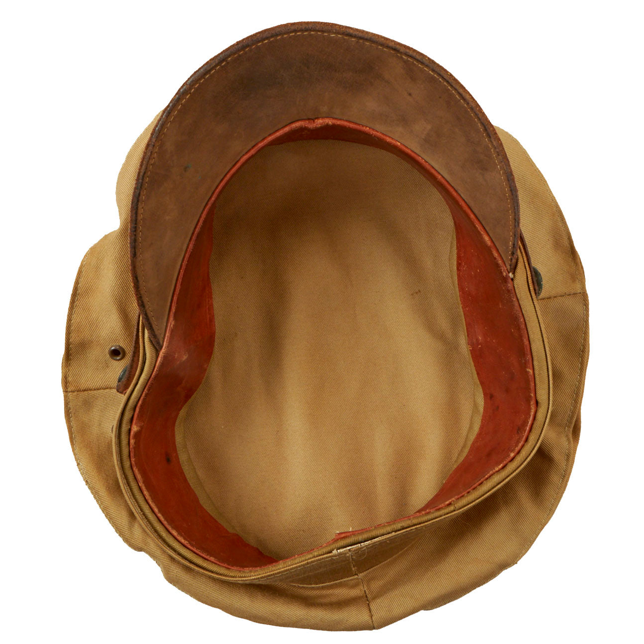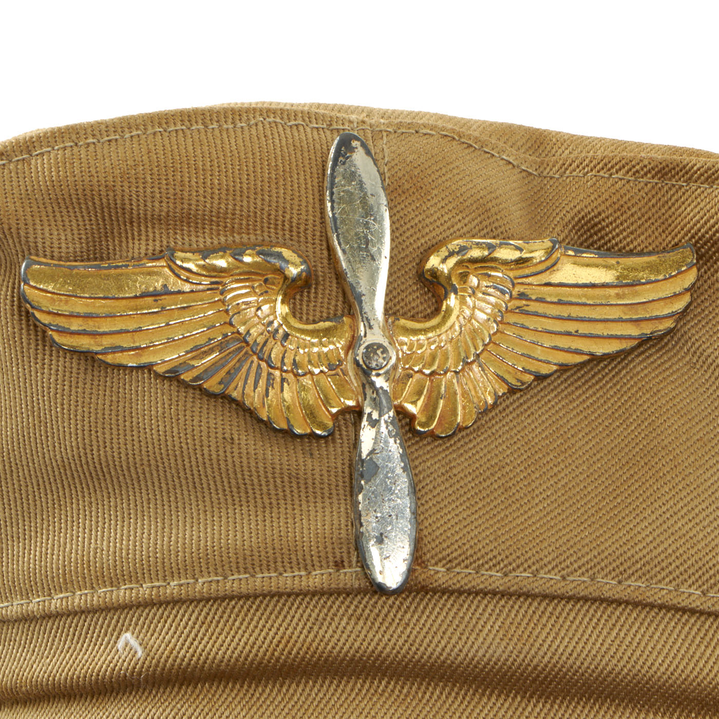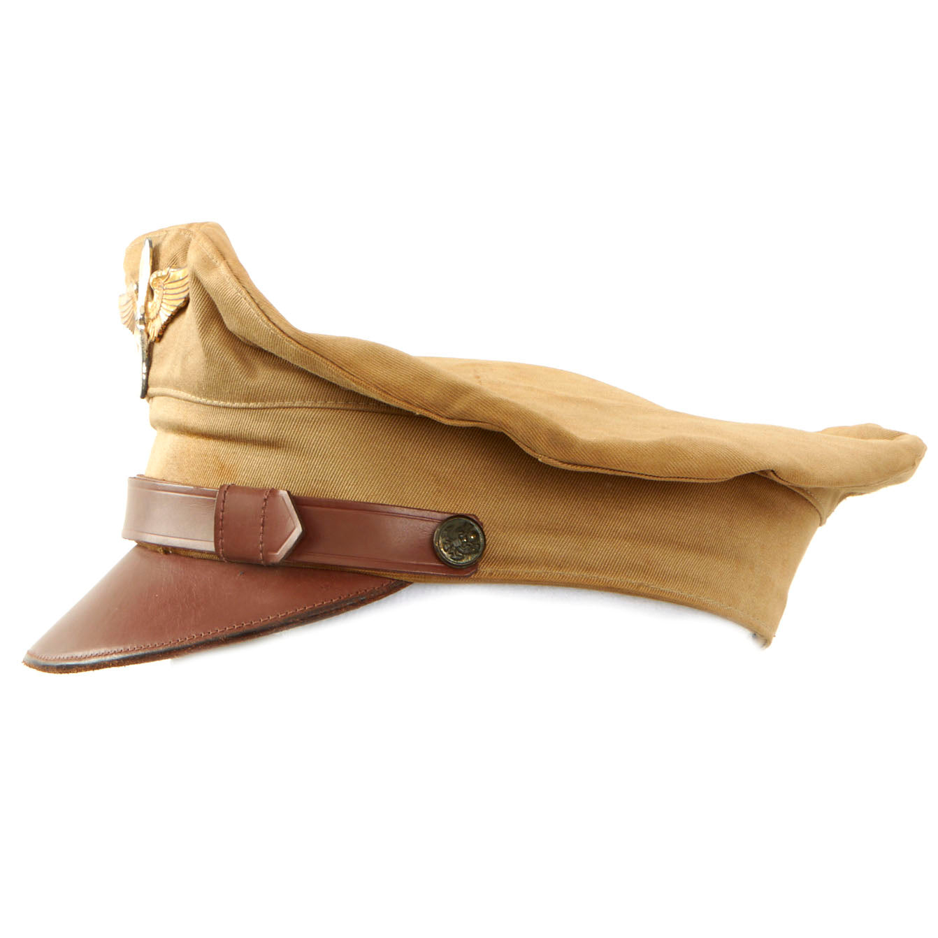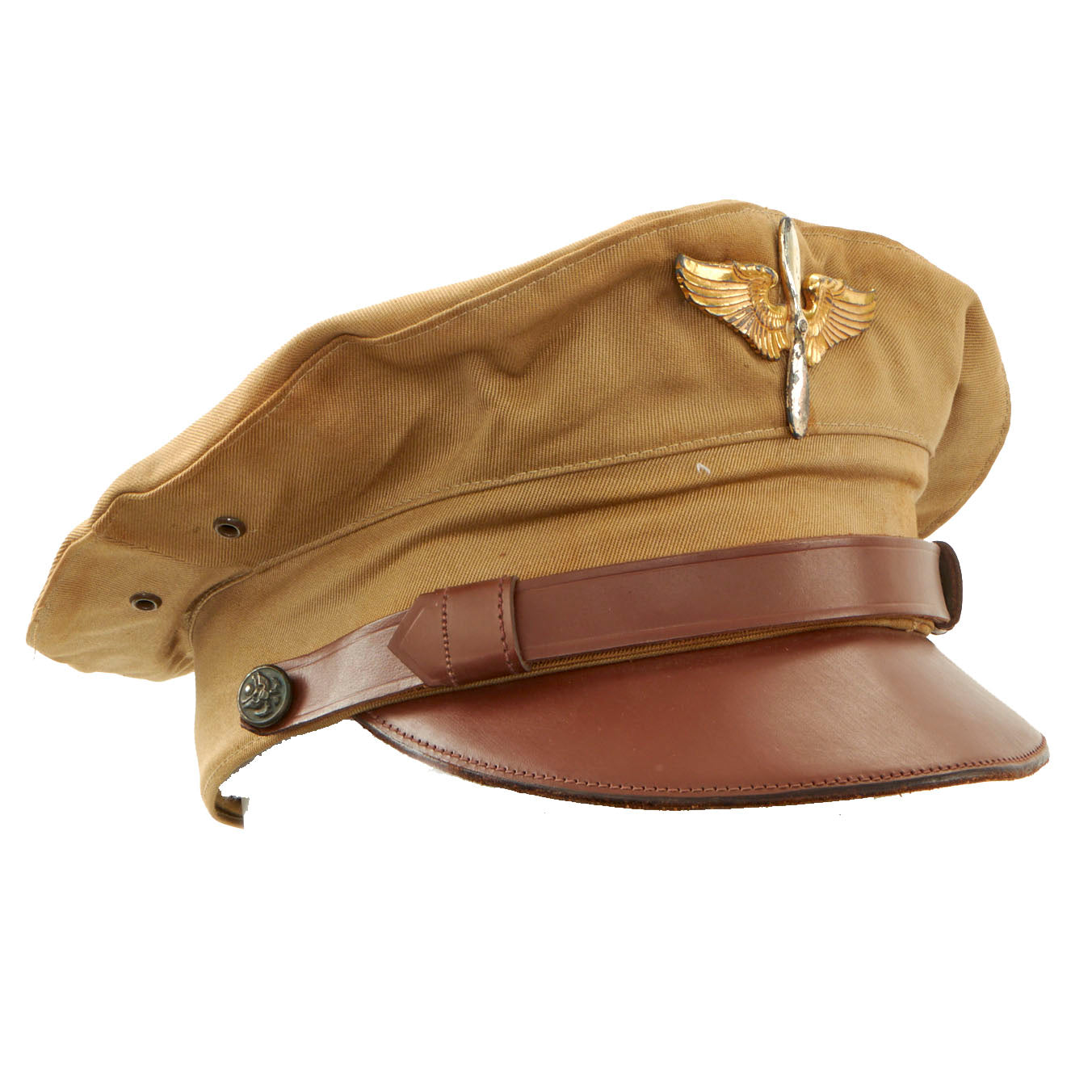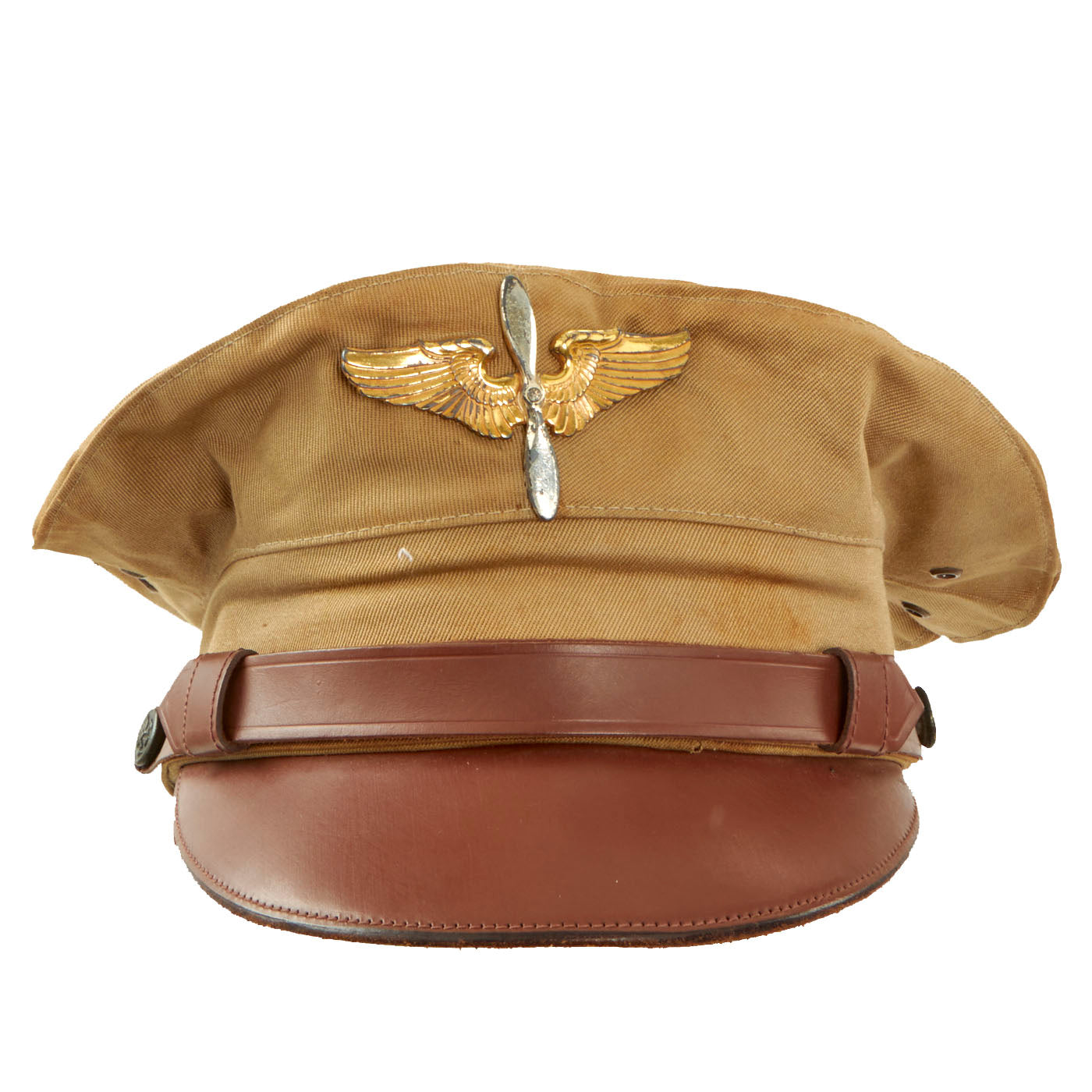 Original Item: Only One Available. This is a very beautiful, slightly worn USAAF Pilot Cadets crusher cap. The cap is a nice size 7 with a very attractive brass and silver winged prop cap badge on the front. We have not removed the badge from the cap and cannot tell if there is any manufacturing stamping on the back.