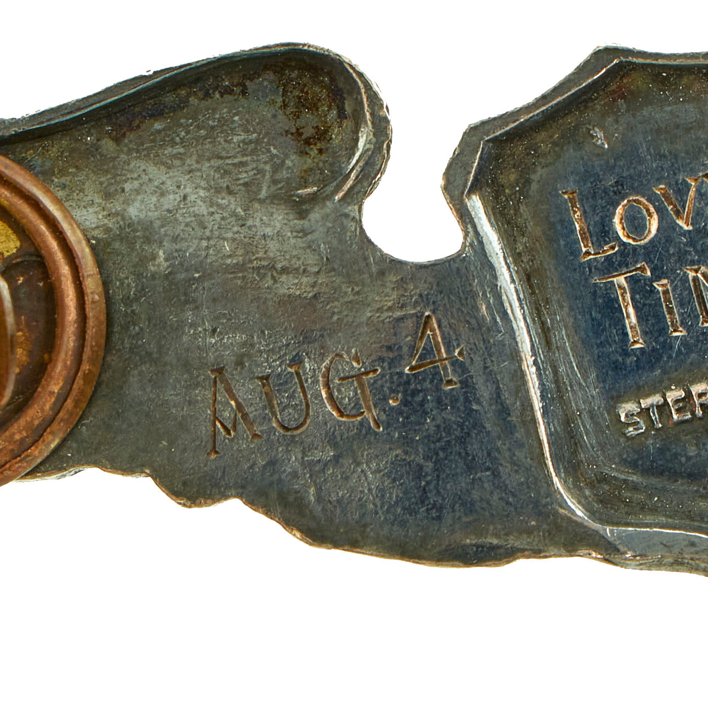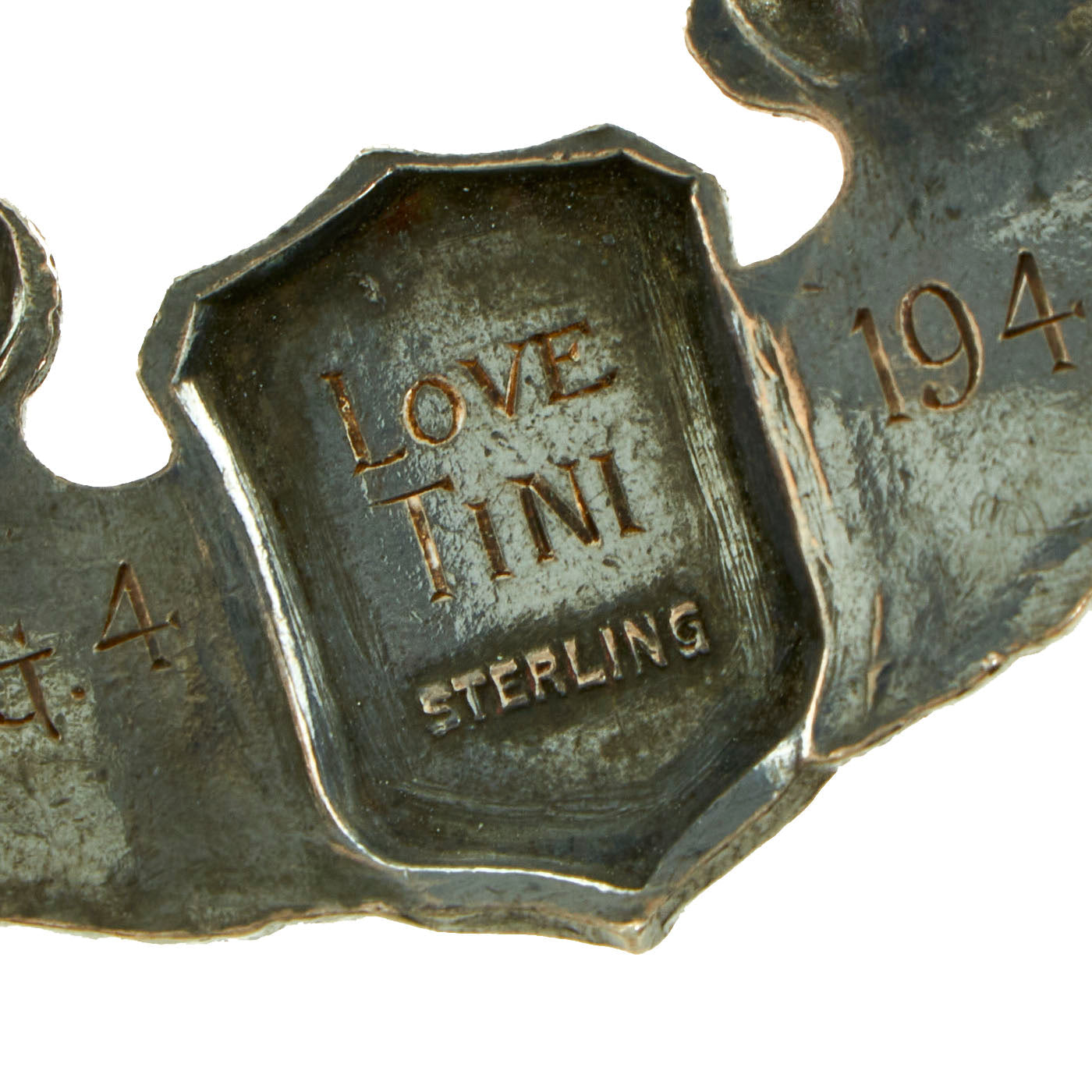- Original U.S. WWII Army Air Forces USAAF Service Pilot Wings Engraved marked Sterling and Engraved Love Tini Aug 4th 1944. Measures 3" Wide. Pin Back.