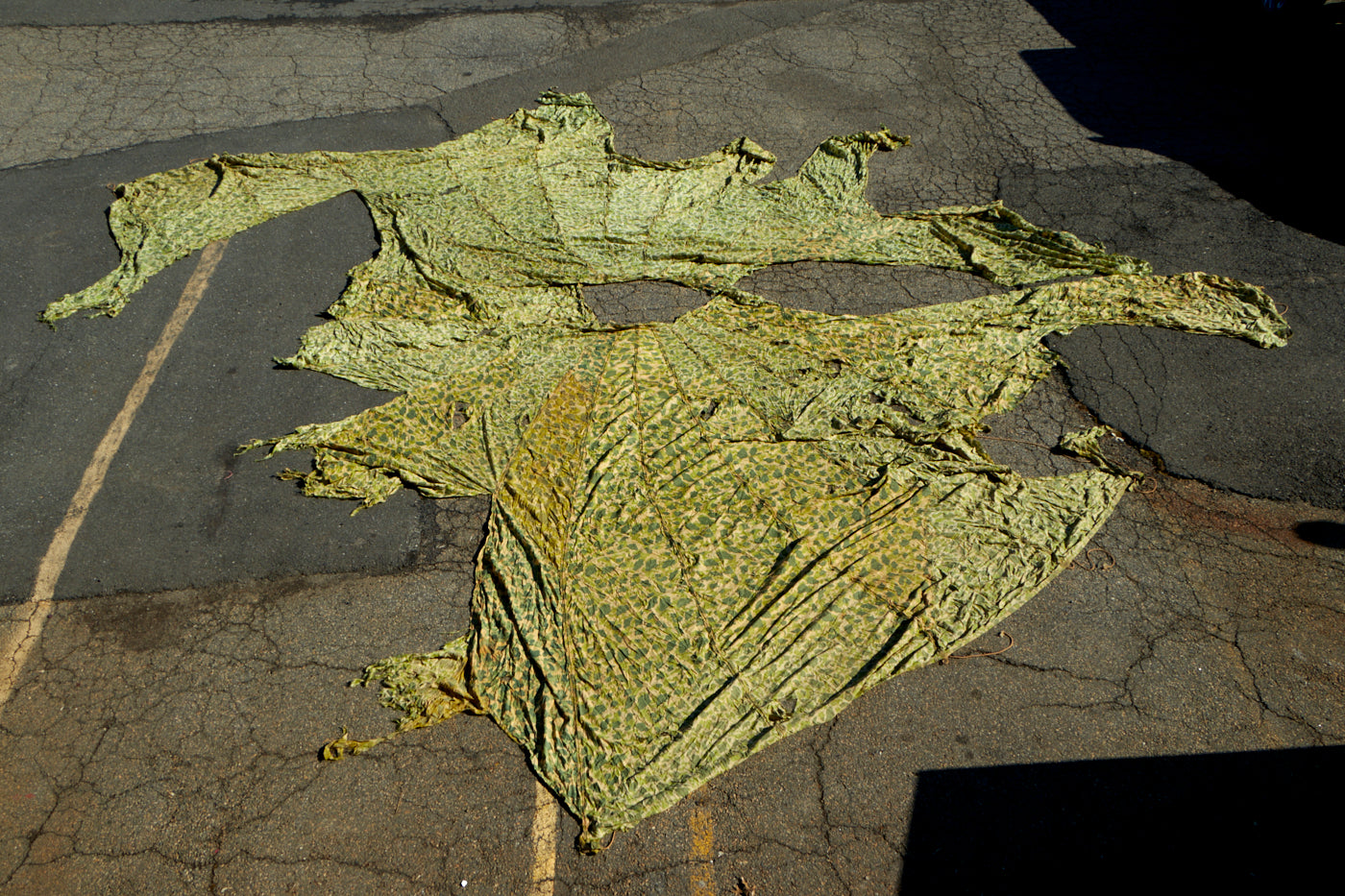 The condition of the parachute is exactly what you would expect after being used as a means for concealment during combat and being buried for more than 50 years. There is staining throughout the fabric and multiple tears, rips, holes and loose stitching. There’s no doubt that this was an item that was definitely used for more than it was intended for.