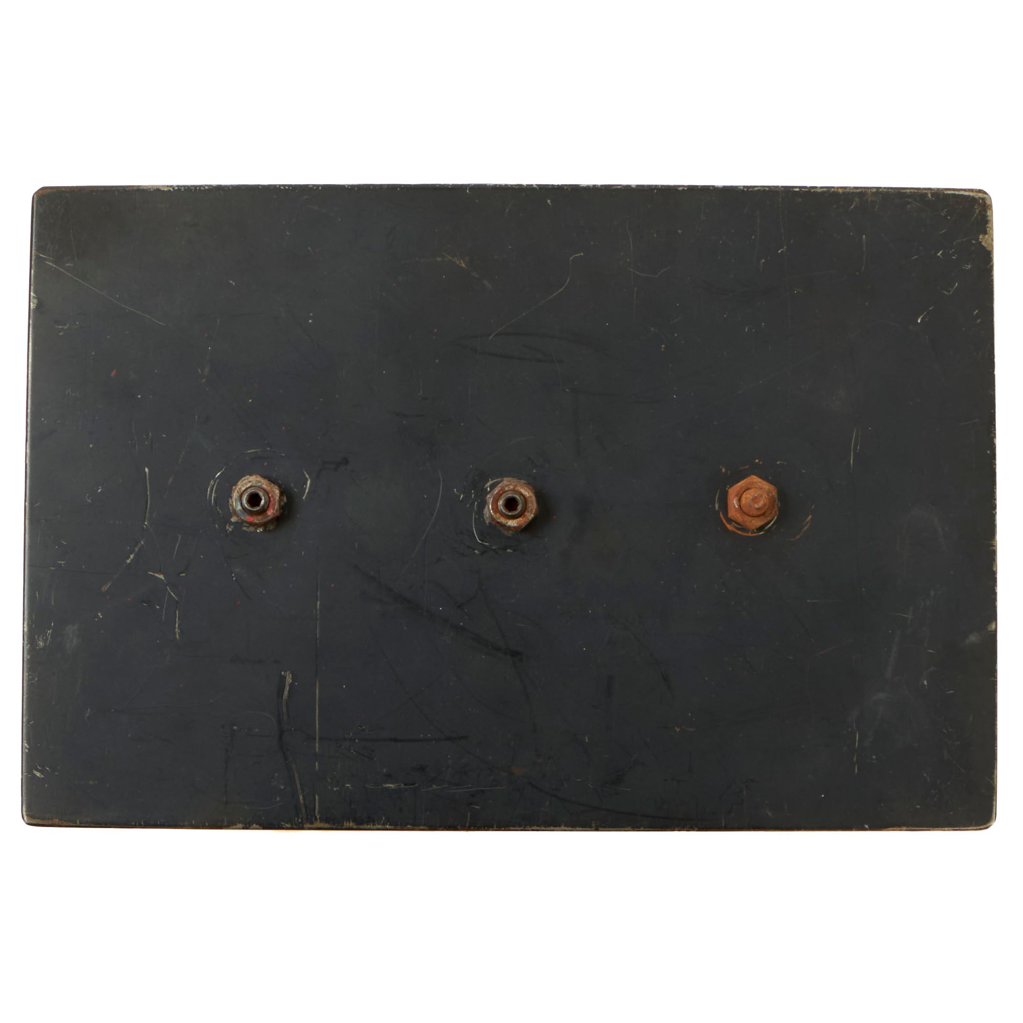 The 2-star plate measures 4" x 8 ⅝" with the rod protruding 4 ½” out. The 3-star plate measures 9" x 6”. They are both in fair condition with the 3-star example having some paint loss and a small black mark on the 2-star.