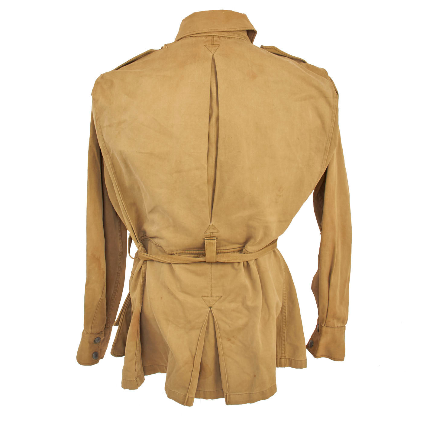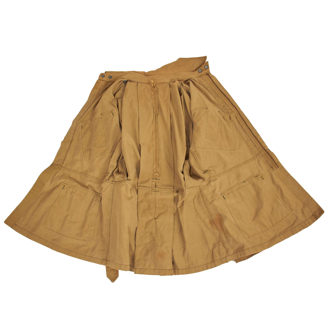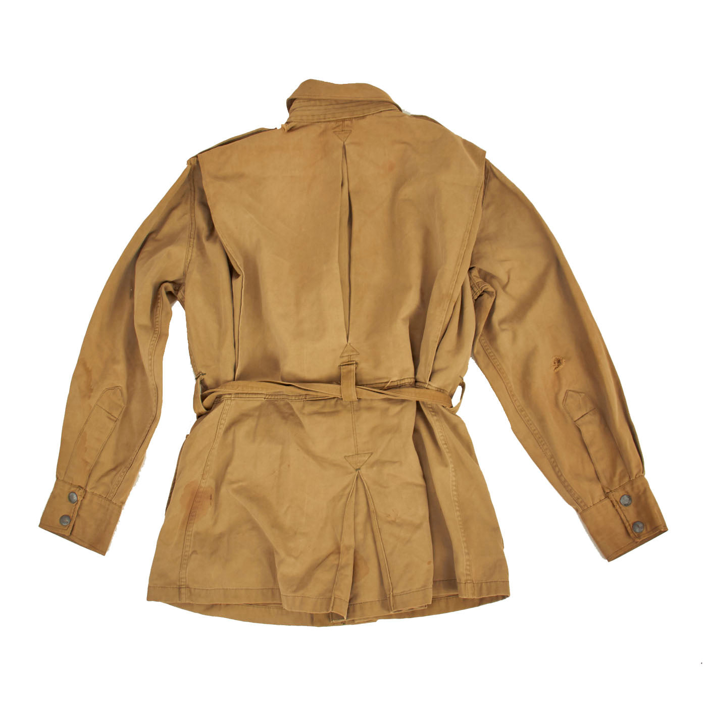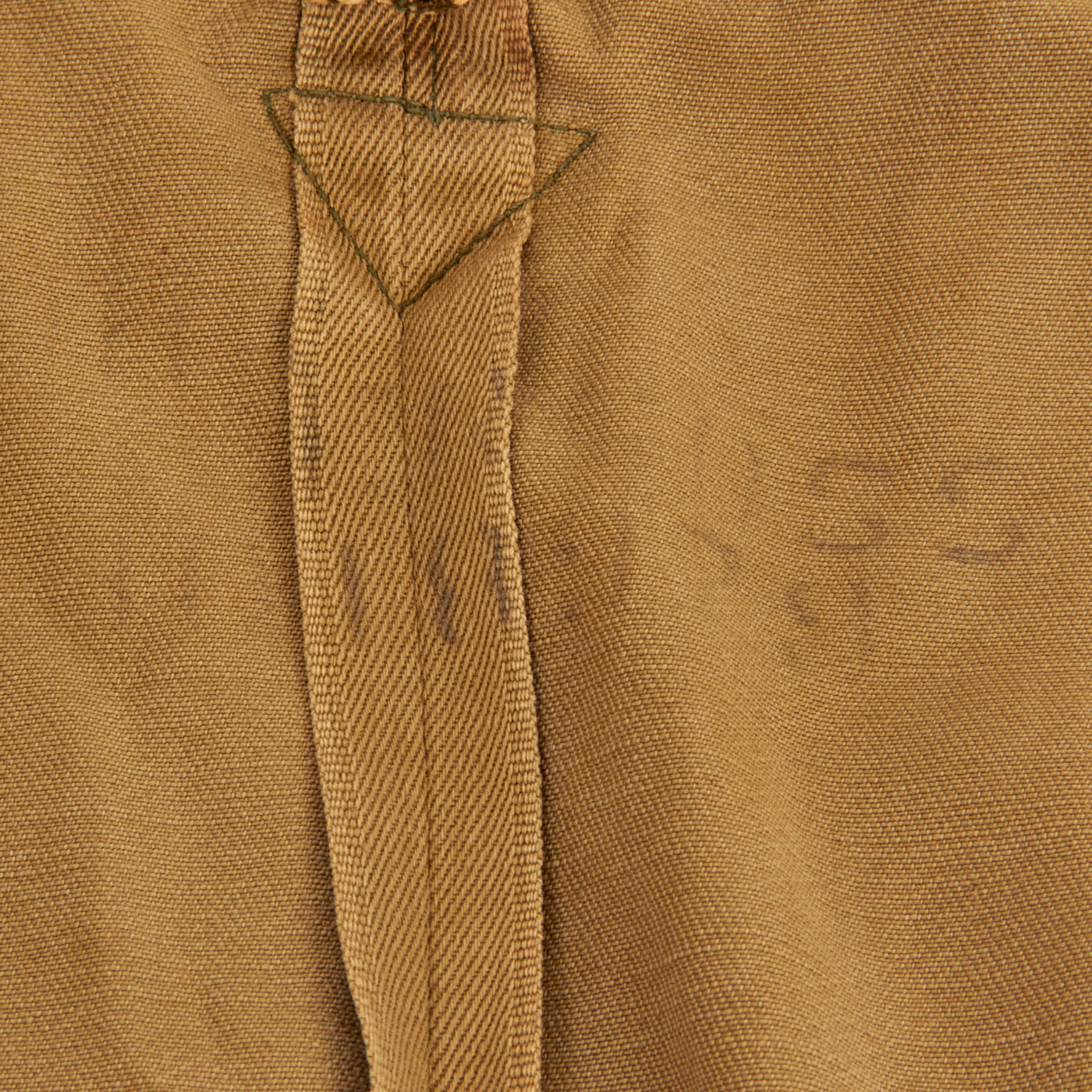 Due to the somewhat fragile nature of the uniform, the M1942 pattern was often reinforced with thicker, tougher canvas on the elbows, crotch and knees. However, this example was never reinforced, indicating early issue. The M42 was worn by Paratroops assigned to Airborne units. The M42 was eventually phased out in favor of the M1943 Uniform which was a darker green, OD #7. Despite this, various individuals chose to keep their M42s in order to show their veteran status.