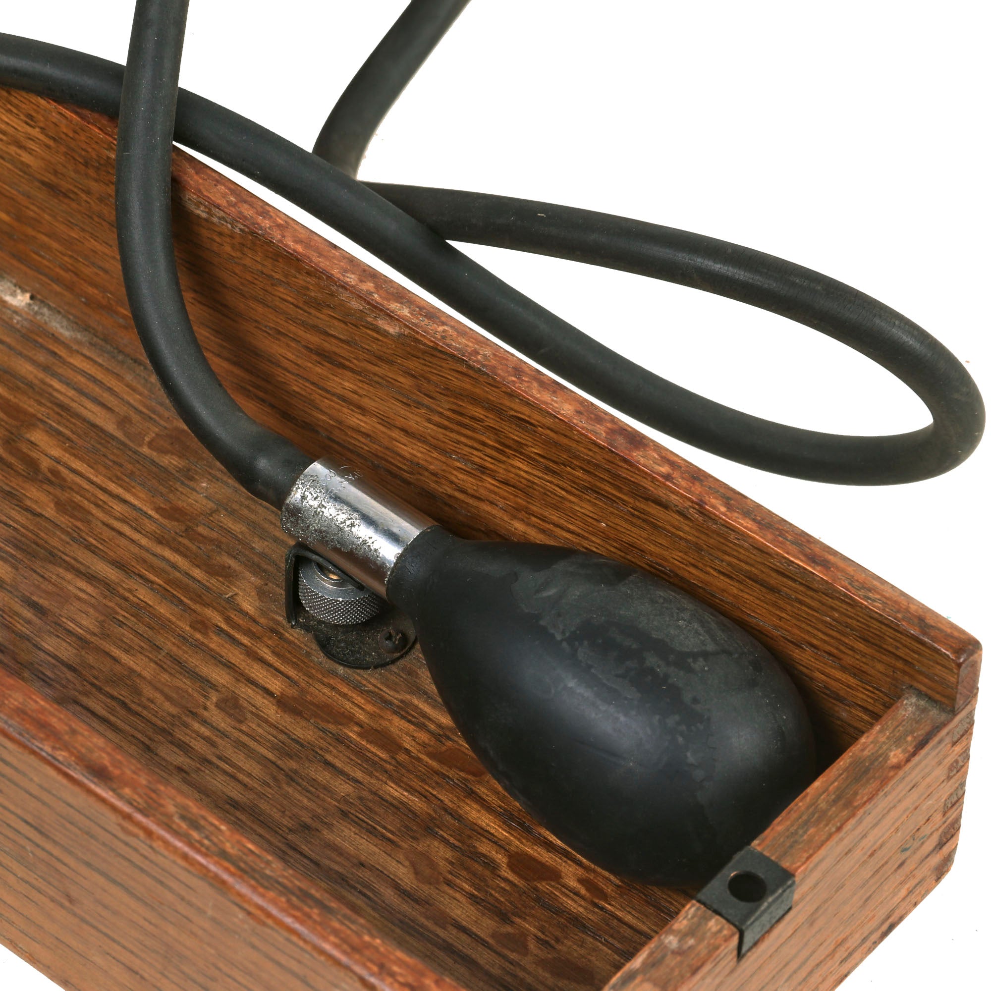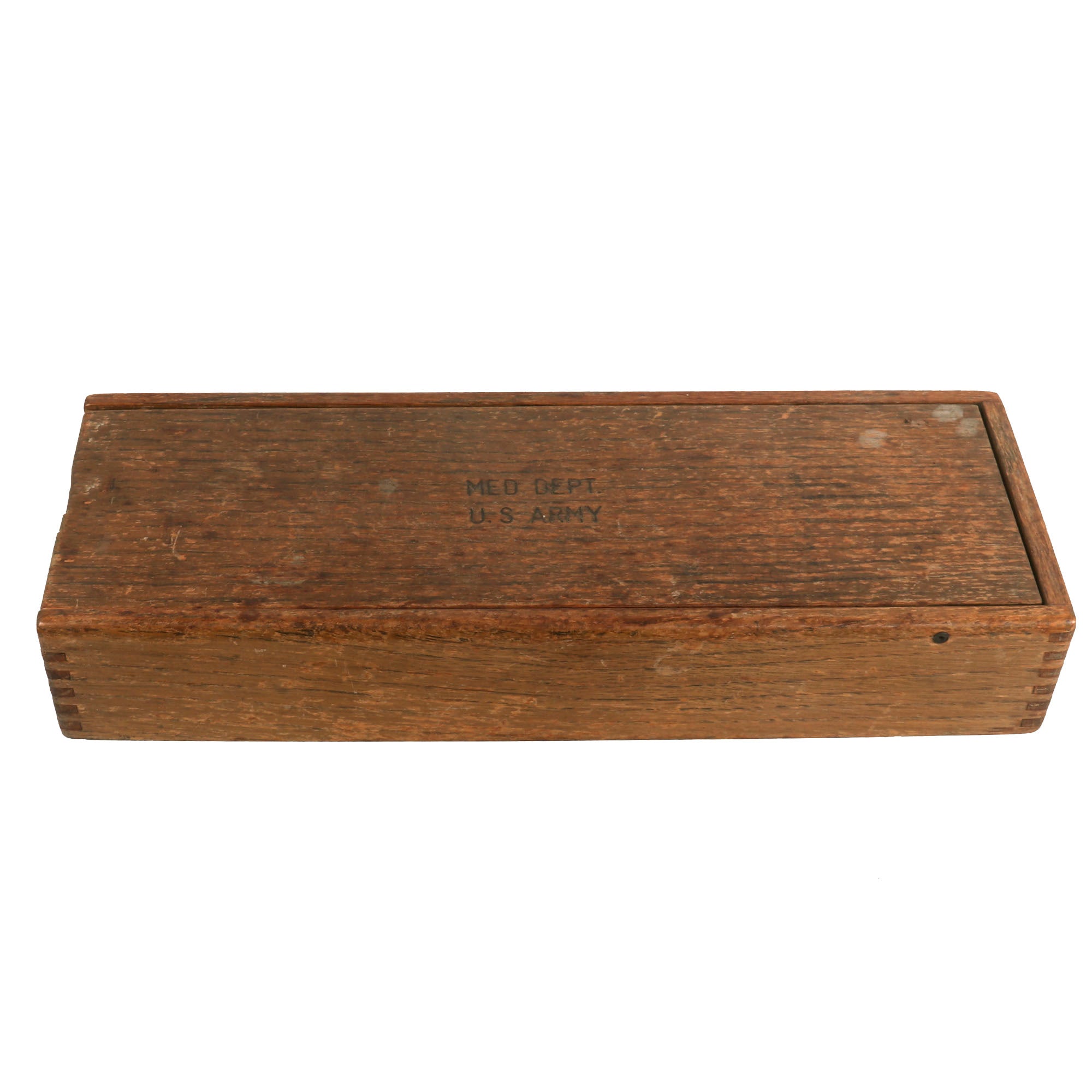 The top of the box reads MED. DEPT. U.S. ARMY. The contents of the box are all present, and the rubber of the set is miraculously in great condition. We are unsure if it will still function, but it looks amazing as a display piece to go with any WWII Medic’s collection. The box when closed measures 12¼ x 4¼ x 2¼”. Comes ready for further research and display!
