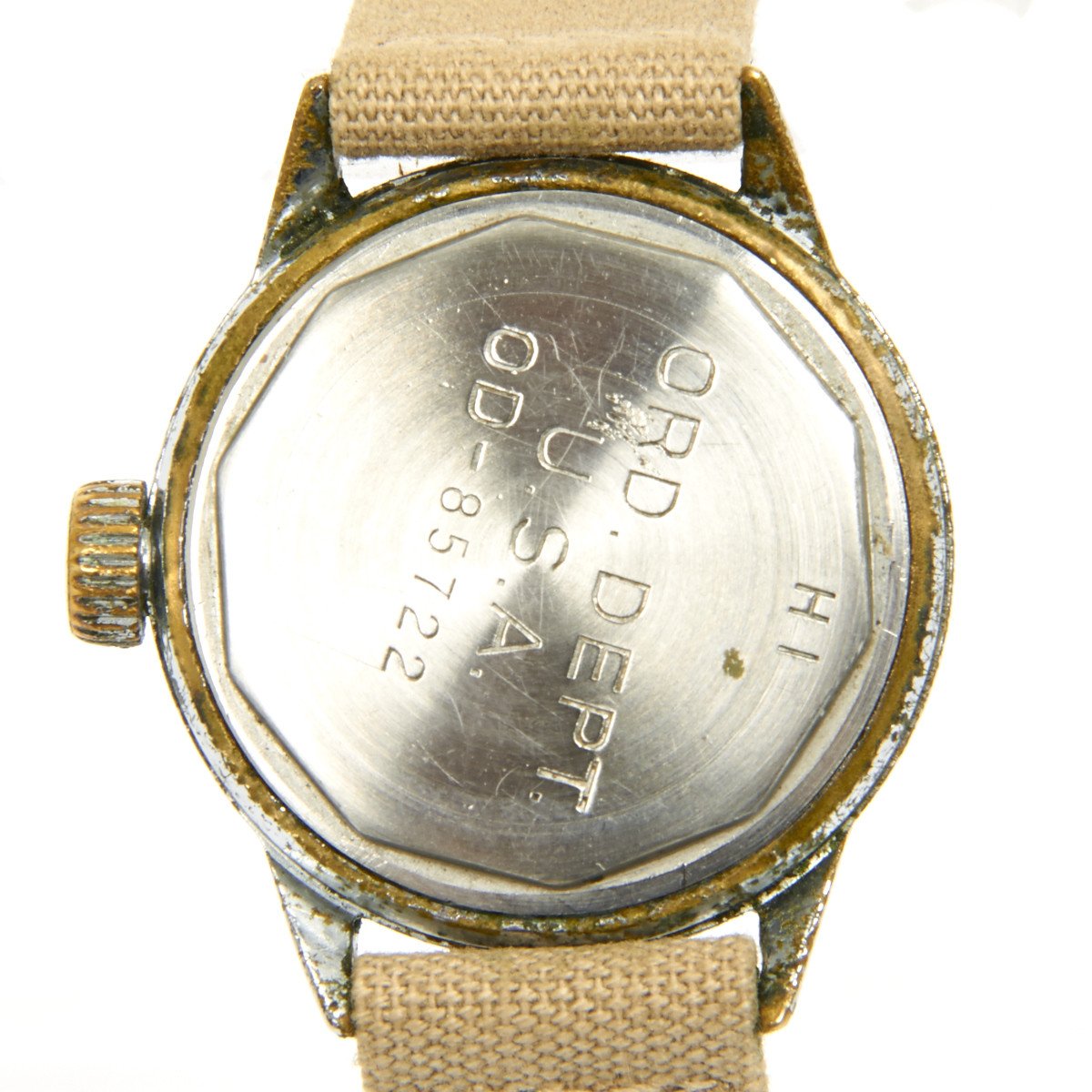 Original Item: Only One Available. This is a very early war (1942) OD officer issue screw back Hamilton 987A wrist watch. This wonderful example has been fully cleaned, tested and runs perfectly. it was manufactured in 1942 for the US Army. It has a white face with radium luminous hands for night use. It has the name HAMILTON on the face. The band is a correct high quality tan web reproduction.