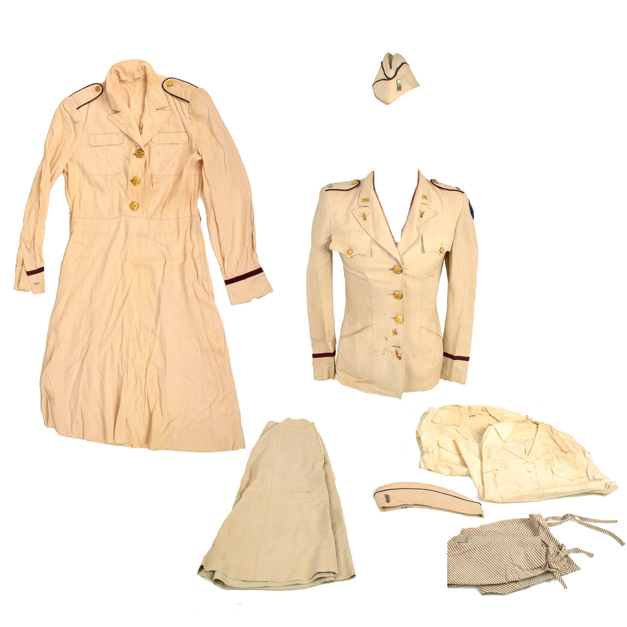 Original Grouping. One-of-a-Kind. This is a lovely Army Nurse Corps uniform grouping named to a Lieutenant Dorothy Galblum, Hospital Dietician of US Army General Hospital 157, 804th Hospital Center. This hospital entered the European Theater of Operations in August 1944, in England.