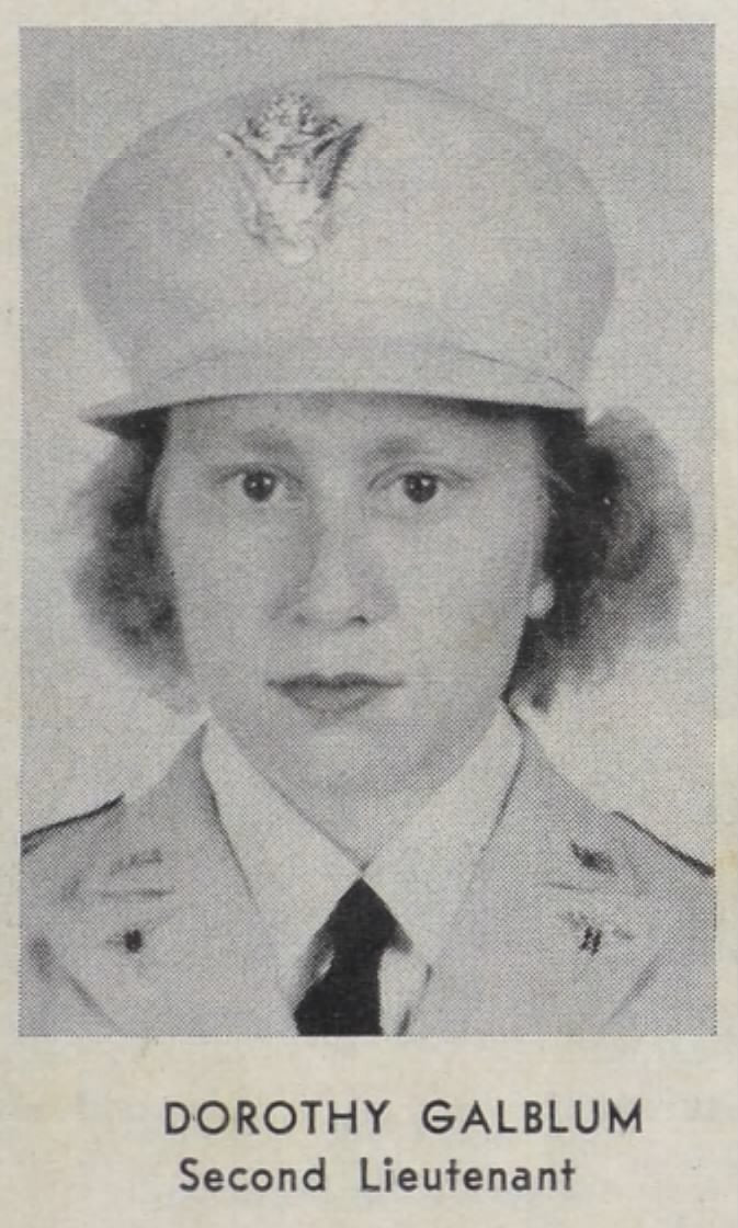 The grouping is named under the collar of one of the shirts to Dorothy Galblum. Many other pieces of the grouping have her Laundry number, G-5649, stamped on. We were lucky enough to find a photograph of Galblum in a 1943 yearbook.