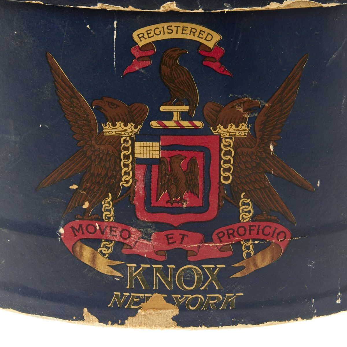 Also included is wonderful hat box marked KNOX HATS, NEW YORK with full vibrant colors offered in very good condition.