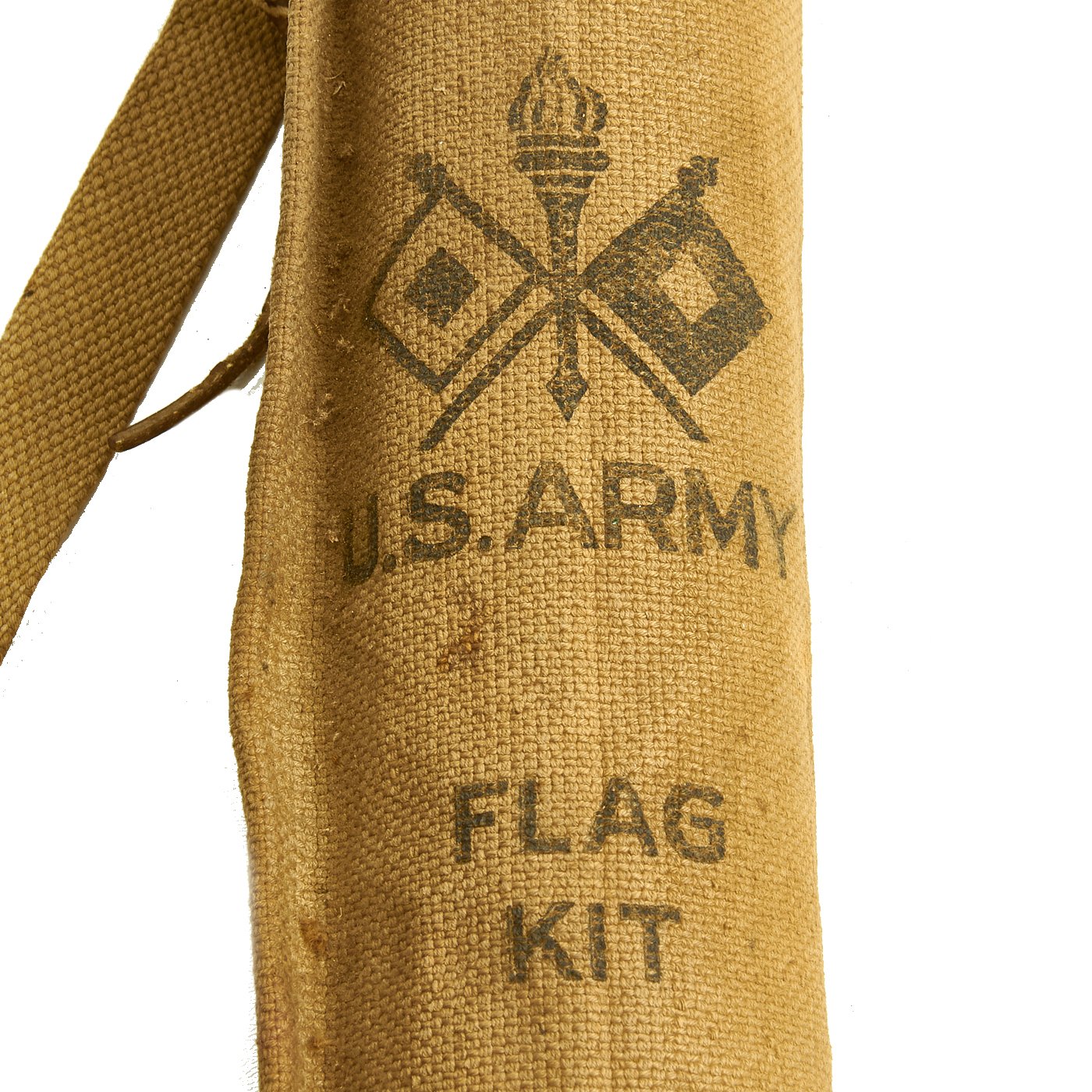 Original Item: One Set Only. This is a very nice U.S ARMY FLAG KIT, as noted on the khaki canvas case for the set. This is a standard set of signal flags, and contains flags for the two basic types of flag telegraphy used: Semaphore and "Wigwag".