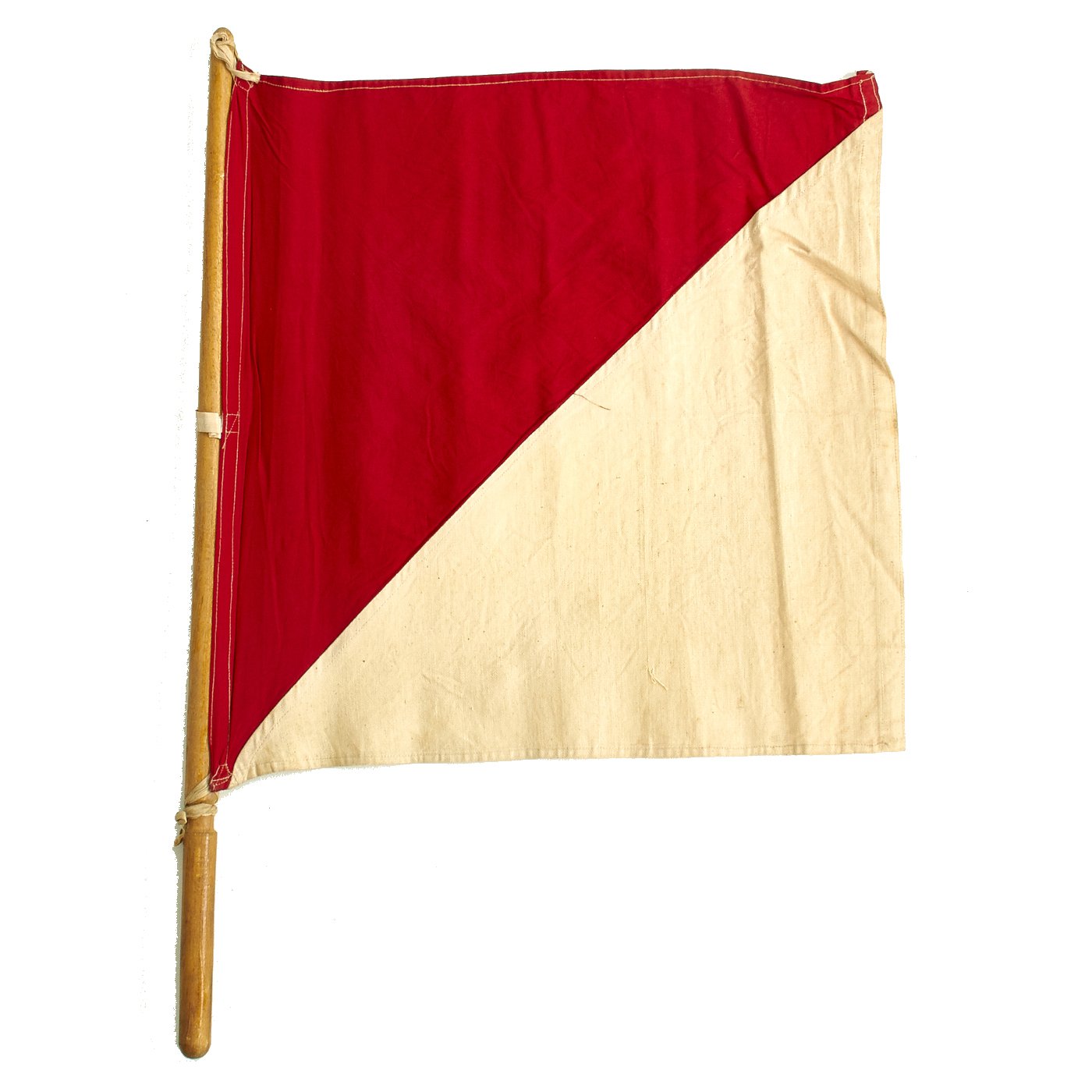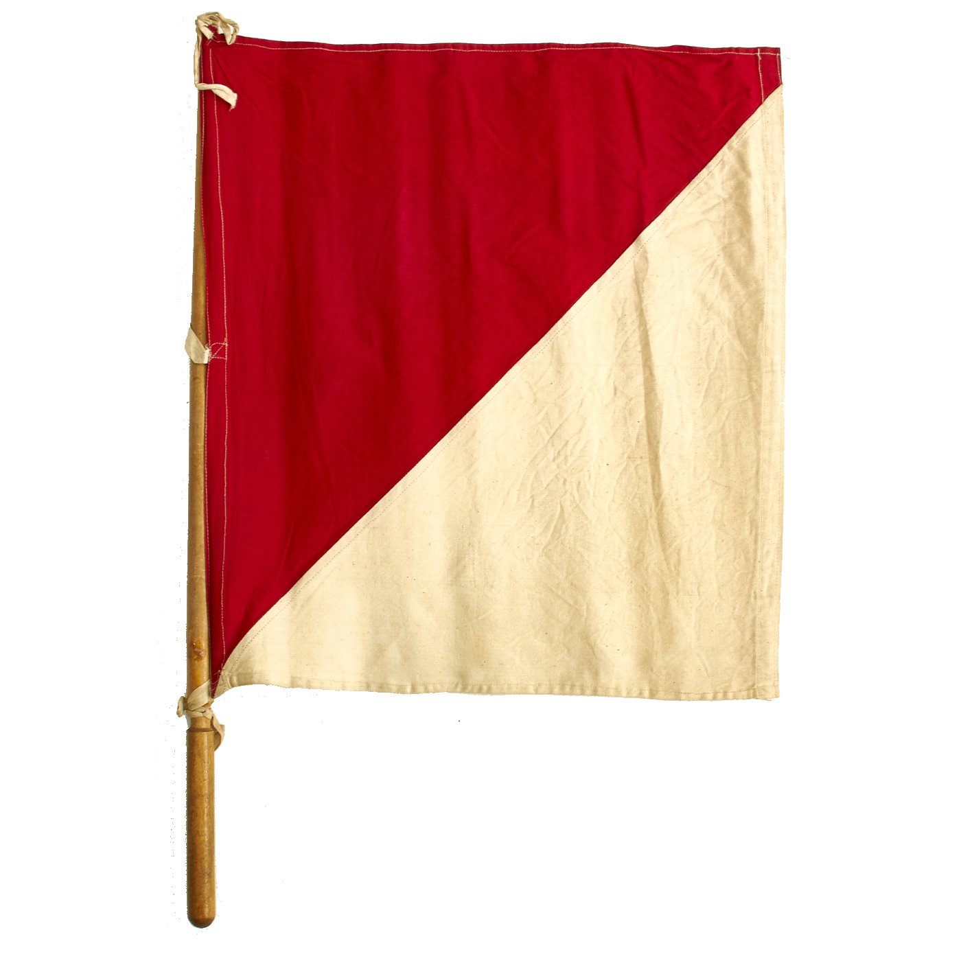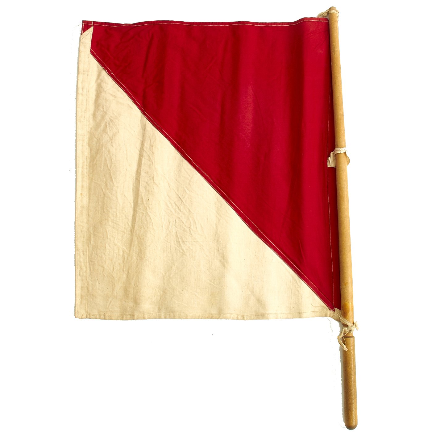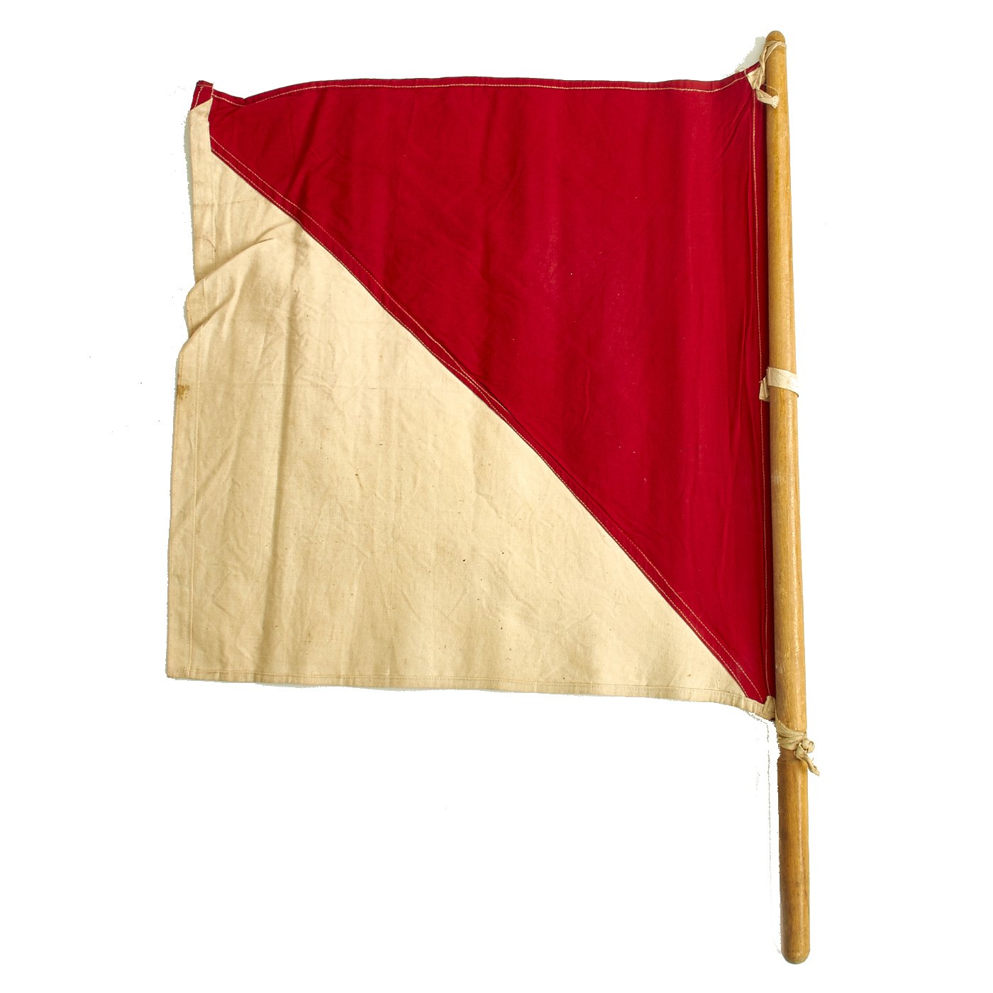 - One Pair of Red/White Semaphore flags mounted to wooden poles. Each flag measures approximately 16" x 16", and is mounted to a 24" long wooden pole