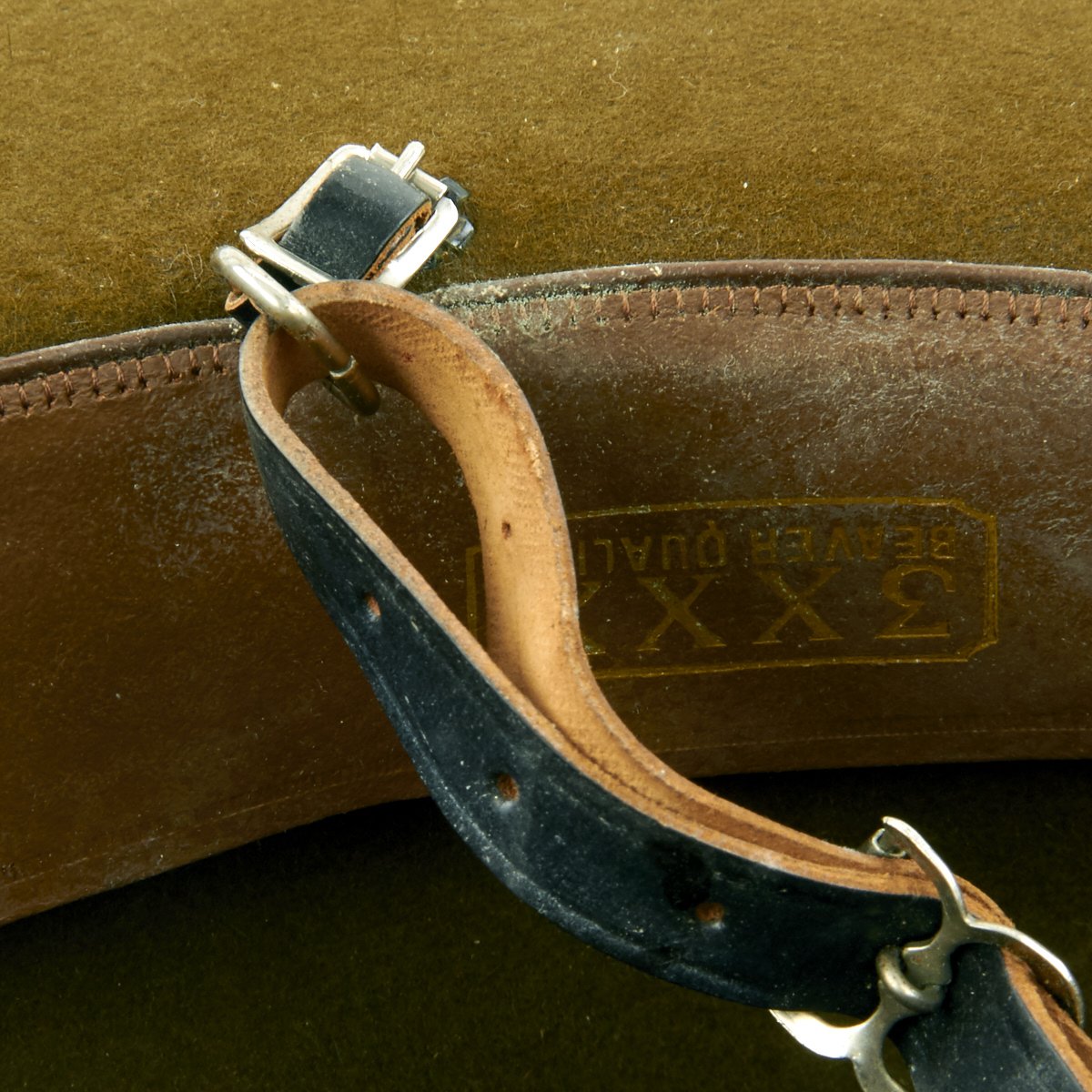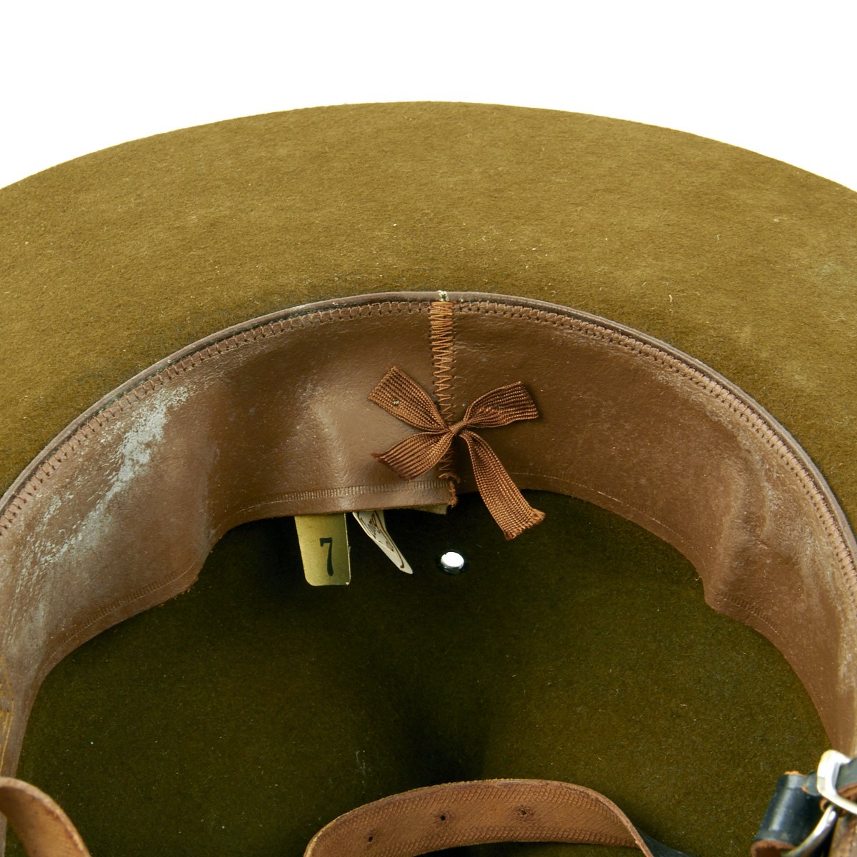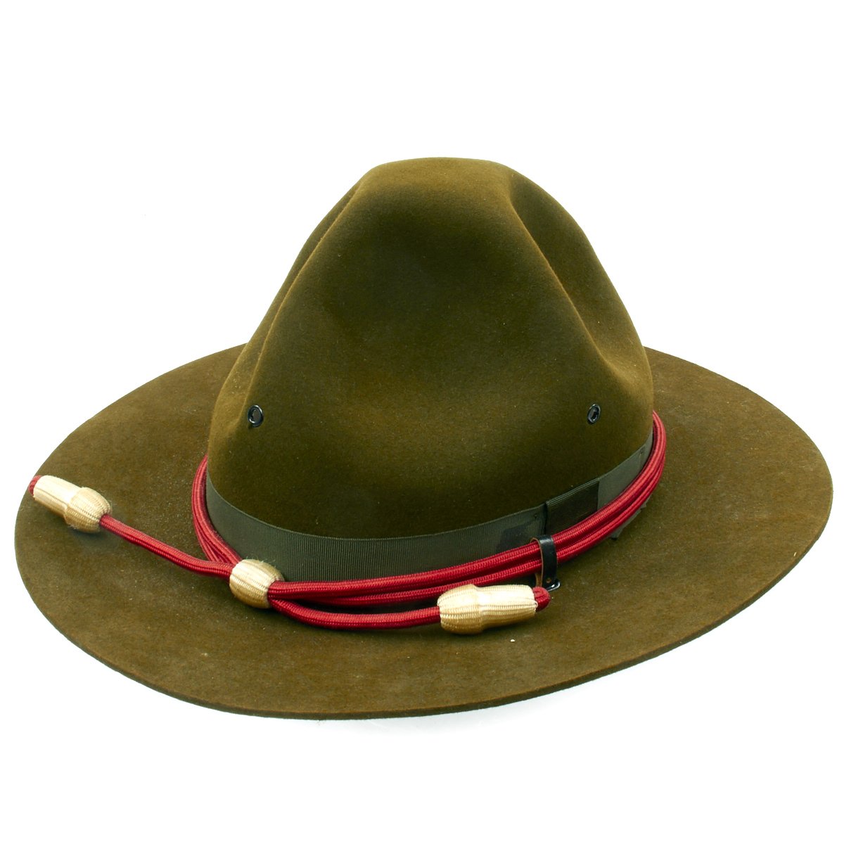 Original Item: Only One Available. This is a private purchase WW2 M1911 Officer's Campaign Hat. It is embossed in gold letting on the leather sweatband 3XXX Beaver Quality. Original paper size tag reads 7. It is offered in near mint condition with little if any signs of use with the only very minor signs of age. It comes complete with red Artillery officer hat cord with acorns and leather chin strap. This is just about as fine an example of this style hat you can find.