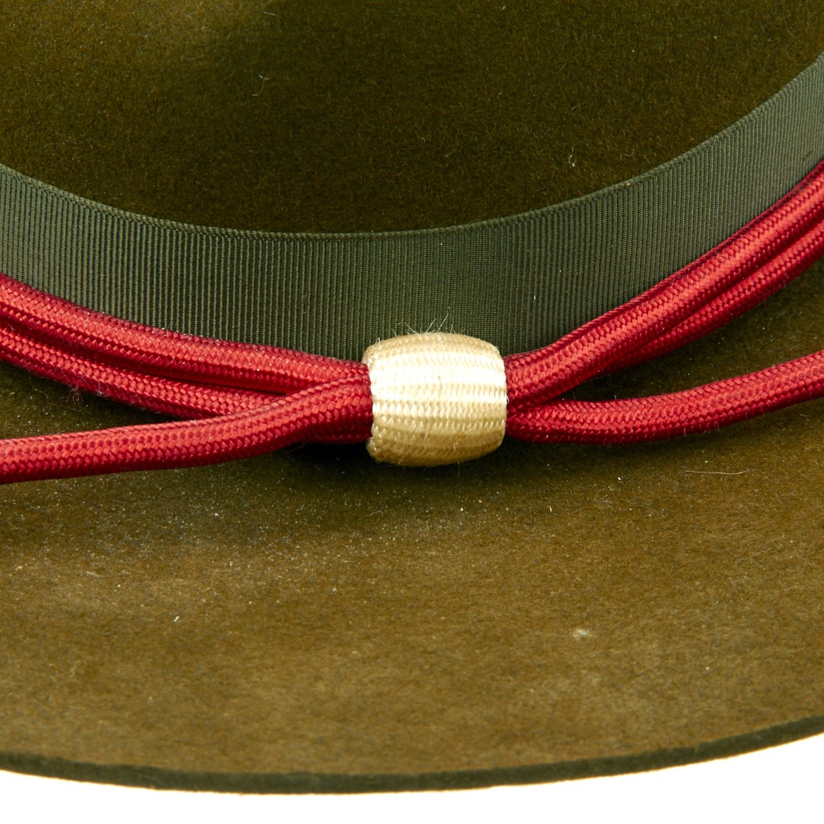 The hat cords were worn around the base of the crown indicated the branch for enlisted men and rank for officers. The system was similar to the piping colors for the Garrison Cap, copied from the Campaign Hat. Unit and rank insignia were sometimes worn on the front of the hat when authorized.