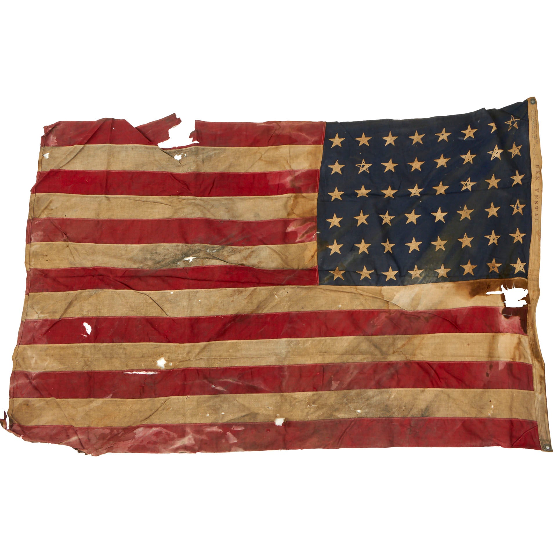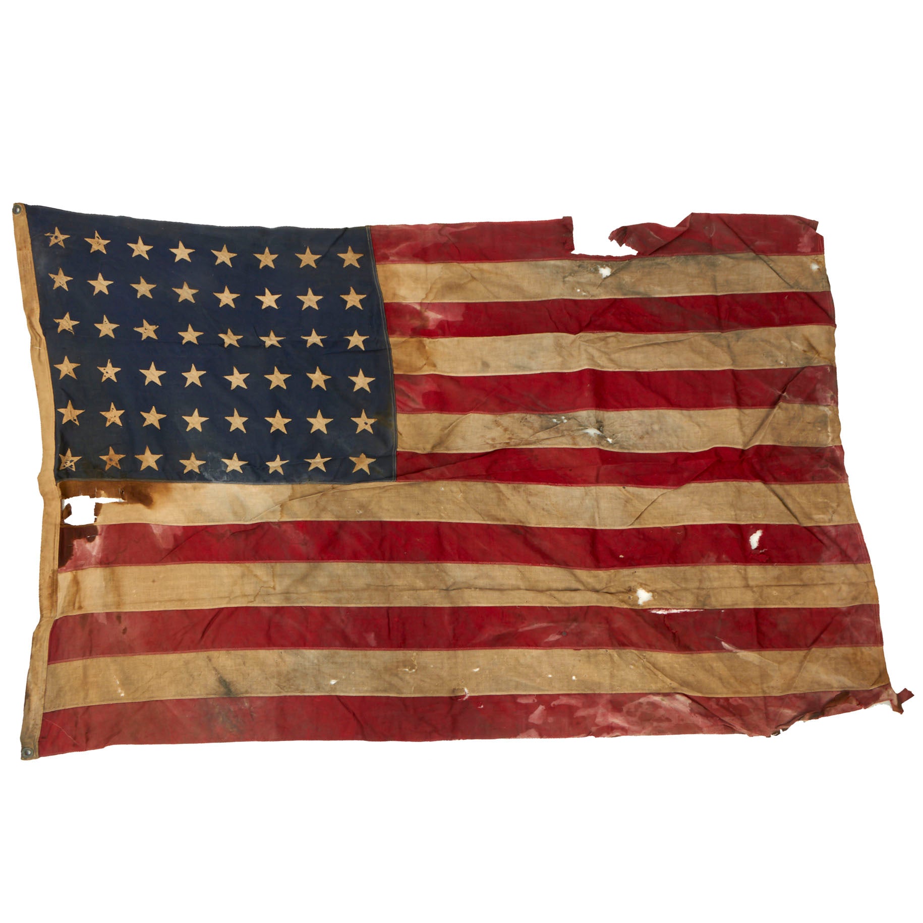 This incredible part of one American History most tragic days was recently acquired following the closure of a long-running private museum, that consisted of a collection of artifacts which started to be obtained in 1942. This flag has been on display in the museum since the early 1960s after it was obtained from the veteran who salvaged the flag as a grim souvenir of the Attack on Pearl Harbor. The flag has never been offered on the collector’s market before now.