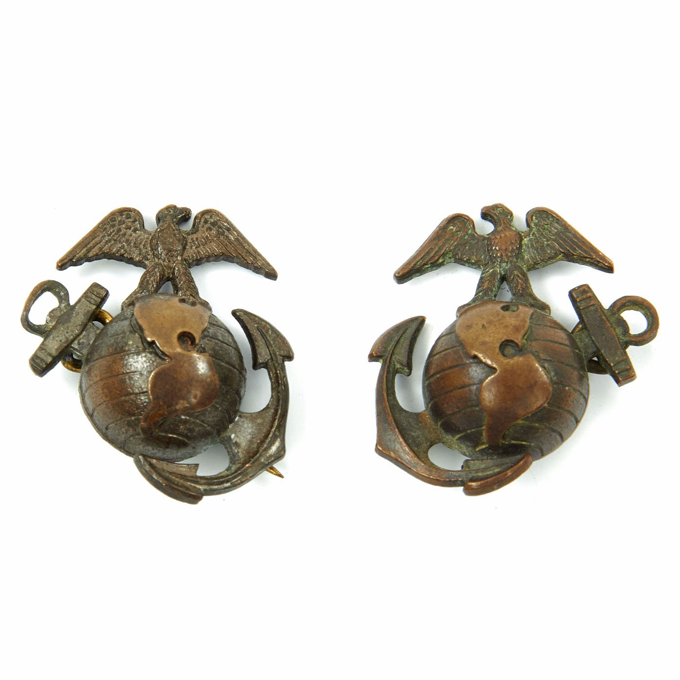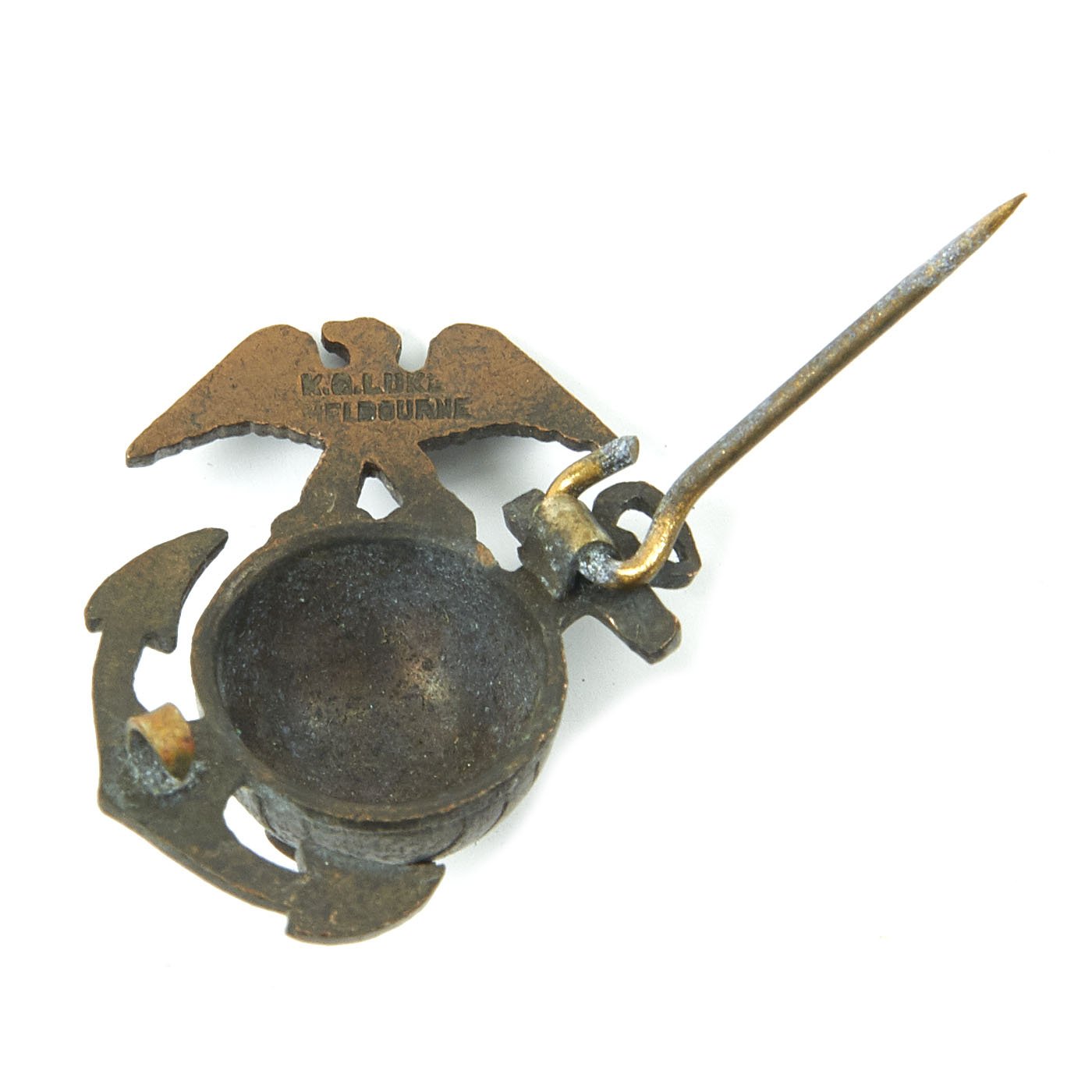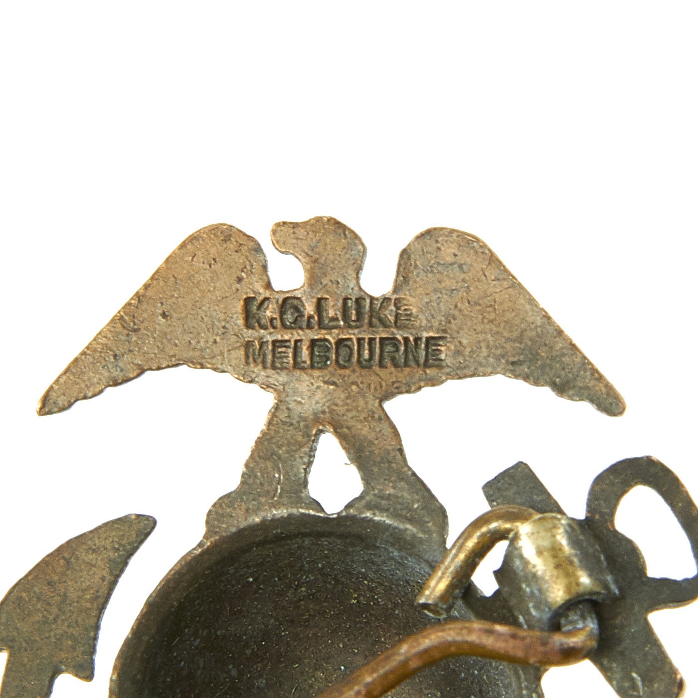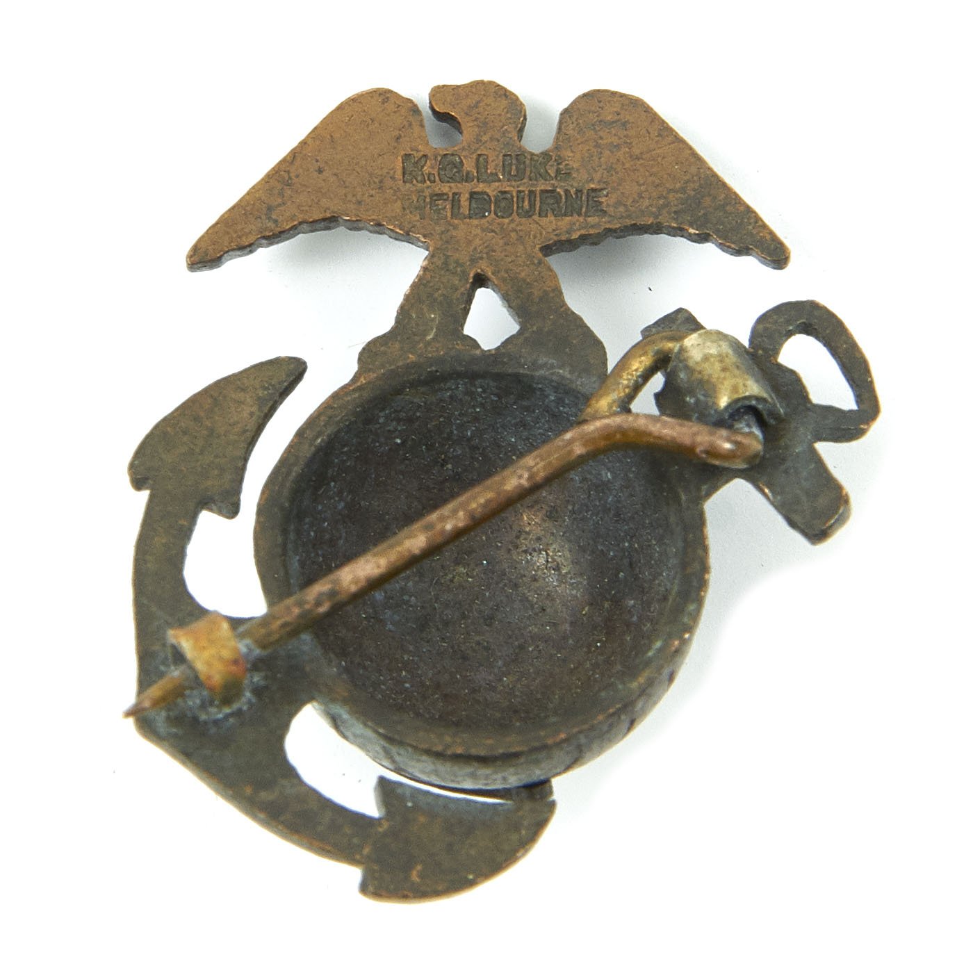 - Original Items: Only One Set Available. Australian manufactured USMC EGA (Eagle Globe & Anchor) collar devices. The original pin-back catches are intact and functional. Both emblems are maker marked K.G. Luke / Melbourne on the reverse. These are hard to find emblems as they were procured after the Guadalcanal campaign in 1942-1943 and typically only used by marines in the PTO during the time.