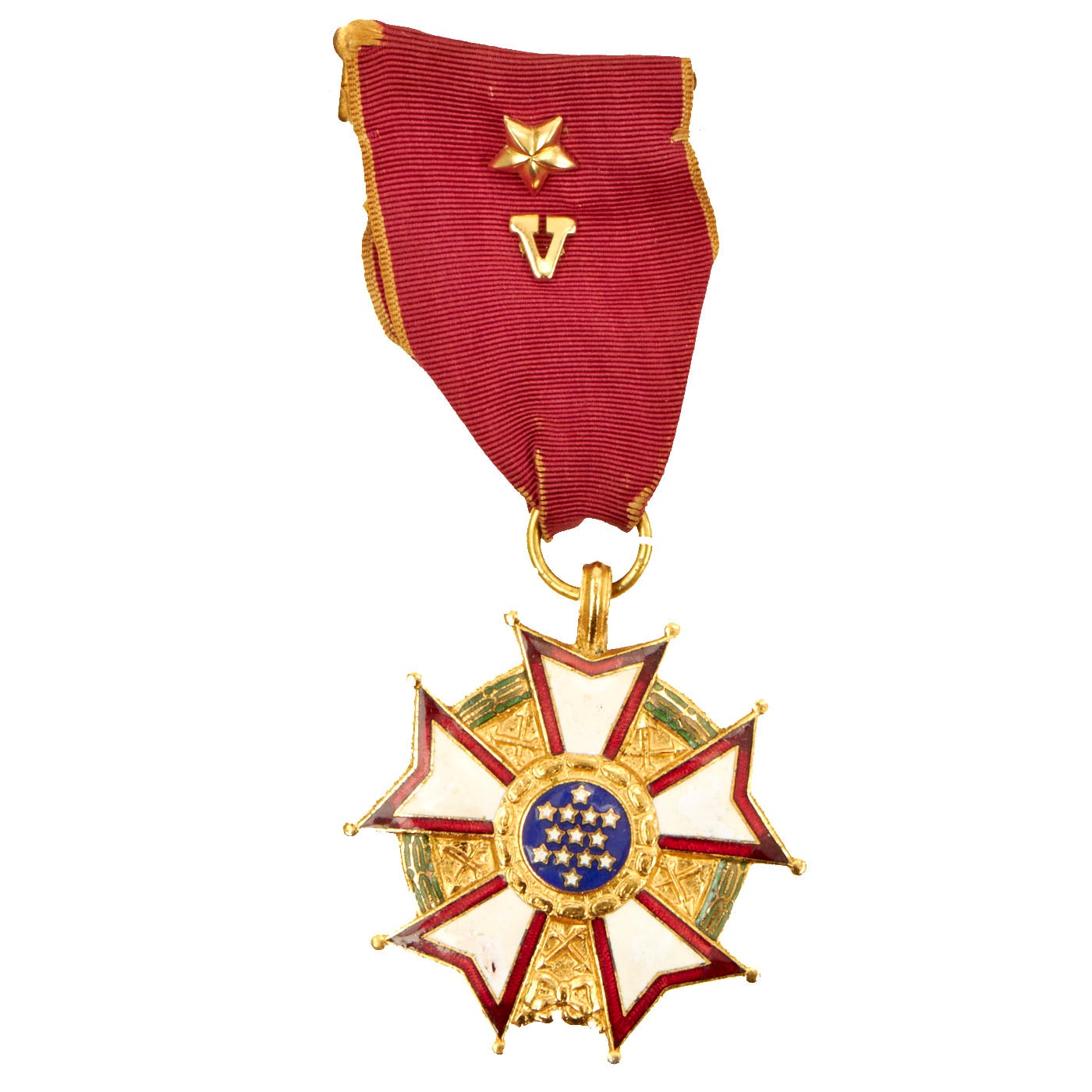 - Legion of Merit: The medal features a star indication a 2nd award and a “Combat V” for bravery/valor. The Legion of Merit (LOM) is a military award of the United States Armed Forces that is given for exceptionally meritorious conduct in the performance of outstanding services and achievements. The decoration is issued to members of the eight uniformed services of the United States as well as to military and political figures of foreign governments.