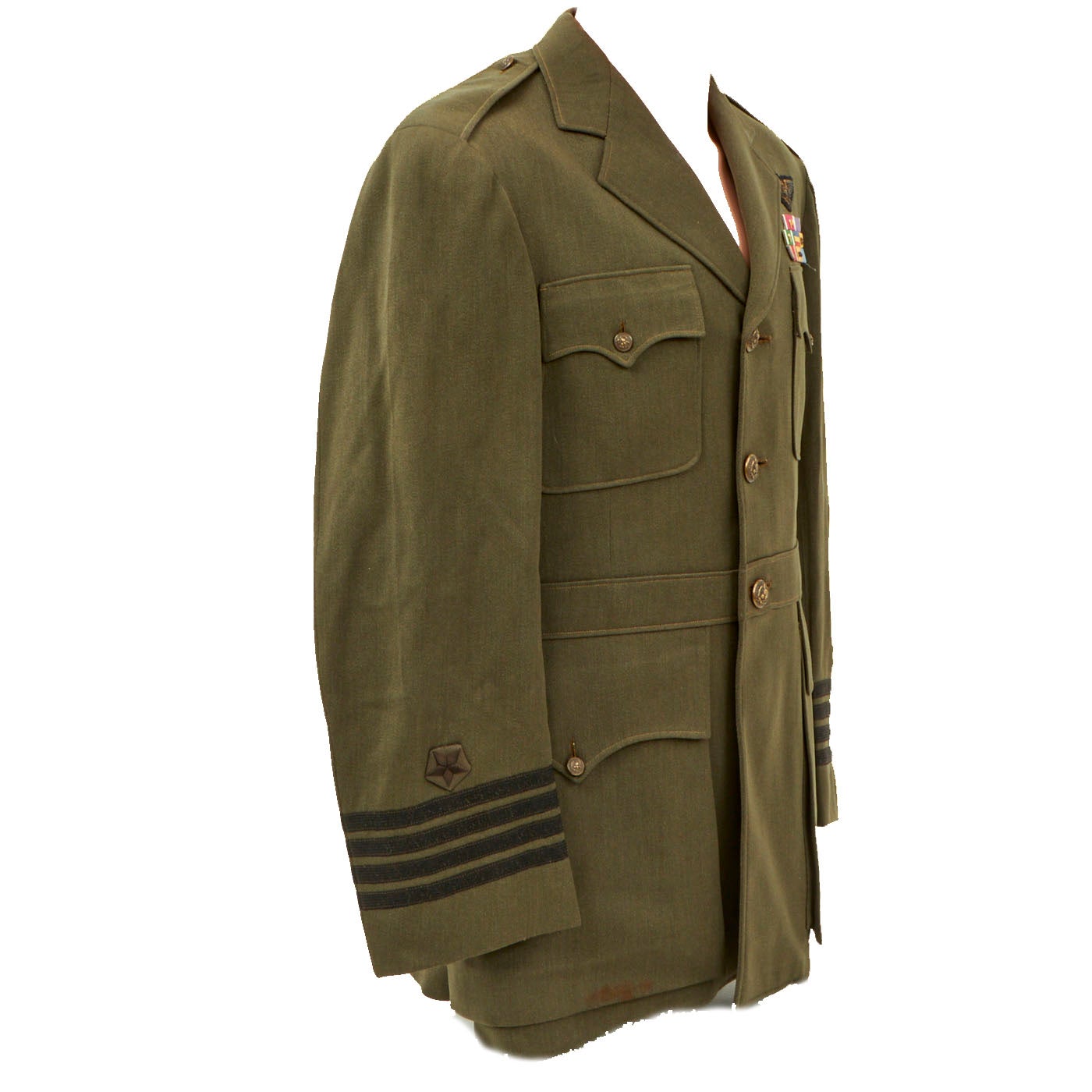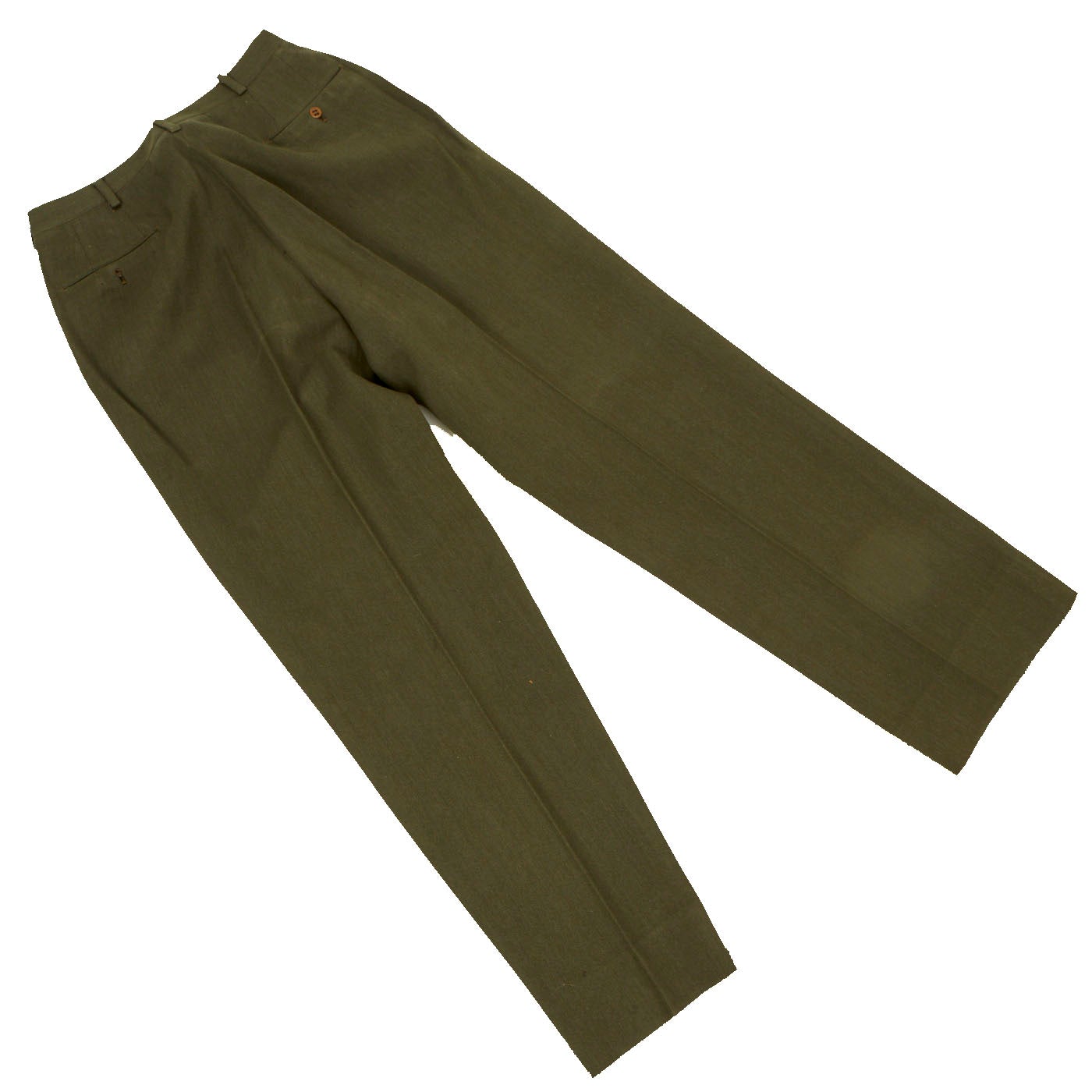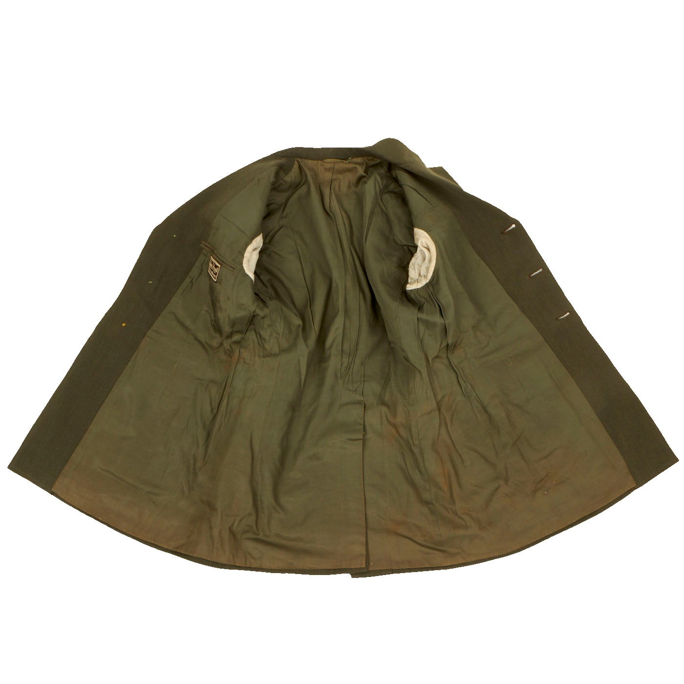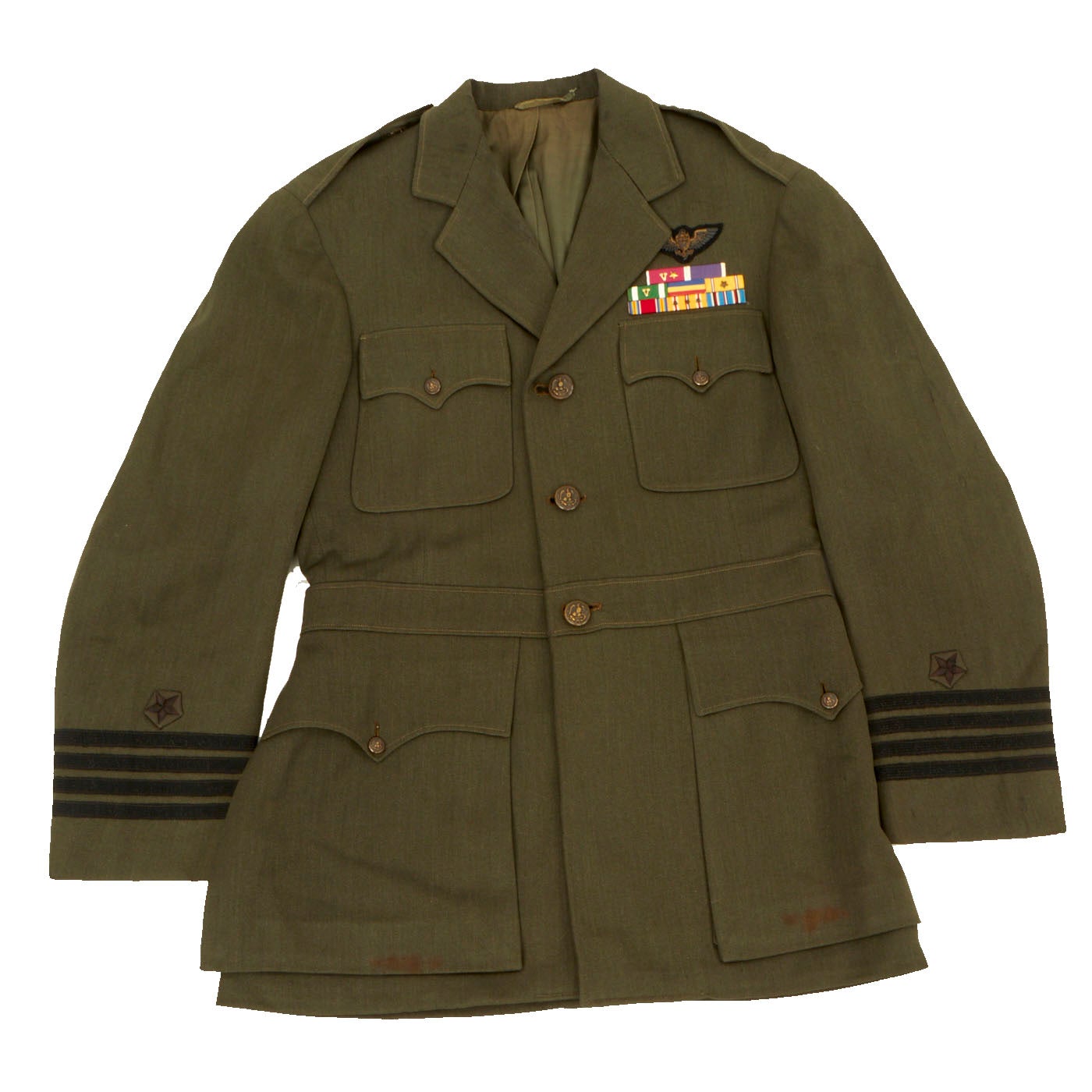 - Green Naval Uniform Jacket and Trousers: The uniform jacket and trousers are named to Crommelin and his handwritten name can be found on the inside right pocket tag. The jacket features a beautiful bullion Naval Aviation wings, as well as his ribbon stack. The ribbons that appear on the jacket are: Legion of Merit with Star and “V”, Purple Heart, Navy and Marine Corps Commendation with “V”, Navy and Marine Corps Presidential Unit Citation, American Defense with Star, WWII Victory Medal, Asiatic-Pacific with 3 Stars and an American Campaign. The uniform is offered in excellent condition.