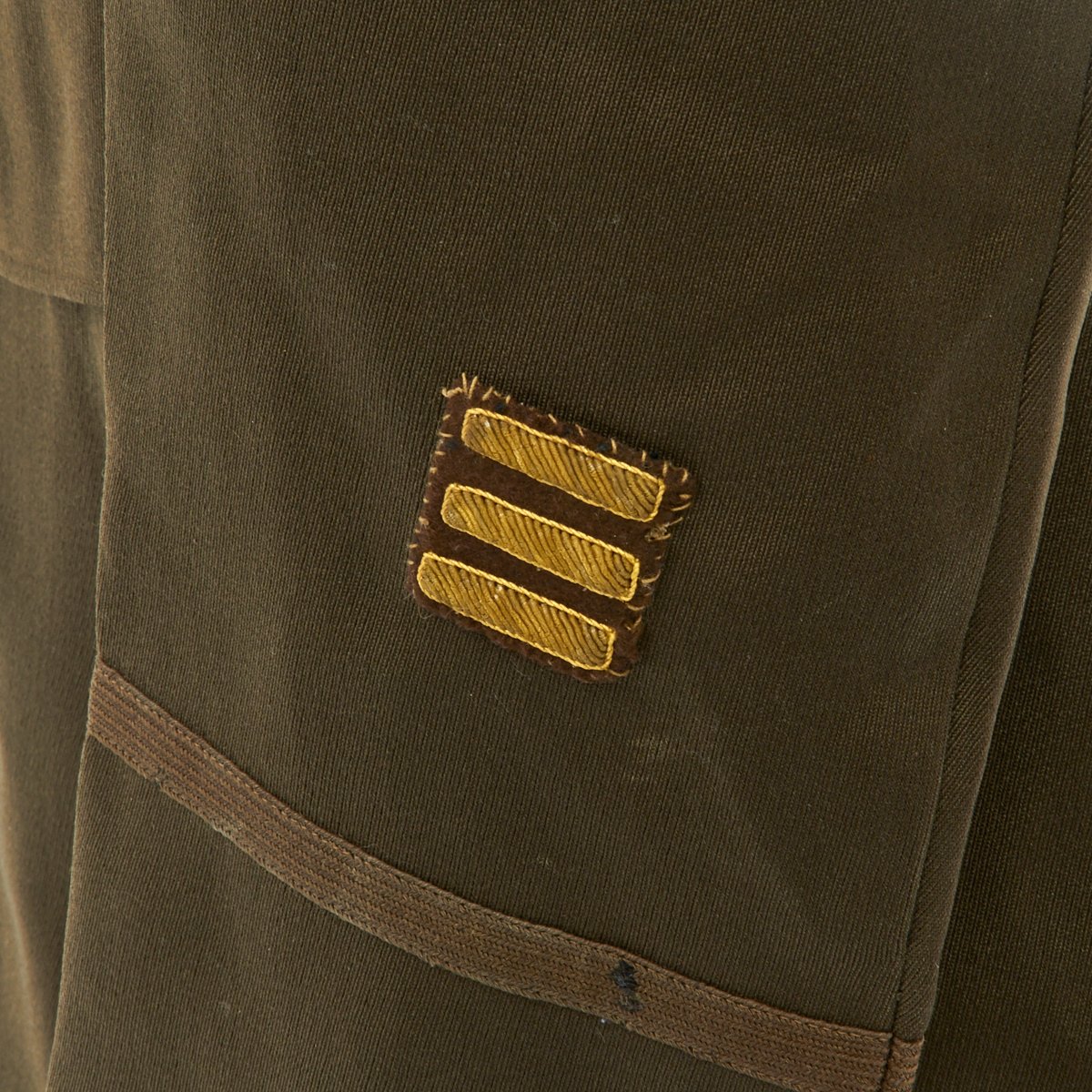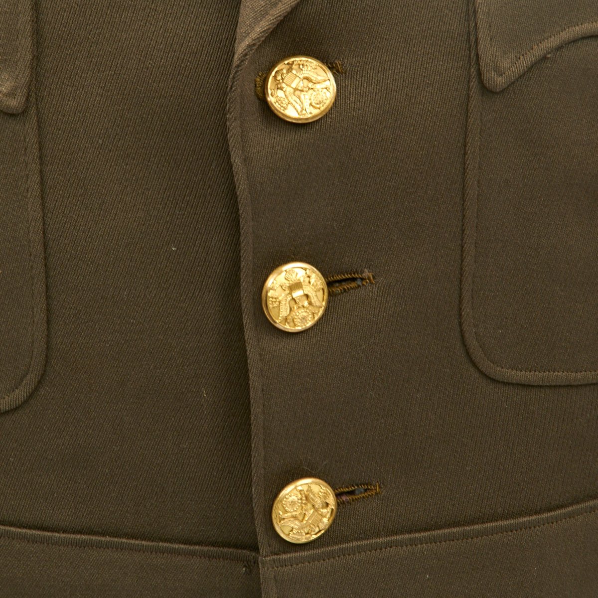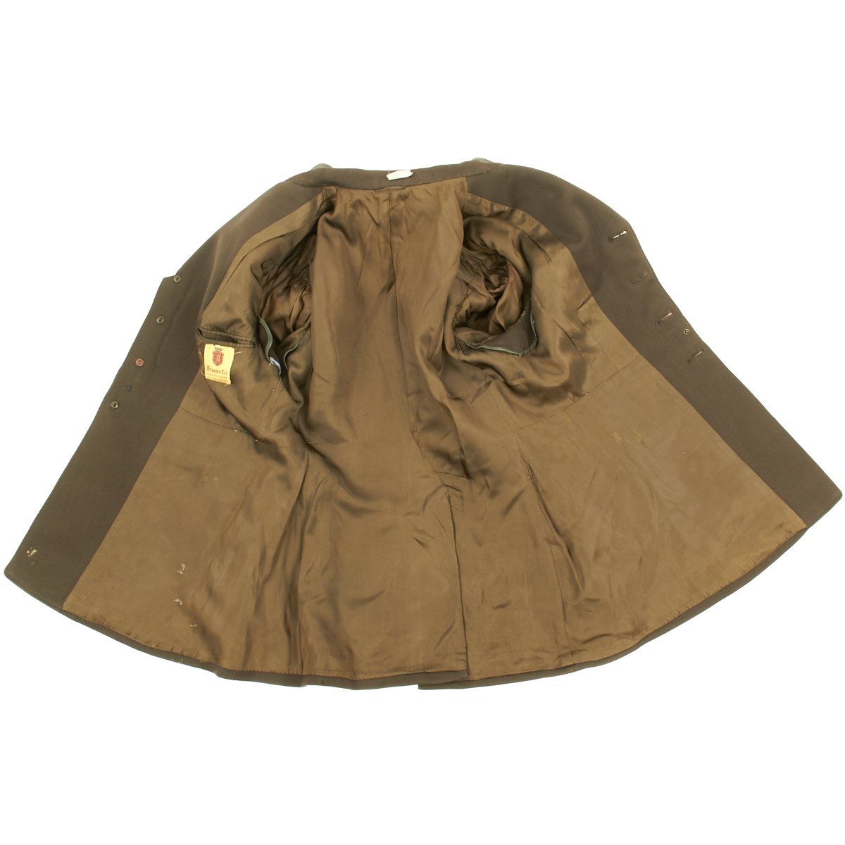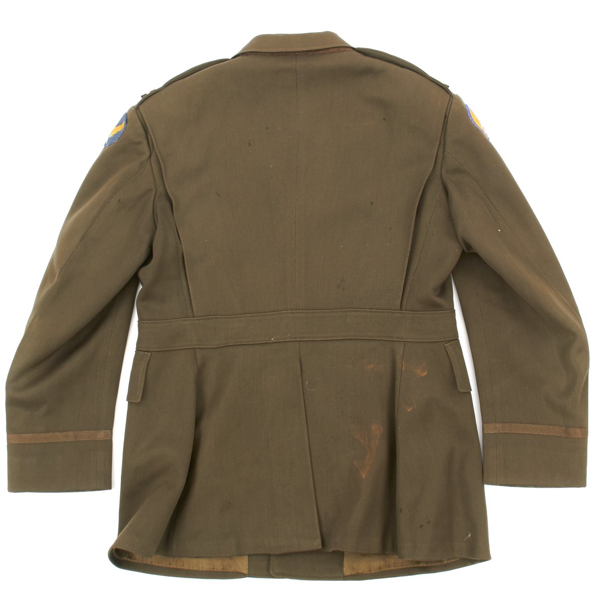 - Original WWII U.S. Class A four pocket officer tunic with Lieutenant bars on each shoulder, early Army Air Force patch, 8th Air Force patch, 3 overseas bars on left sleeve, tailor label from Freem's Ltd located in New York City inside the Waldorf Astoria Hotel.