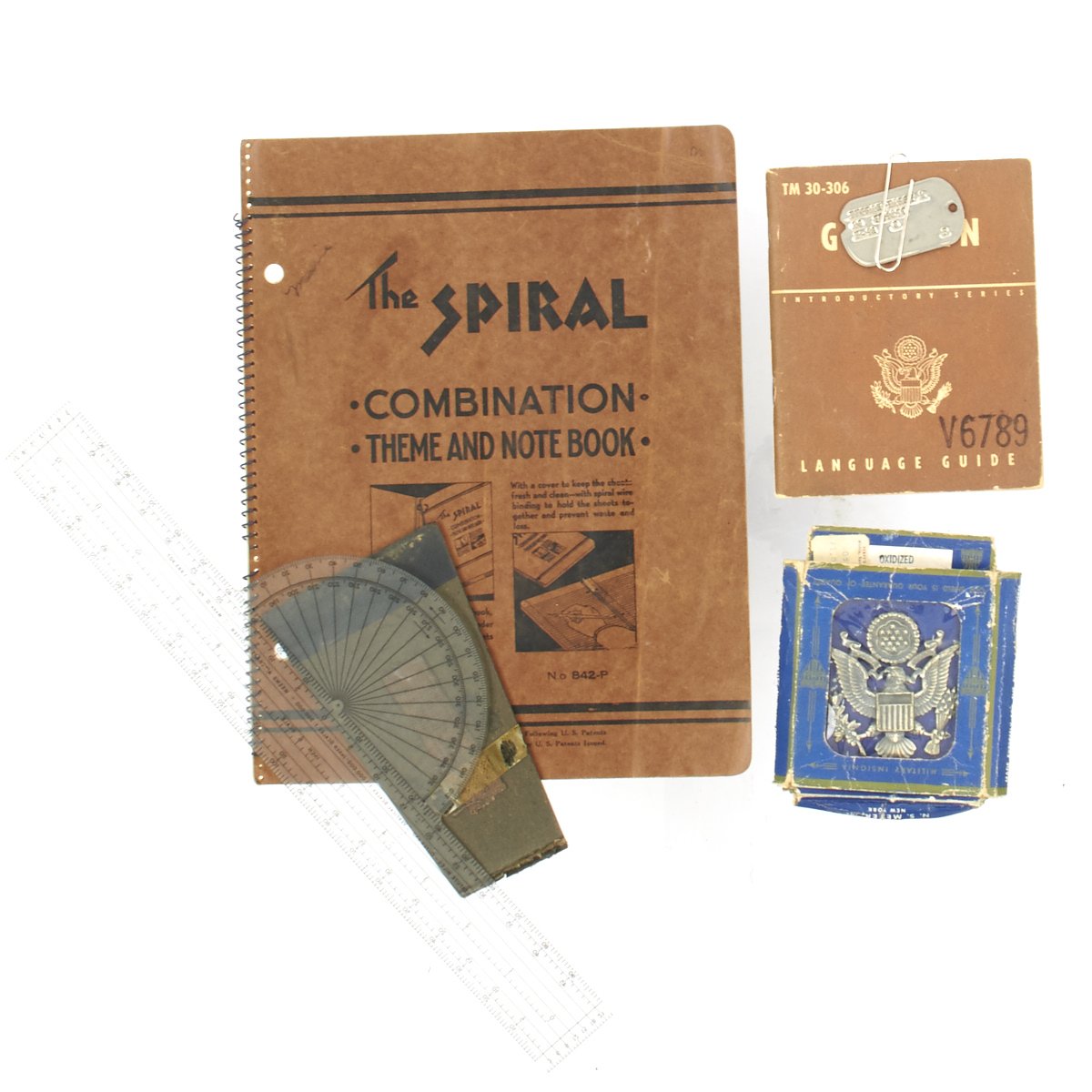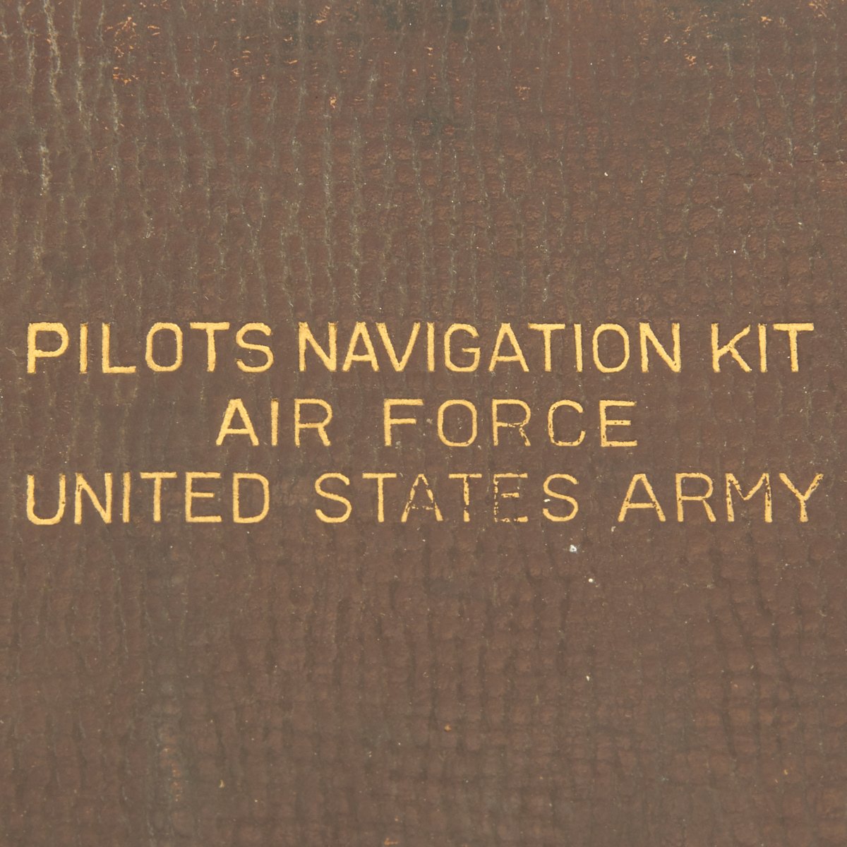 - Original WWII USAAF Pilots Navigation Kit filled with documents, tools and other things.