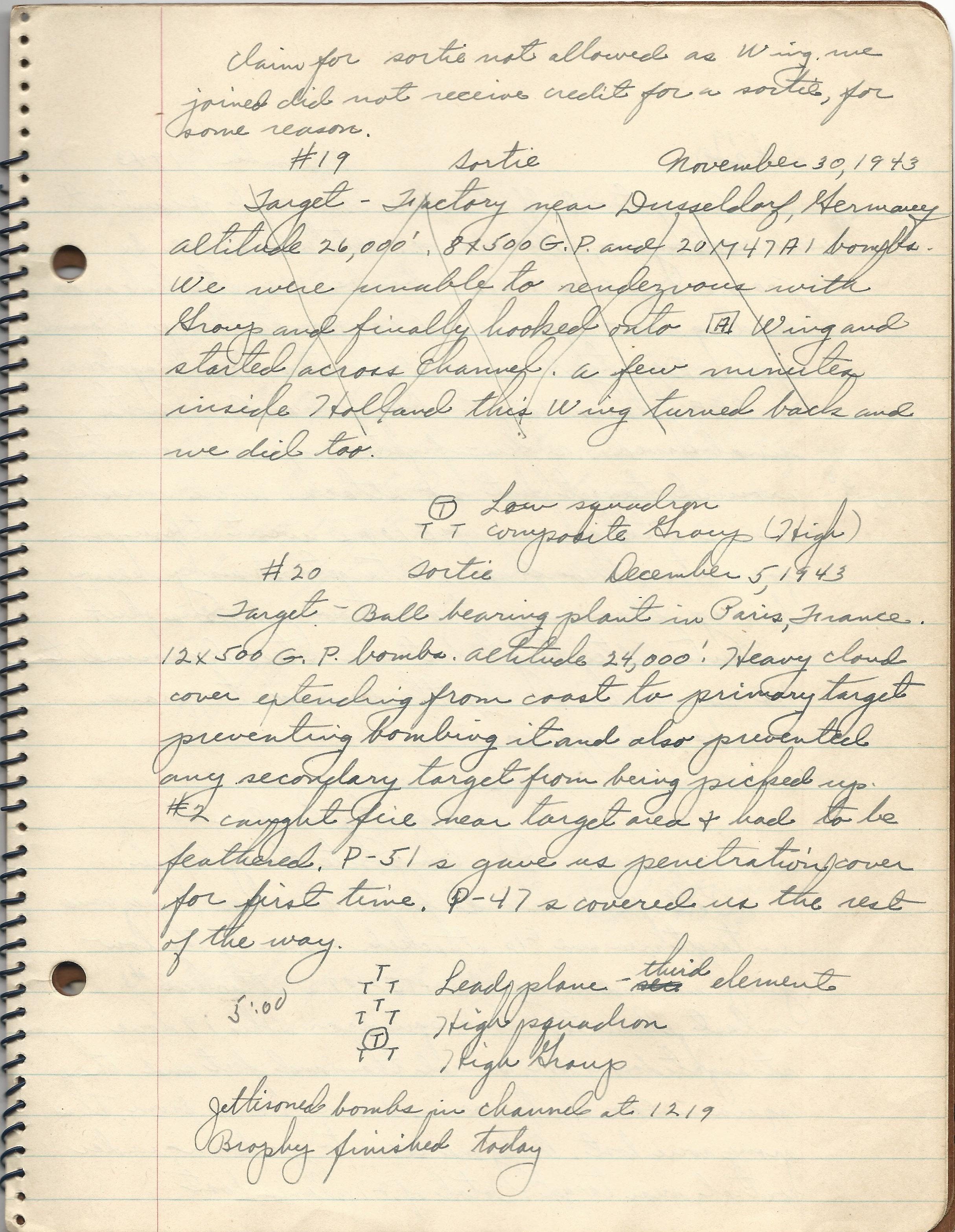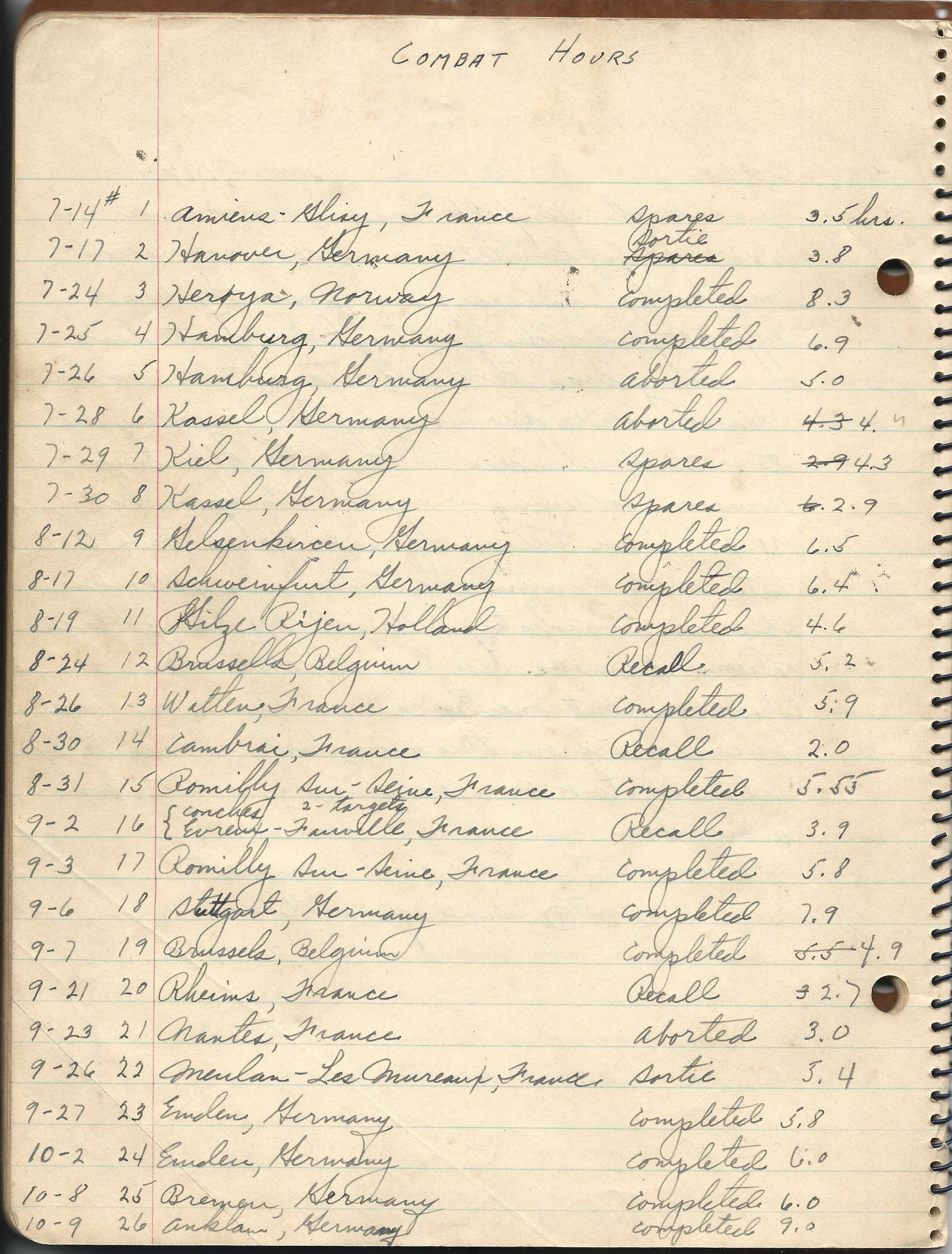 - Original WWII U.S. Flight Log Journal with all 25 missions handwritten accounts in wonderful detail.