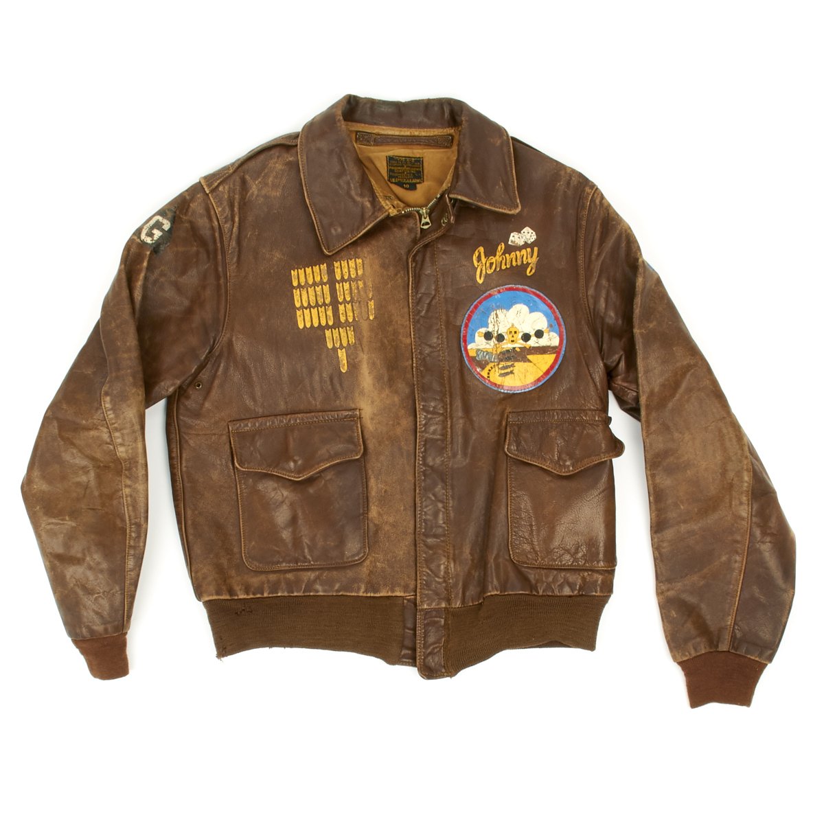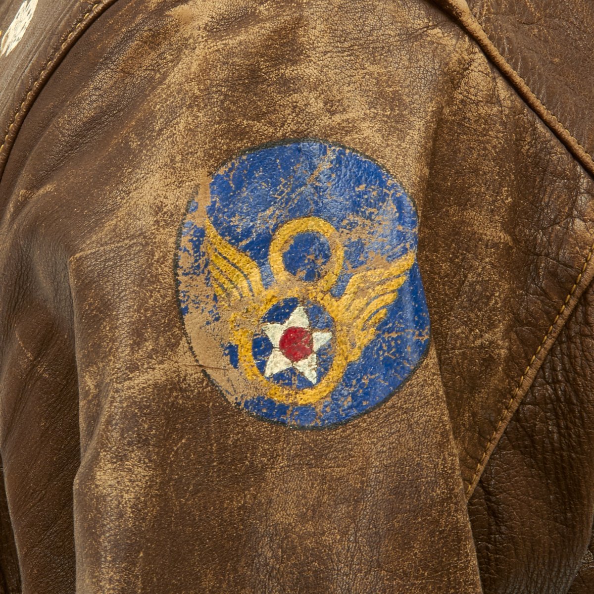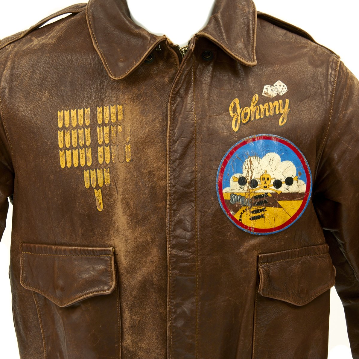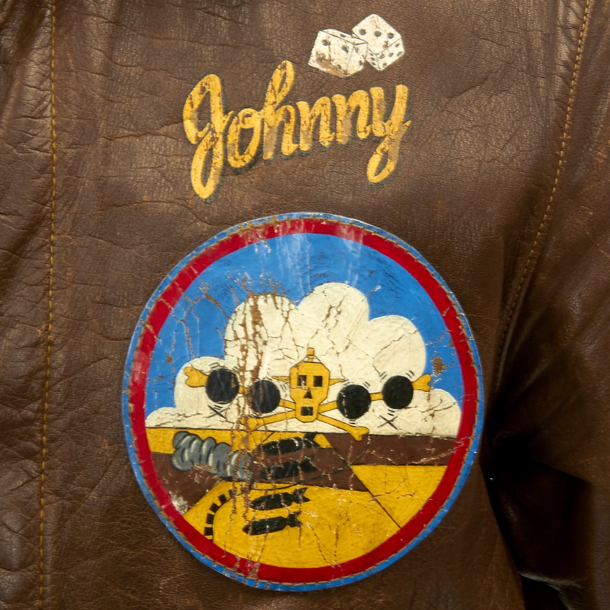 - Hand painted Johnny with a pair of luck dice above a leather hand painted patch of the 365th Bombardment Squadron insignia sewn to left chest.
