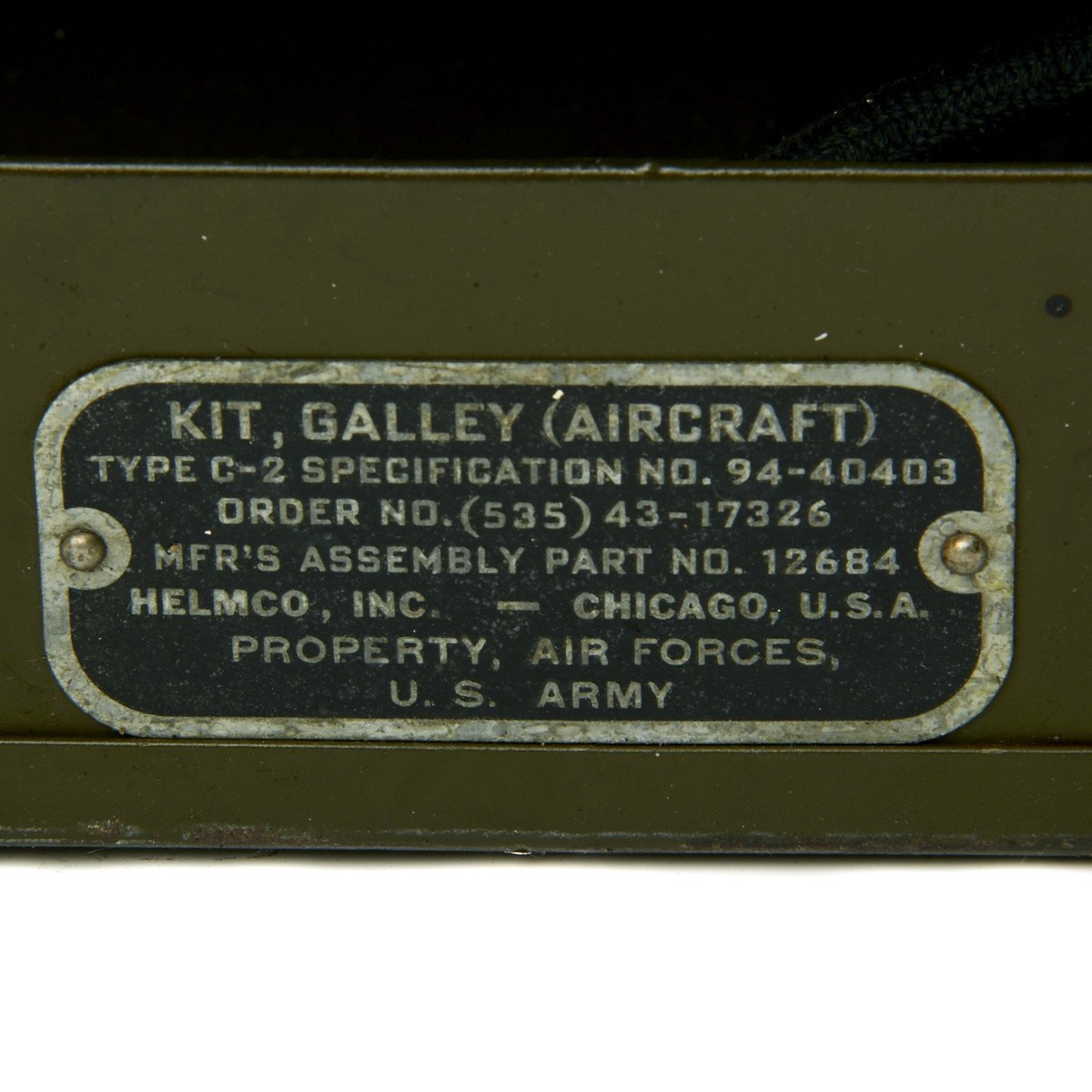 Original Item: Only One Available. United States Army Air Force B-17 Flying Fortress bomber crewman kit galley with accessories and data plate that reads: