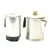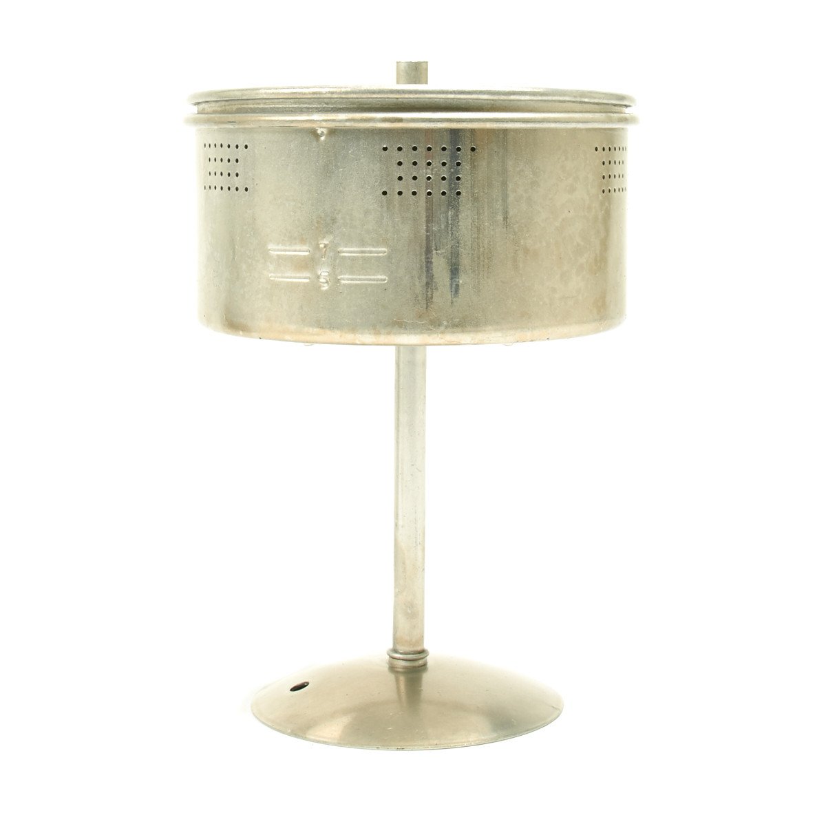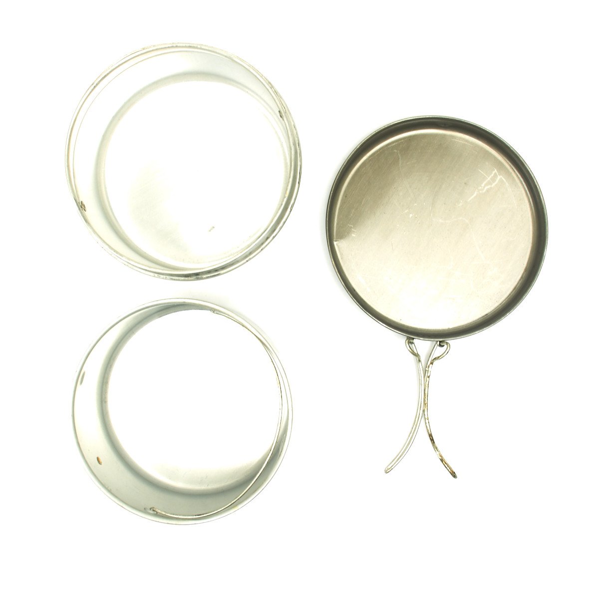 Approximate size- 15" X 10" X 30" tin chest with removable section containing two removable round 6x 7 high enameled lidded containers and a 6 x 8 hot plate. Includes pots and pans and other various accessories plus the power cord. We have not tested this so can not verify it is in working condition.