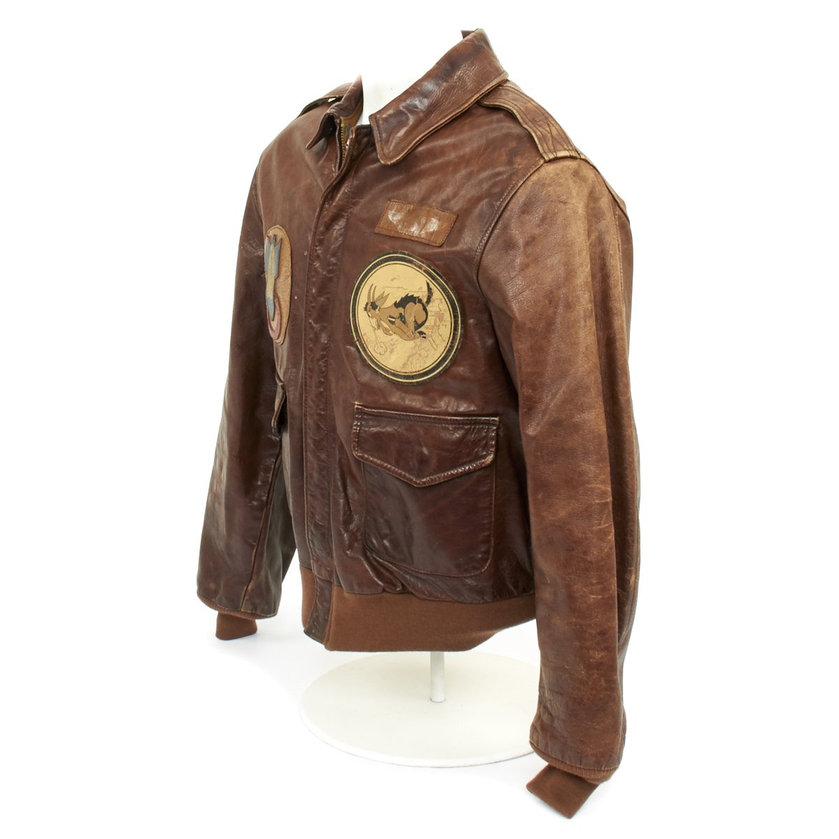 Original Item: One-of-a-kind. This is an exceptional A2 leather flight jacket issued to a pilot on who flew in North Africa, Italy and in the Pacific Theater CBI (China, Burma India campaign) during WW2 as a member of the 81st Bombardment Squadron and 56th Bombardment Squadron.