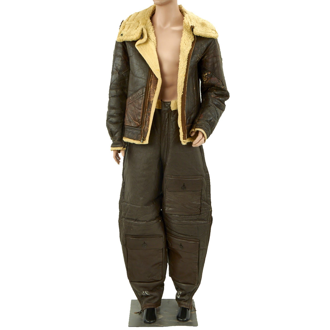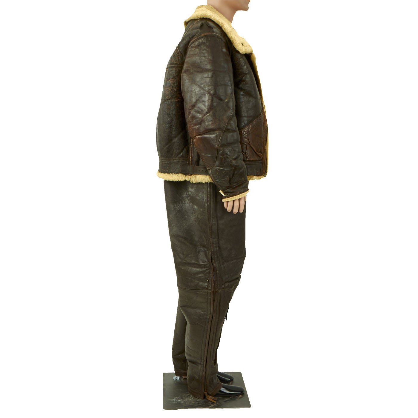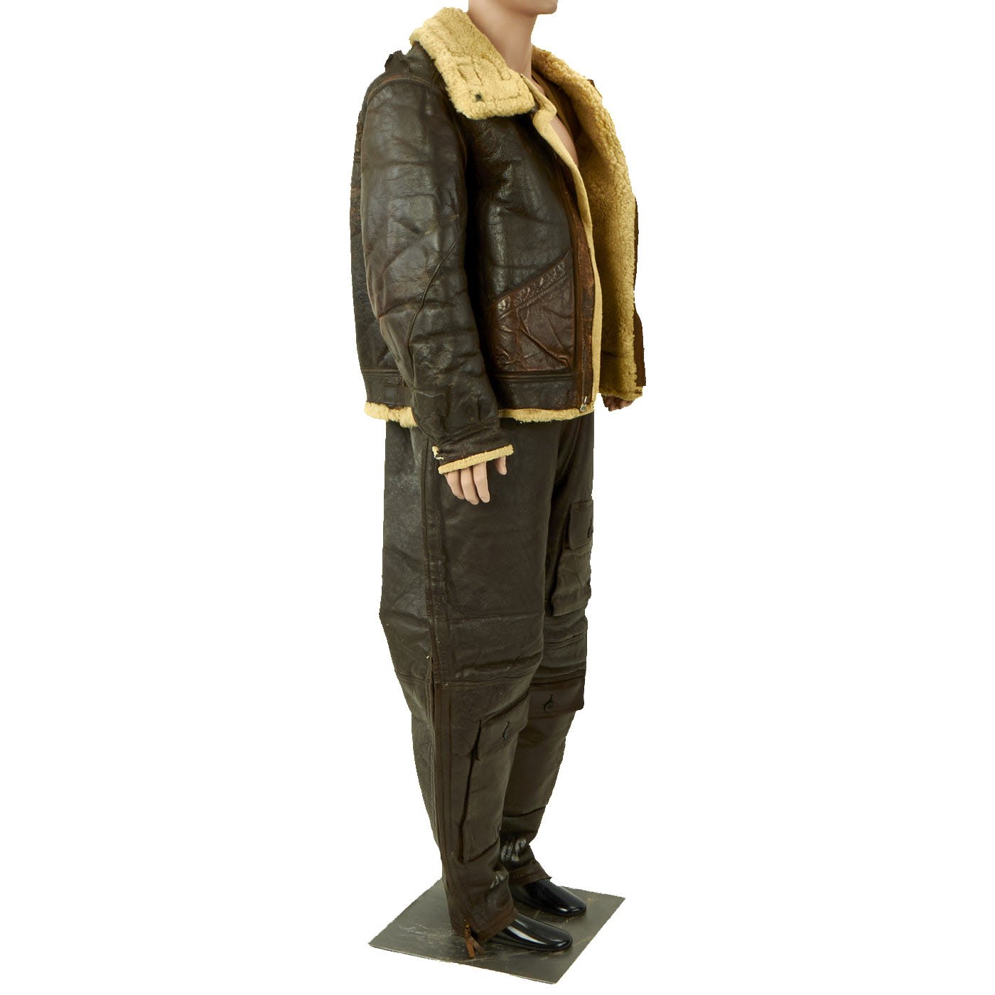 Original Items: Only One Set Available. This is a size 42R Type B-3 Shearling lined flying jacket manufactured by Werber Sportswear in 1942 under order number 42-21699-P. Overall condition of the jacket is very good, but the zipper is not functional. Also included are size 40 M446B Winter Trousers by Geiger and Willis. The pants are offered in very good condition.
