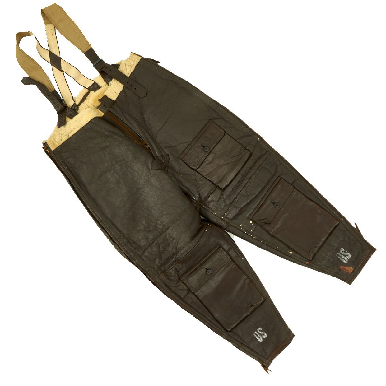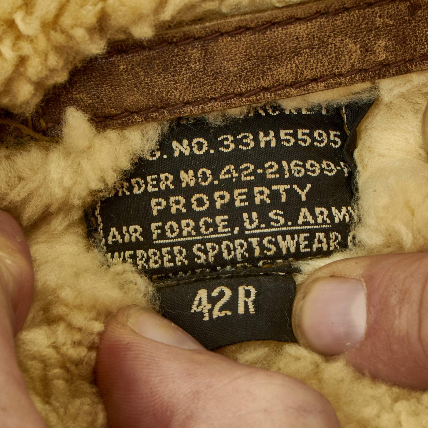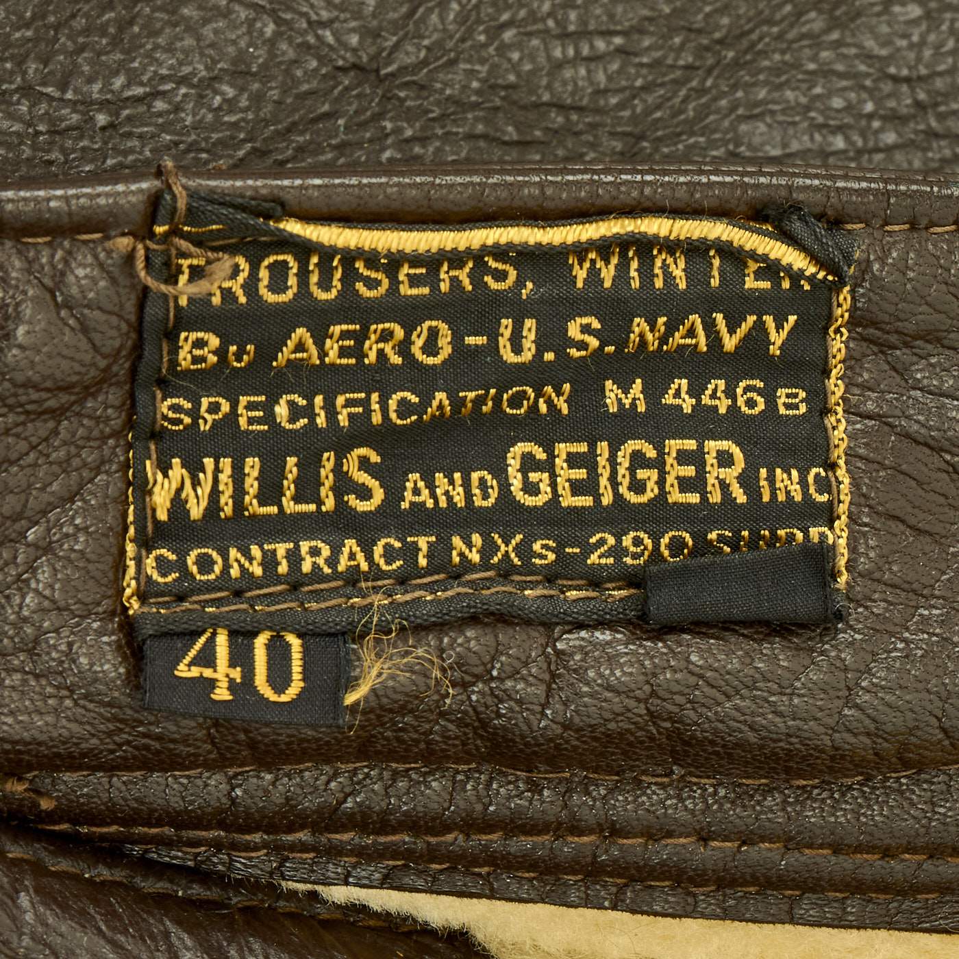 Original Items: Only One Set Available. This is a size 42R Type B-3 Shearling lined flying jacket manufactured by Werber Sportswear in 1942 under order number 42-21699-P. Overall condition of the jacket is very good, but the zipper is not functional. Also included are size 40 M446B Winter Trousers by Geiger and Willis. The pants are offered in very good condition.