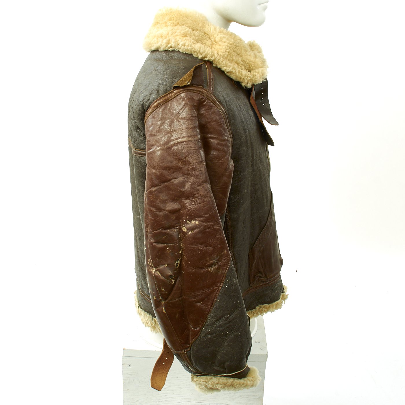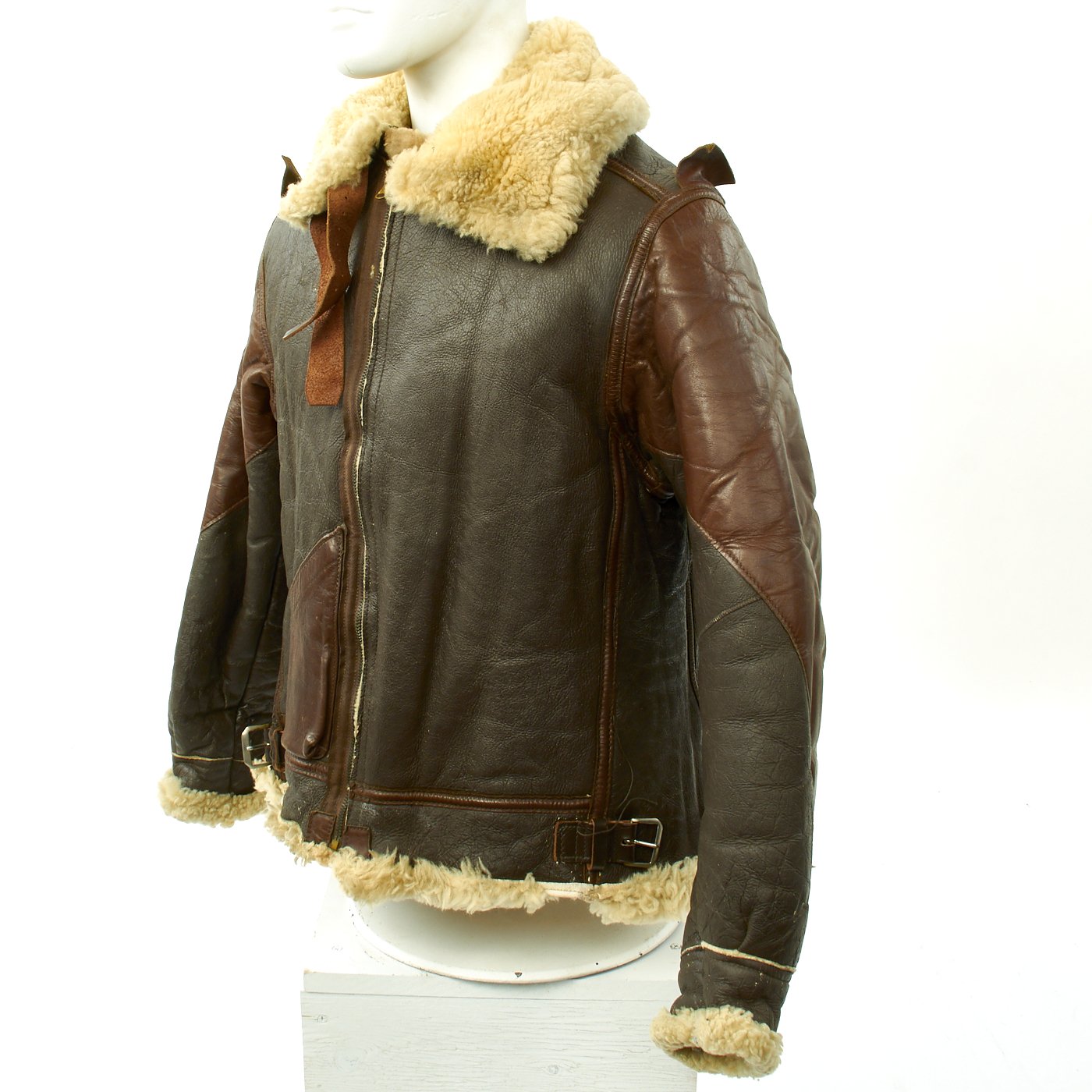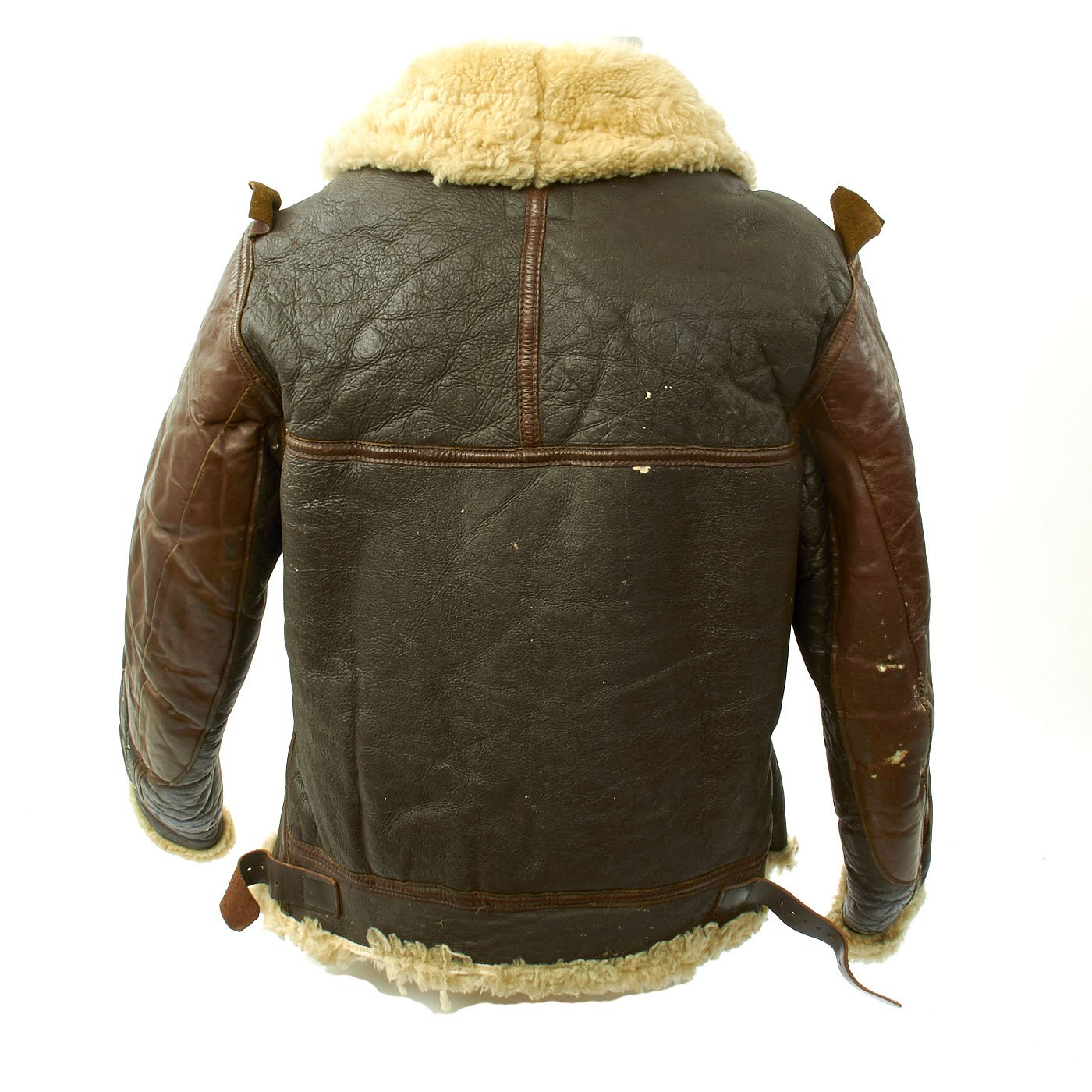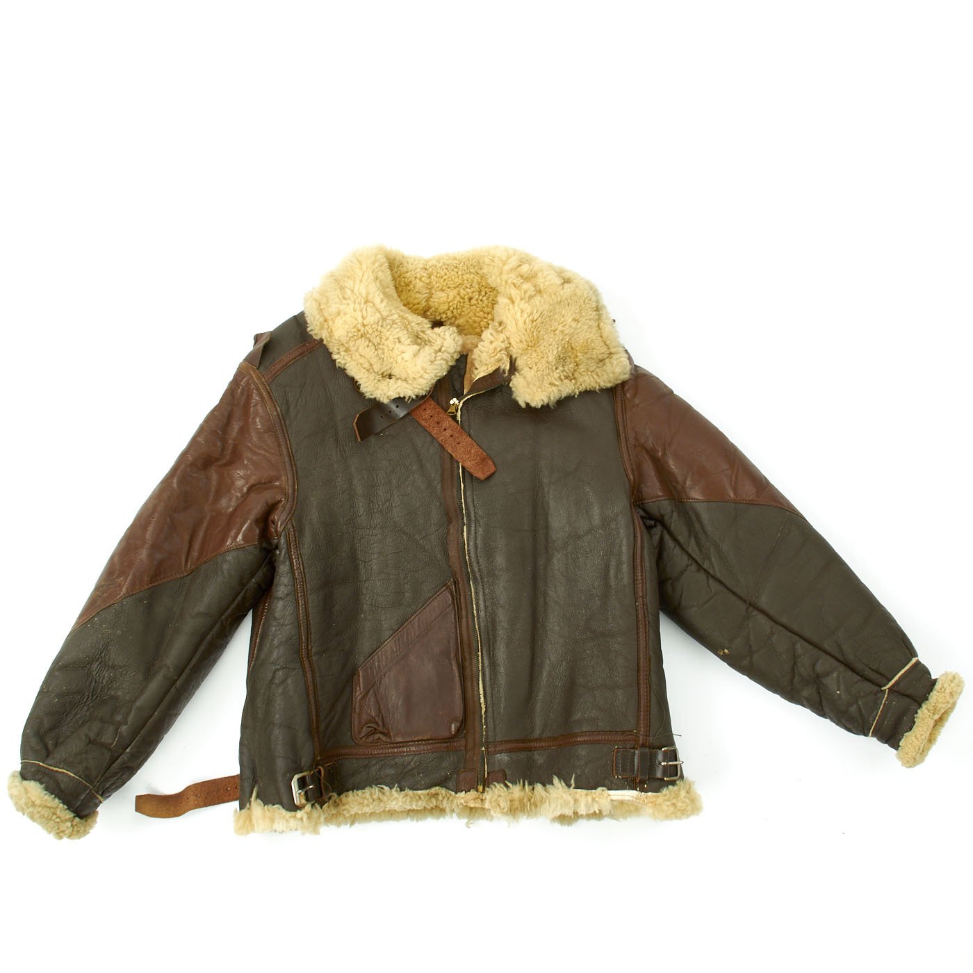 Original Item: Only One Available. During World War Two the B-3 was a jacket designed specifically for the high-altitude needs of bombers. This was a bulky sheepskin jacket with a heavy-duty sheep-fur lining meant to keep men warm 25,000 feet in the air. For extra protection, the wide sheepskin collar could be closed with two leather straps. Far bulkier than typical flight jackets, the B-3 does not have a knit waistband and trim fit that made the other jackets famous. Rather its warmth and durability made it a hit, even with Army General George S. Patton. The B3 was heavy-duty jacket designed for the sub-freezing temperatures of high-altitude flying. Today multiple reproduction are produced and many cost well over $1000 because the B-3 is a great, time-tested option.
