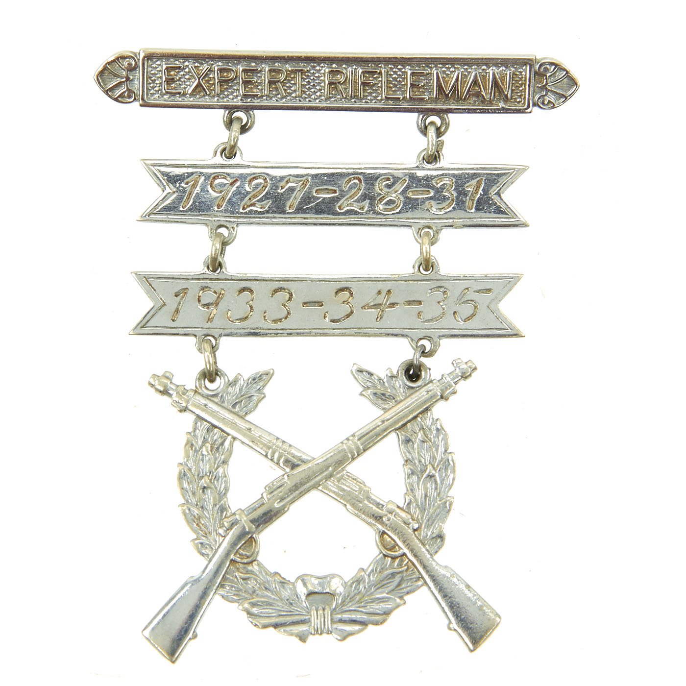 - Expert Rifleman Badge with 1927-28-31, 1933-34-35 bars.