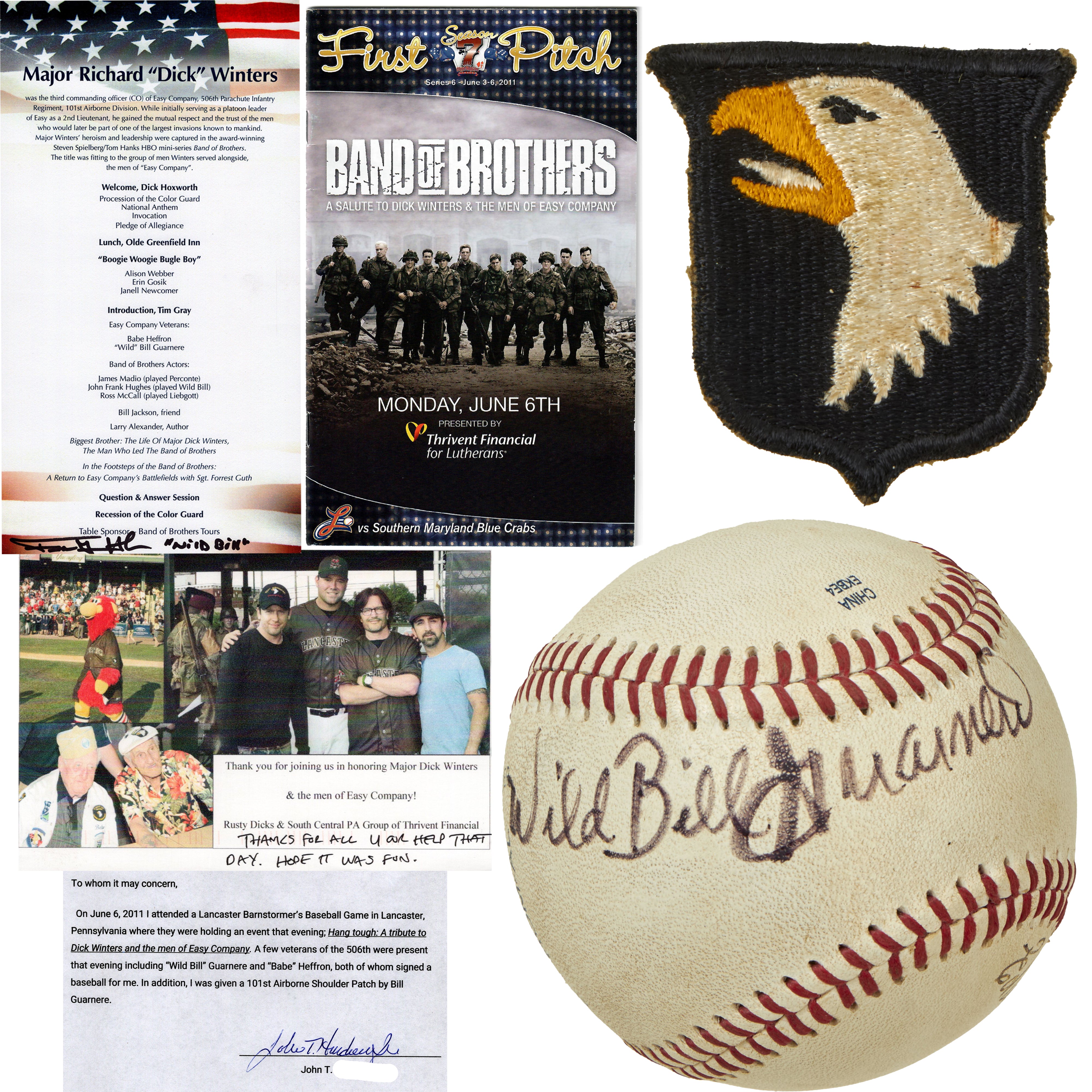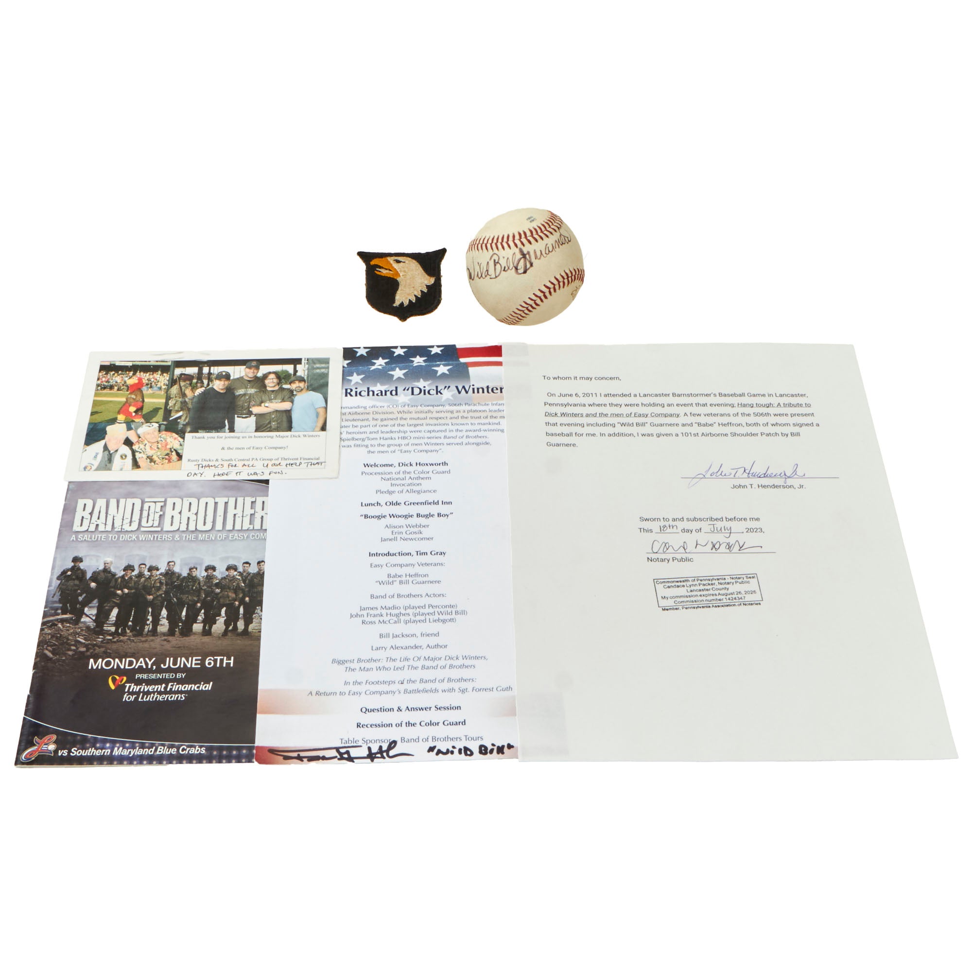 It is accompanied by an “Official Atlantic League Baseball" by Rawlings, which has been signed by both William J. “Wild Bill” Guarnere and Edward James "Babe" Heffron. The fascinating pair came to us from an individual who had the honor of meeting the two veterans after a Lancaster Barnstormers baseball game in Lancaster, Pennsylvania, on June 6, 2011. It was at this baseball game that they hosted an unforgettable event later that evening called “Hang Tough: A Tribute to Dick Winters and the Men of Easy Company”.