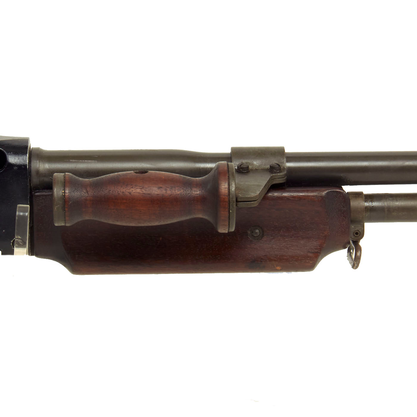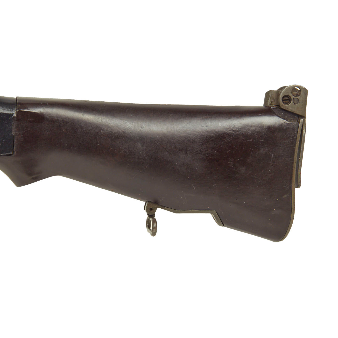 This example is particularly nice, having the front sight hood and rear carry handle, both of which are often missing. Both sling swivels are present, as is the flip up "shoulder rest" on the butt stock. The wooden fore stock quite nice, and comes complete with the internal heat shield making this one of the most attractive examples that we have offered.
