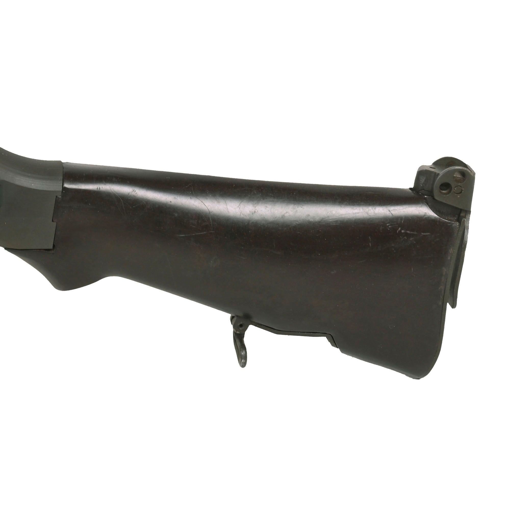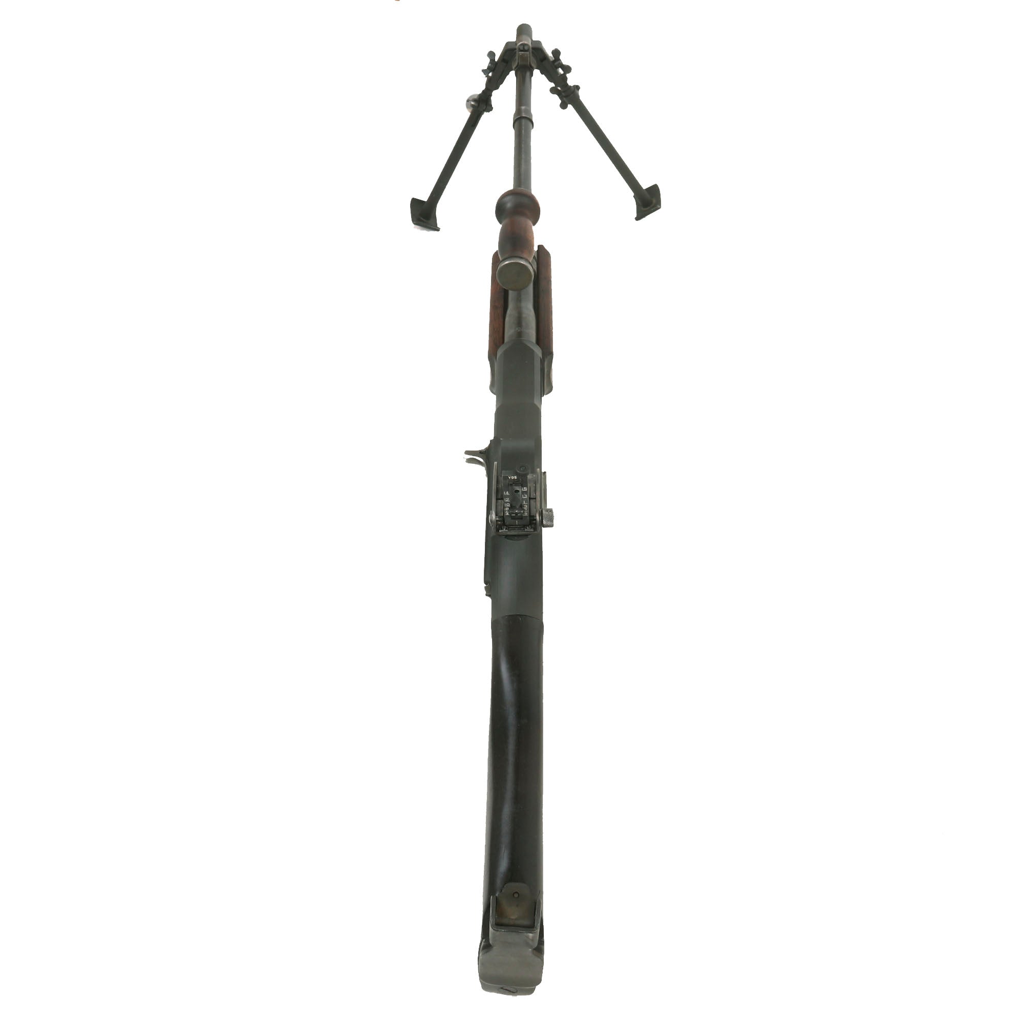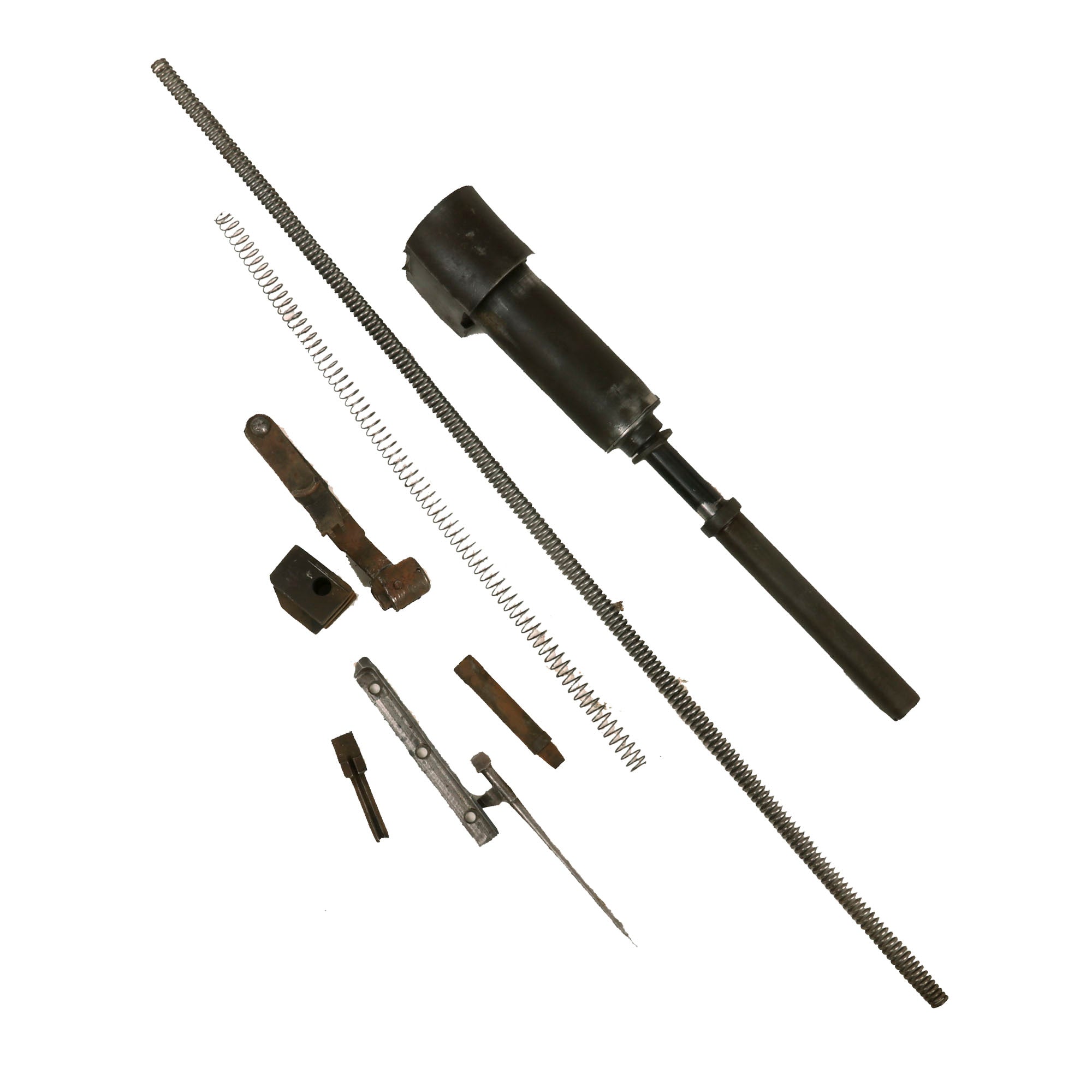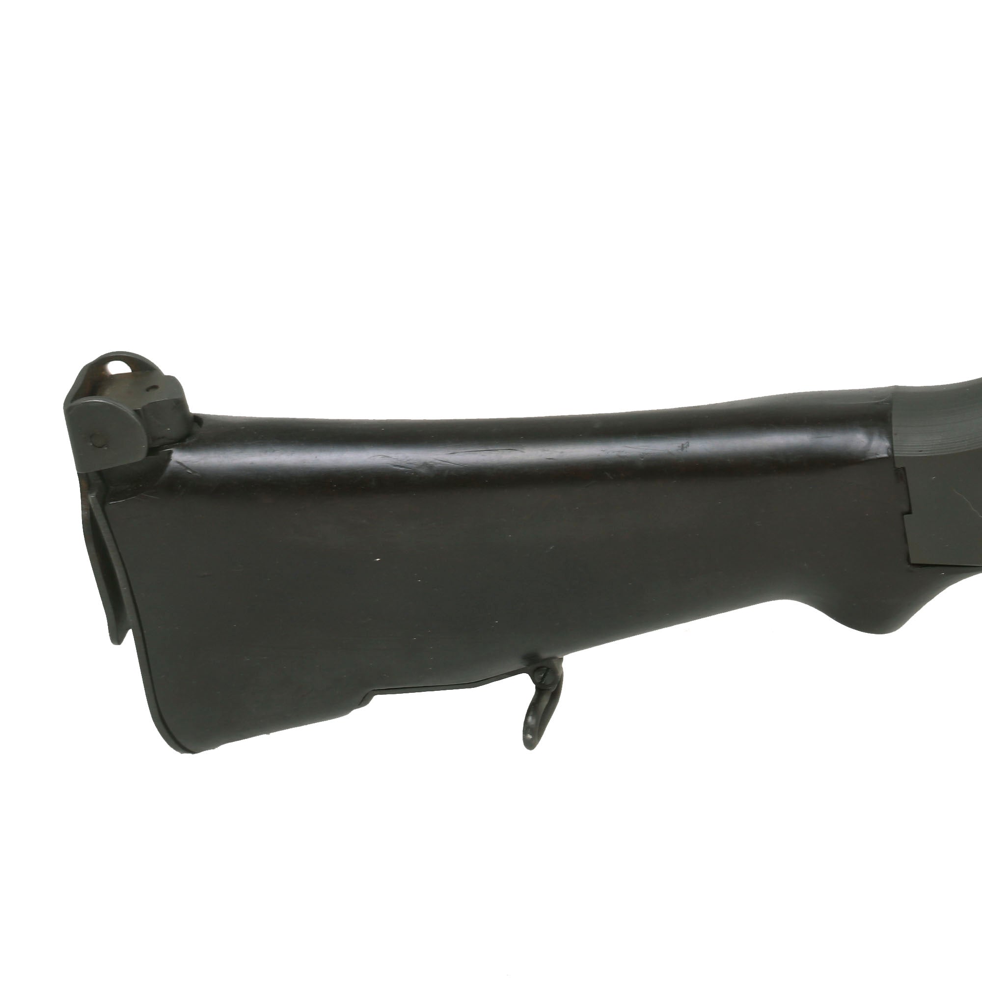 This example is very nice, having the often missing carry handle as well as the heat shield underneath, and comes with some internal components left over from construction. These include the recoil springs, the buffer, and other small components. Please consult the picture for details. Both sling swivels are present, as is the flip up "shoulder rest" on the butt stock. The wooden fore stock is in excellent condition, and the bakelite butt stock has a lovely color, making this one of the most attractive examples that we have offered.