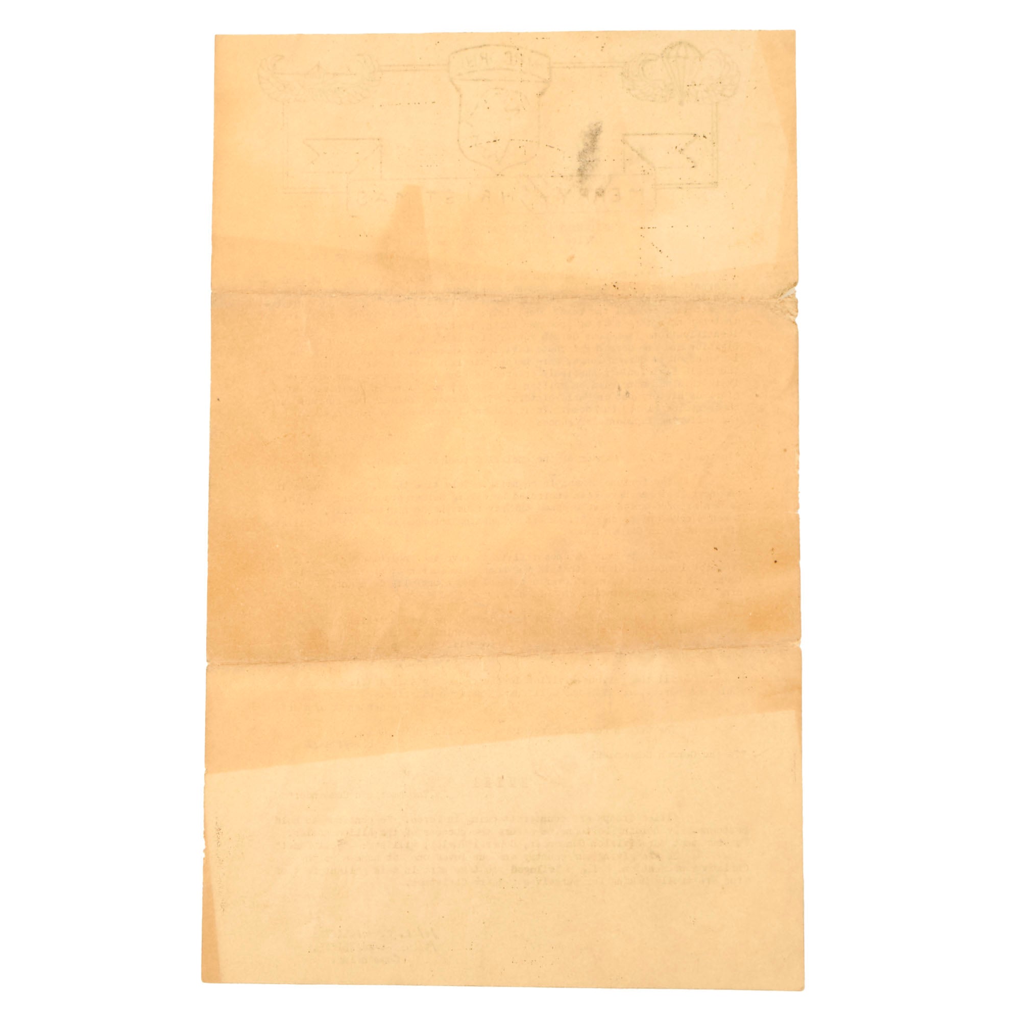 A fantastic example of one of the most sought after pieces of 101st Airborne Ephemera. Comes ready for further research and display!