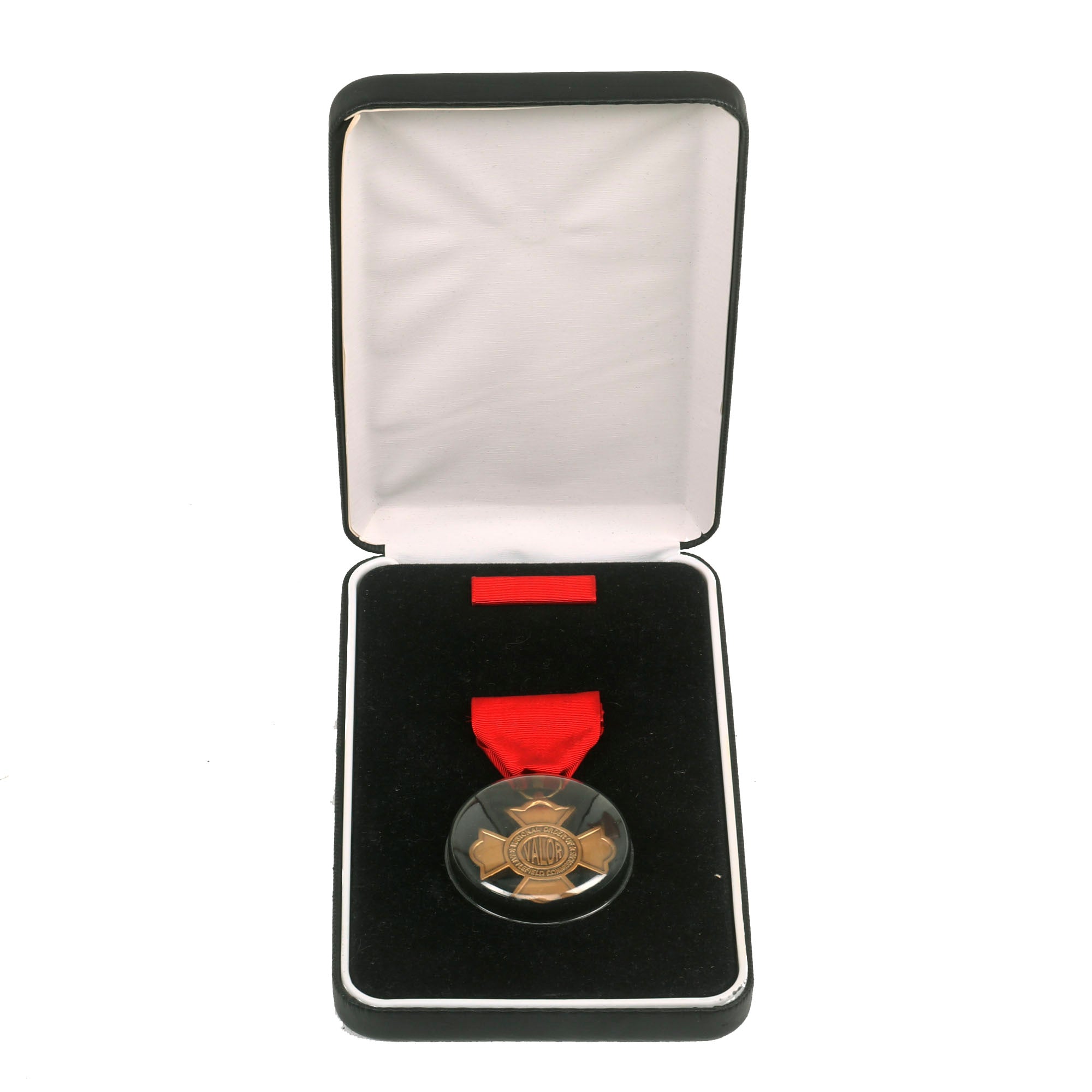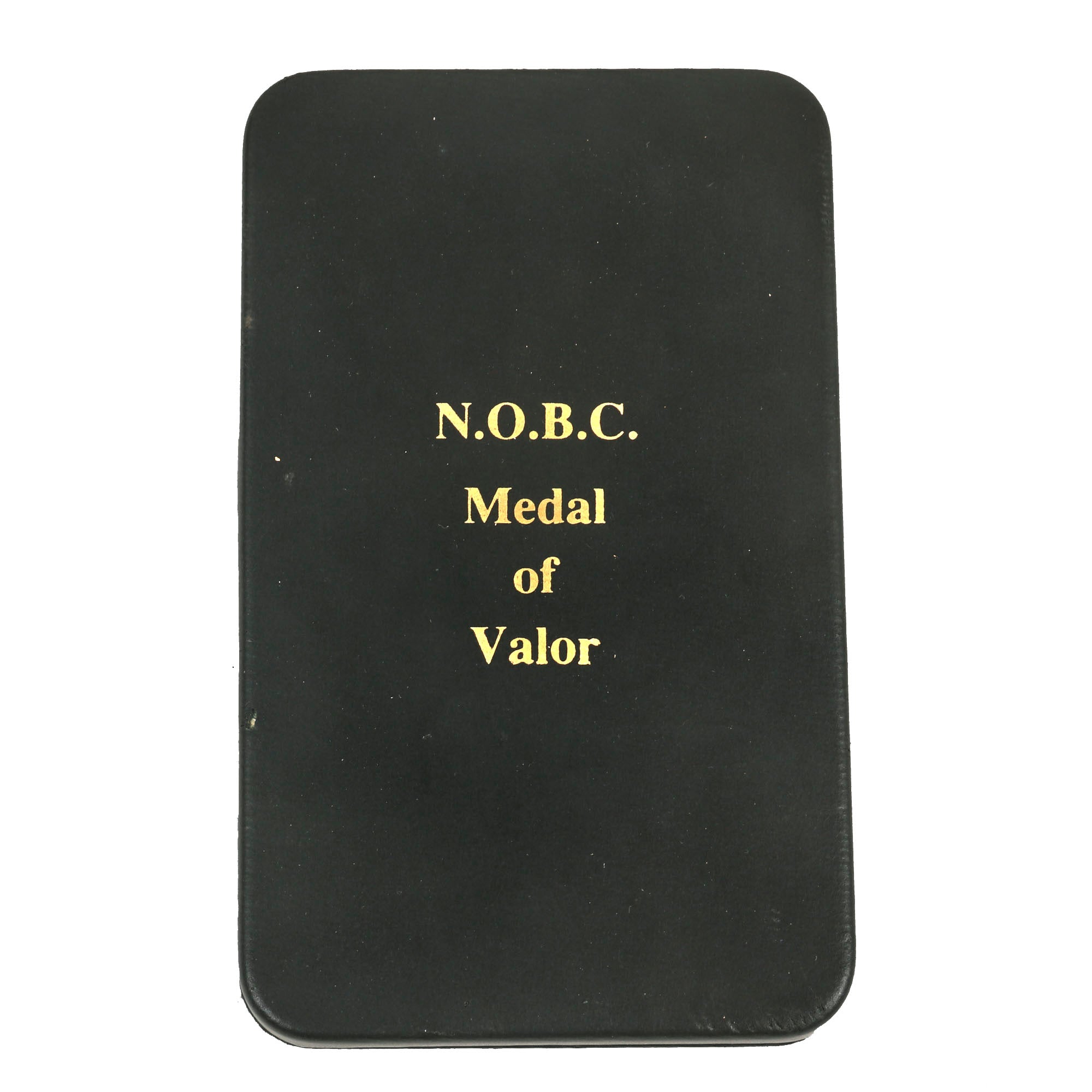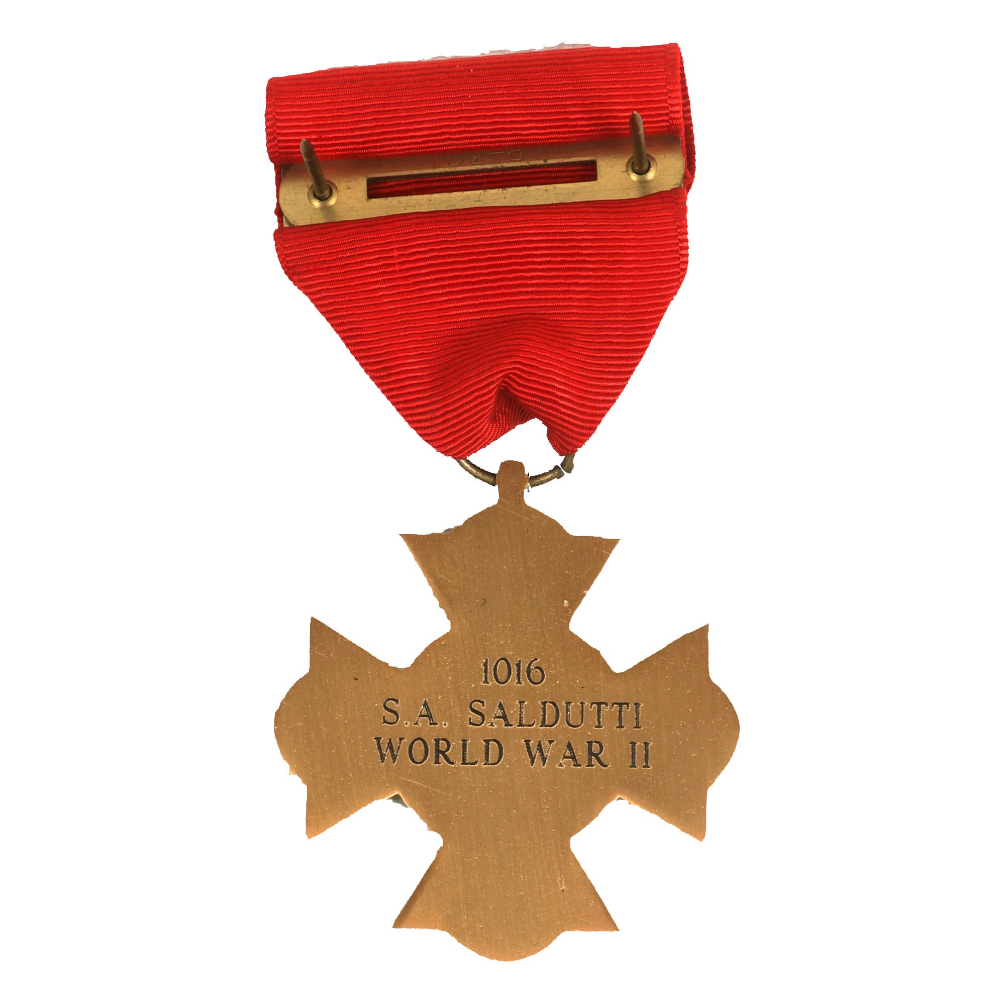 - Saldutti’s Engraved N.O.B.C. (National Order of Battlefield Commissions) Medal of Valor, engraved on the reverse 1016 S.A. SALDUTTI WORLD WAR II. We can’t find any other examples of this medal but it was likely awarded for Saldutti’s Valor during the Battle of the Bulge. The medal is in its original presentation case with the ribbon and is in fantastic condition.