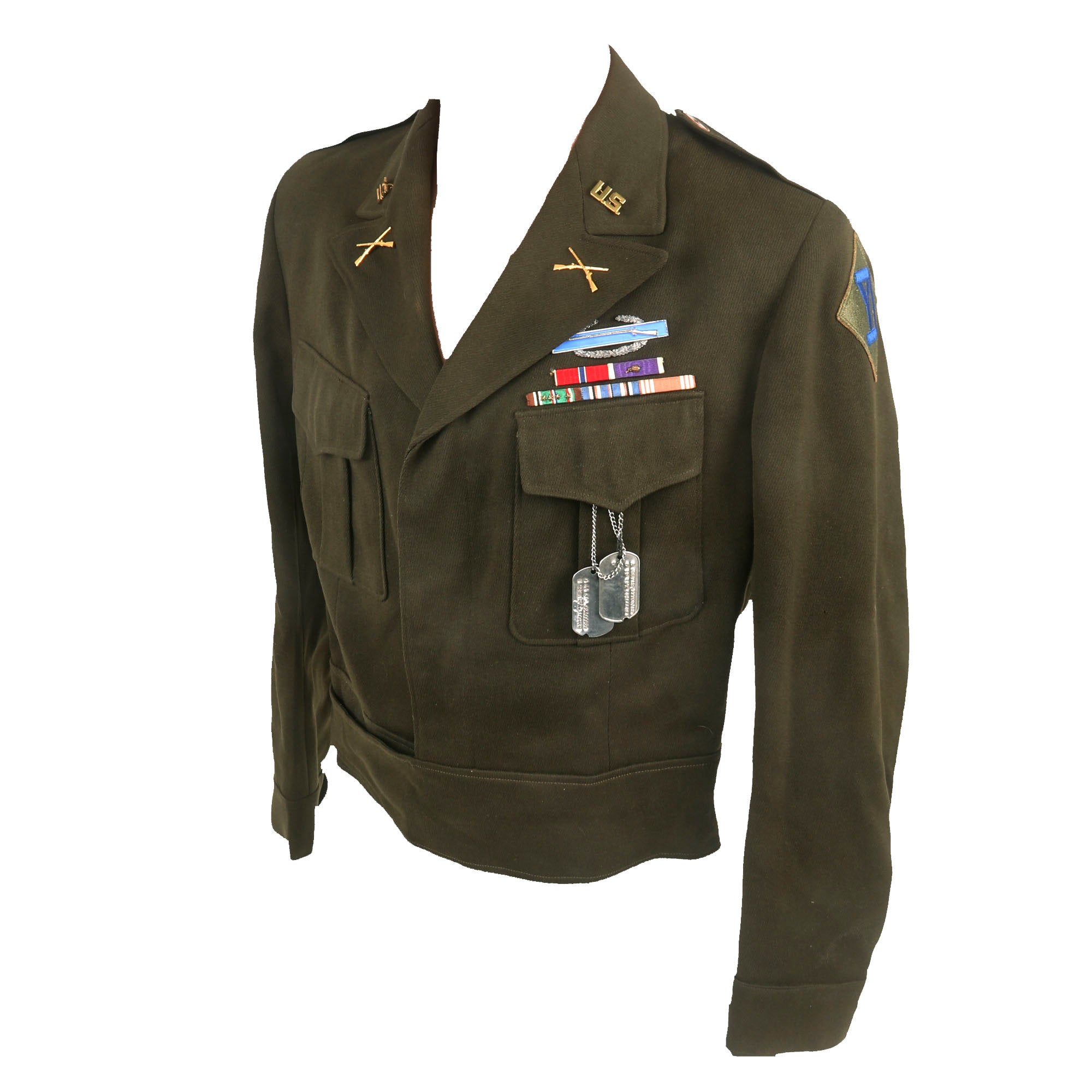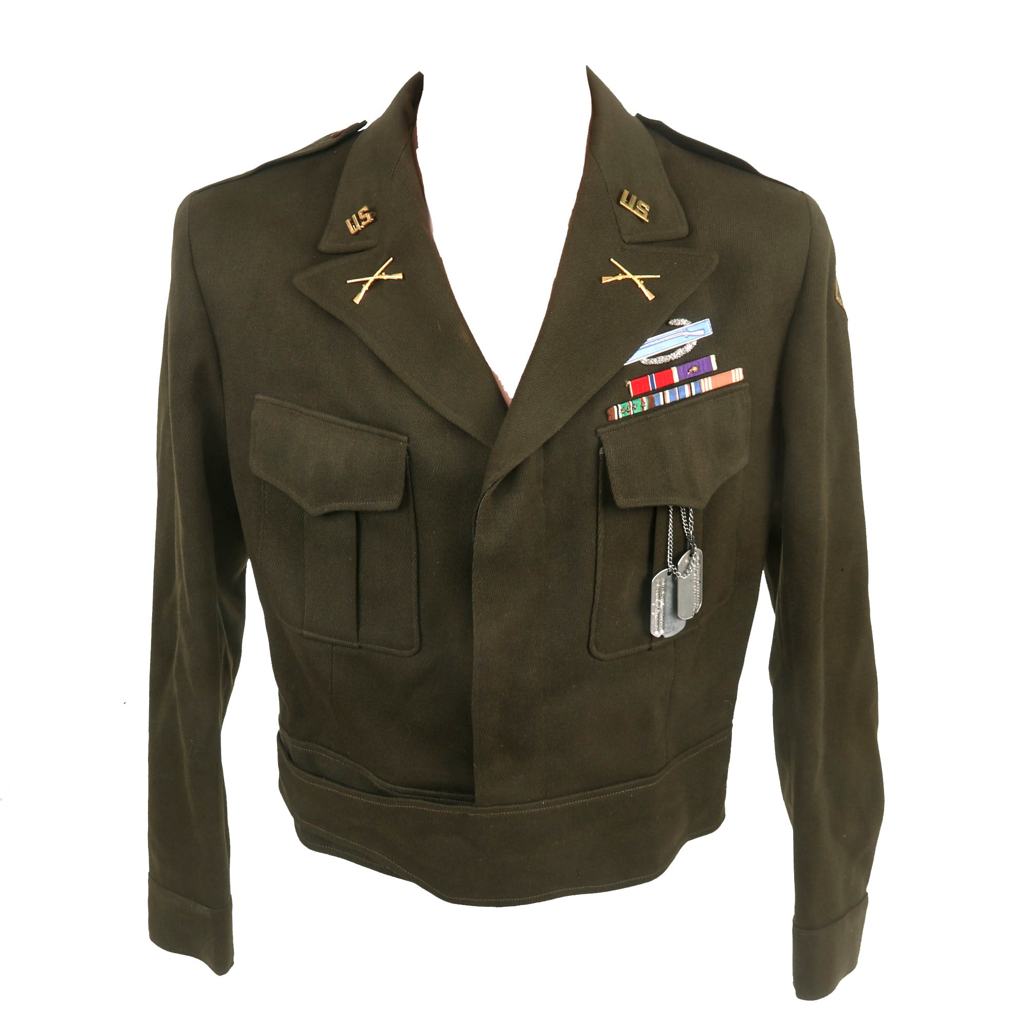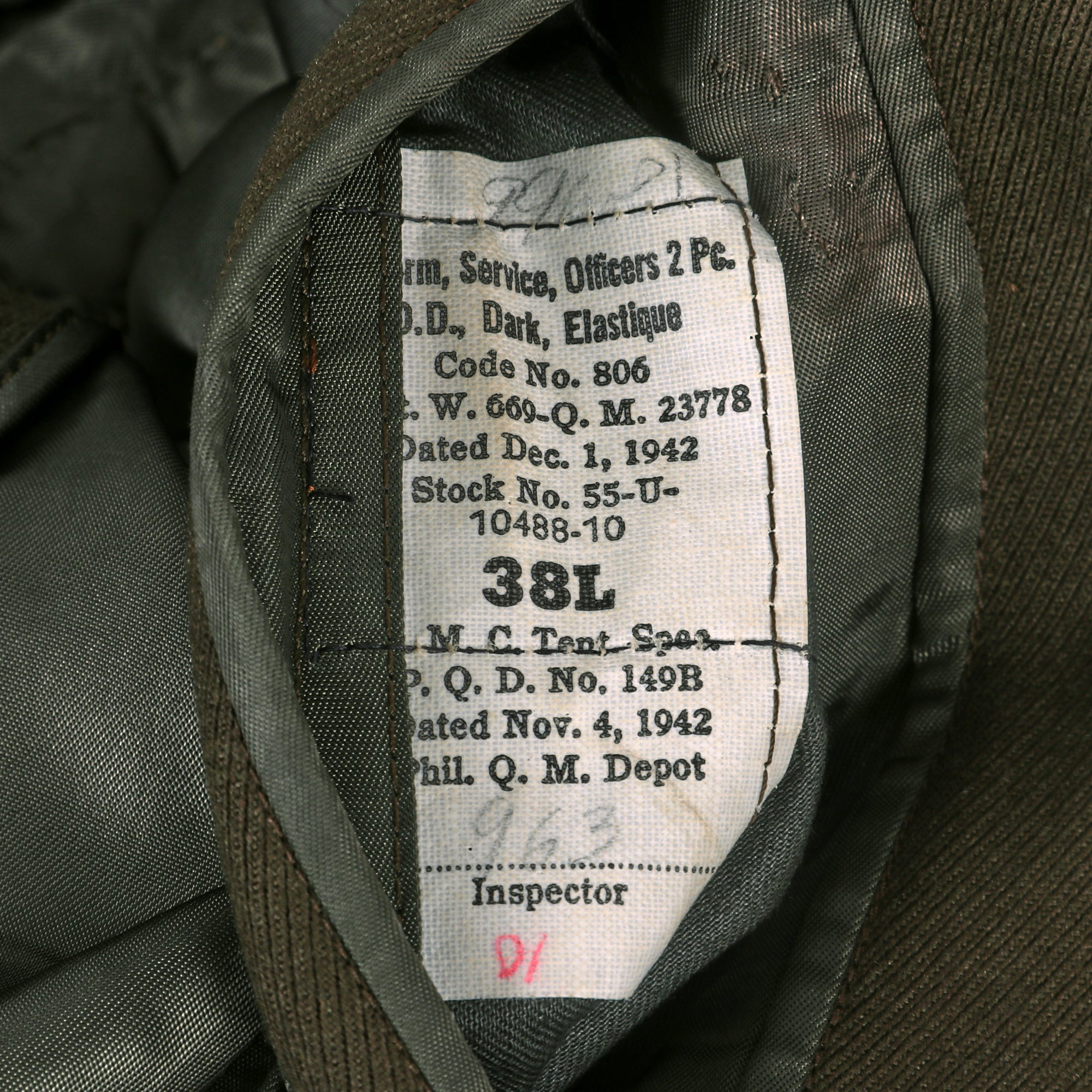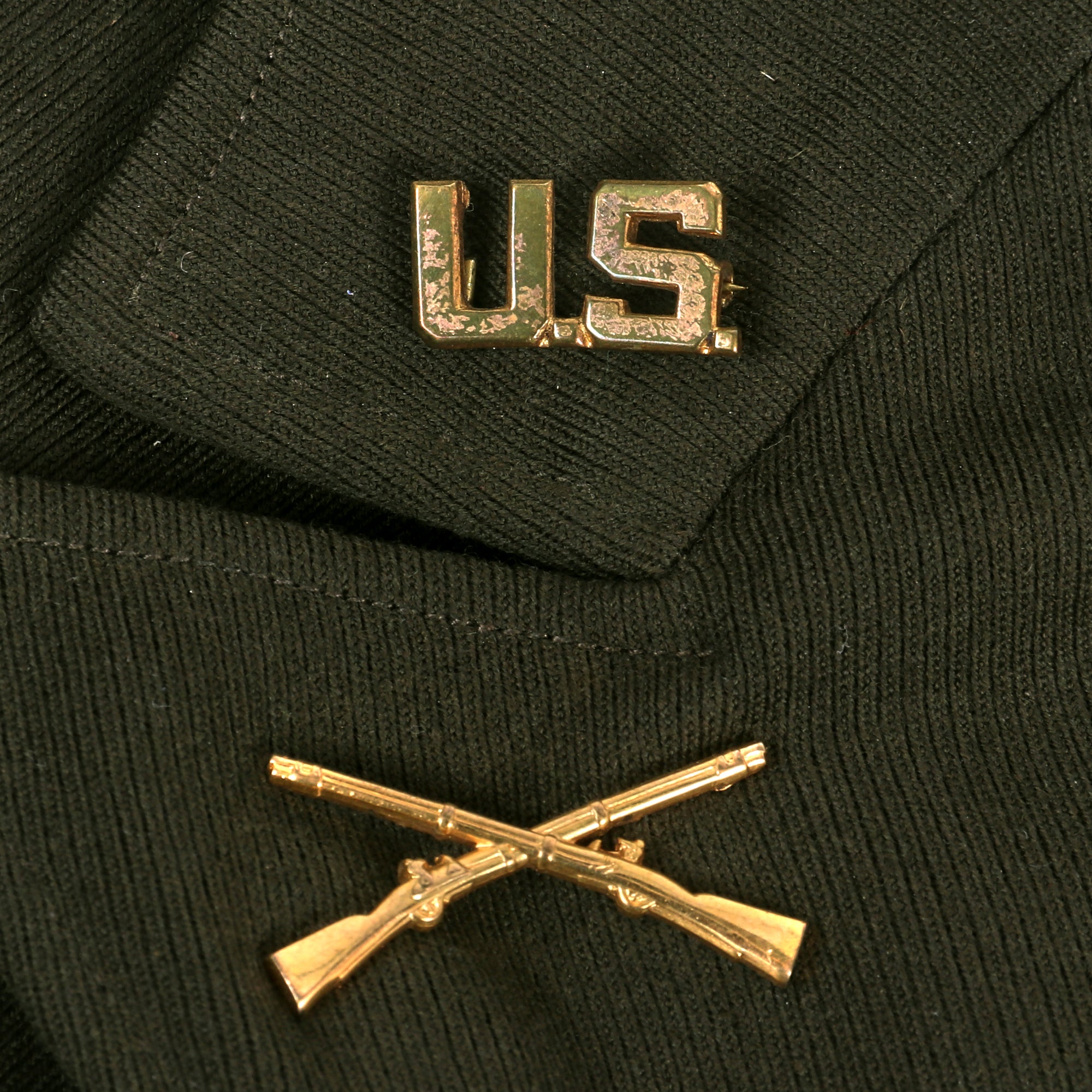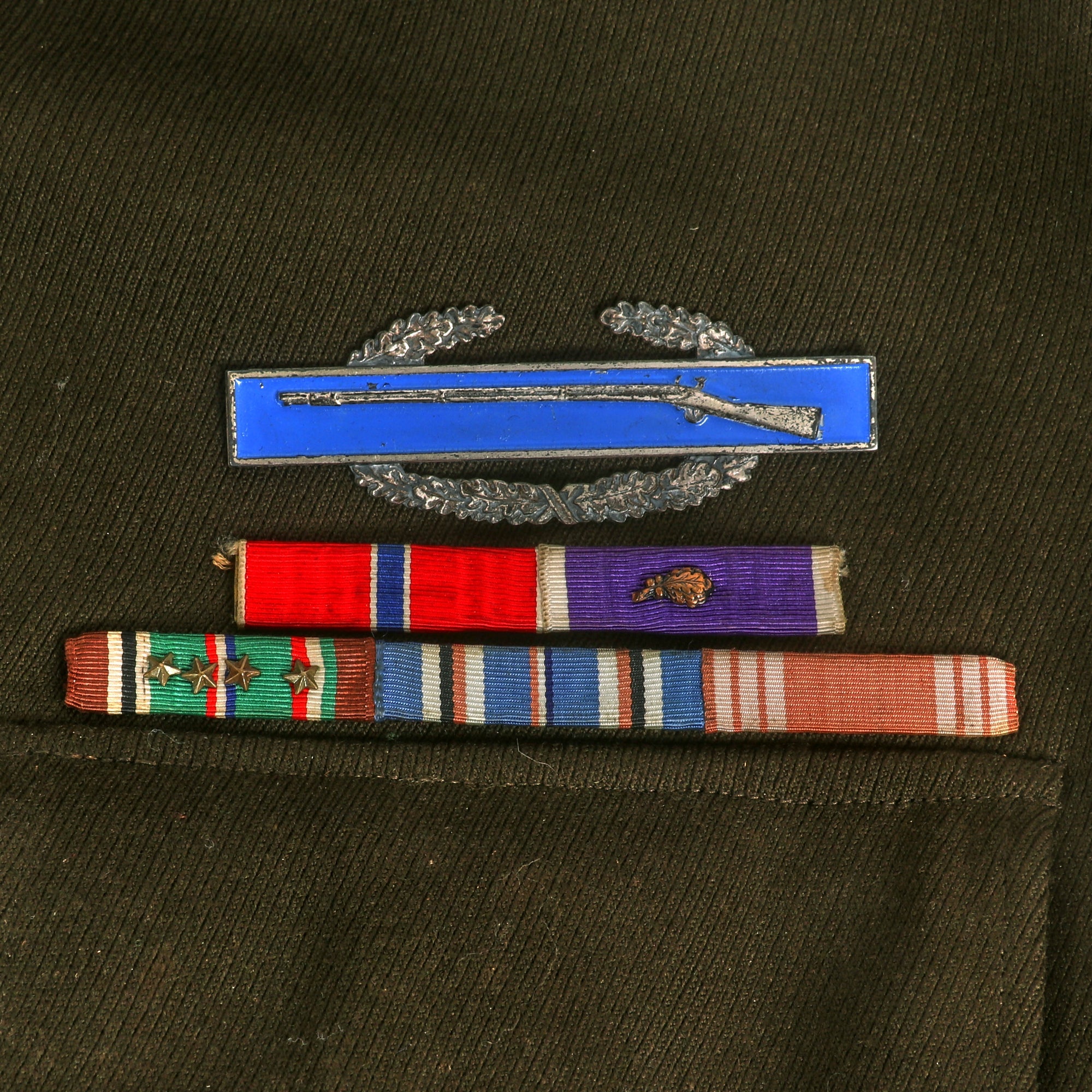 - Saldutti’s Officer’s jacket, with no insignia except for a gorgeous Bullion Combat Infantry Badge. There is likely enough insignia in the grouping to put this uniform back together, but it would require some extra pieces as well.