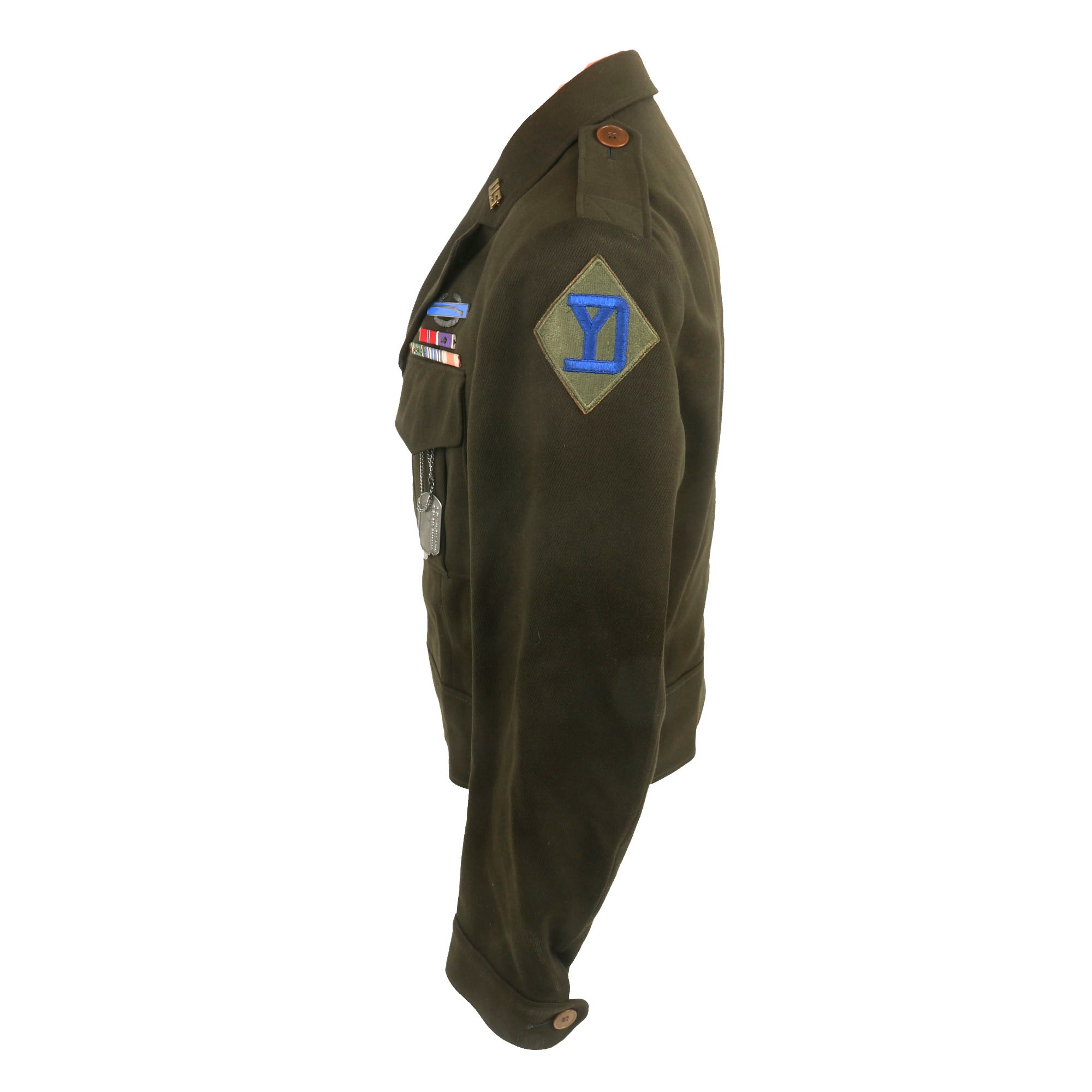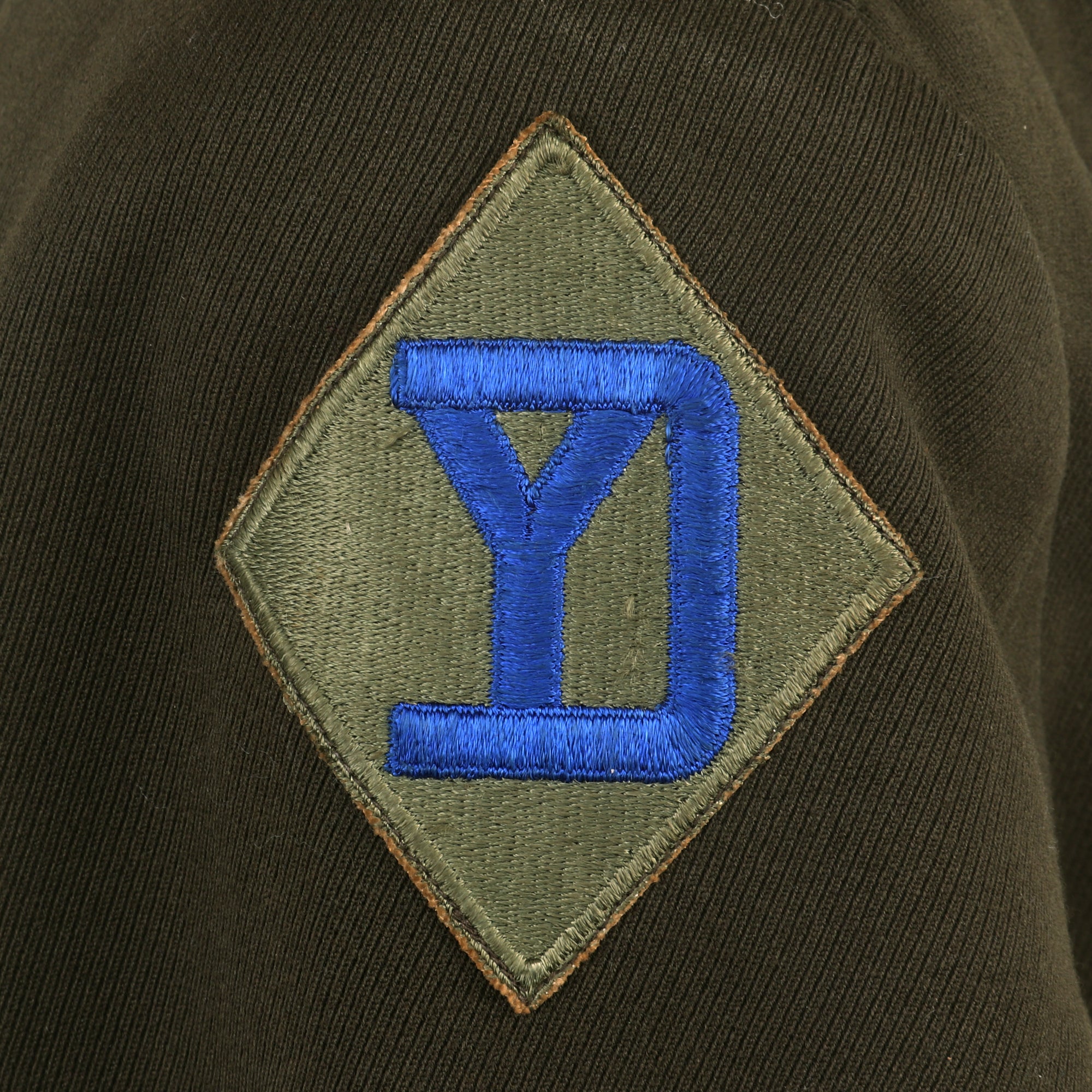 Original Grouping. One-of-a-Kind. This is the tremendous uniform grouping of 1st Lieutenant Samuel A. Saldutti, Mortar Platoon, Company D, 328th Infantry, 26th “Yankee” Infantry Division. There is a great 15-minute interview with Saldutti discussing his service and his battlefield commission during the Battle of the Bulge, which can be found at this link. Saldutti was awarded the Bronze Star Medal and the Purple Heart Medal with an Oak Leaf Cluster.