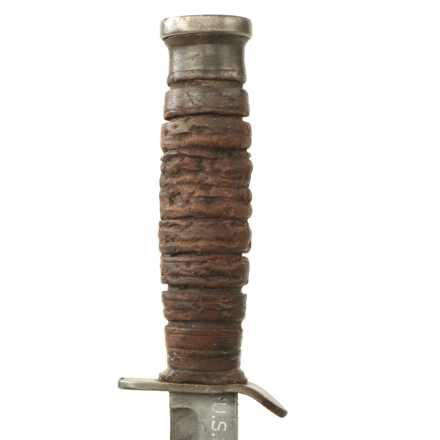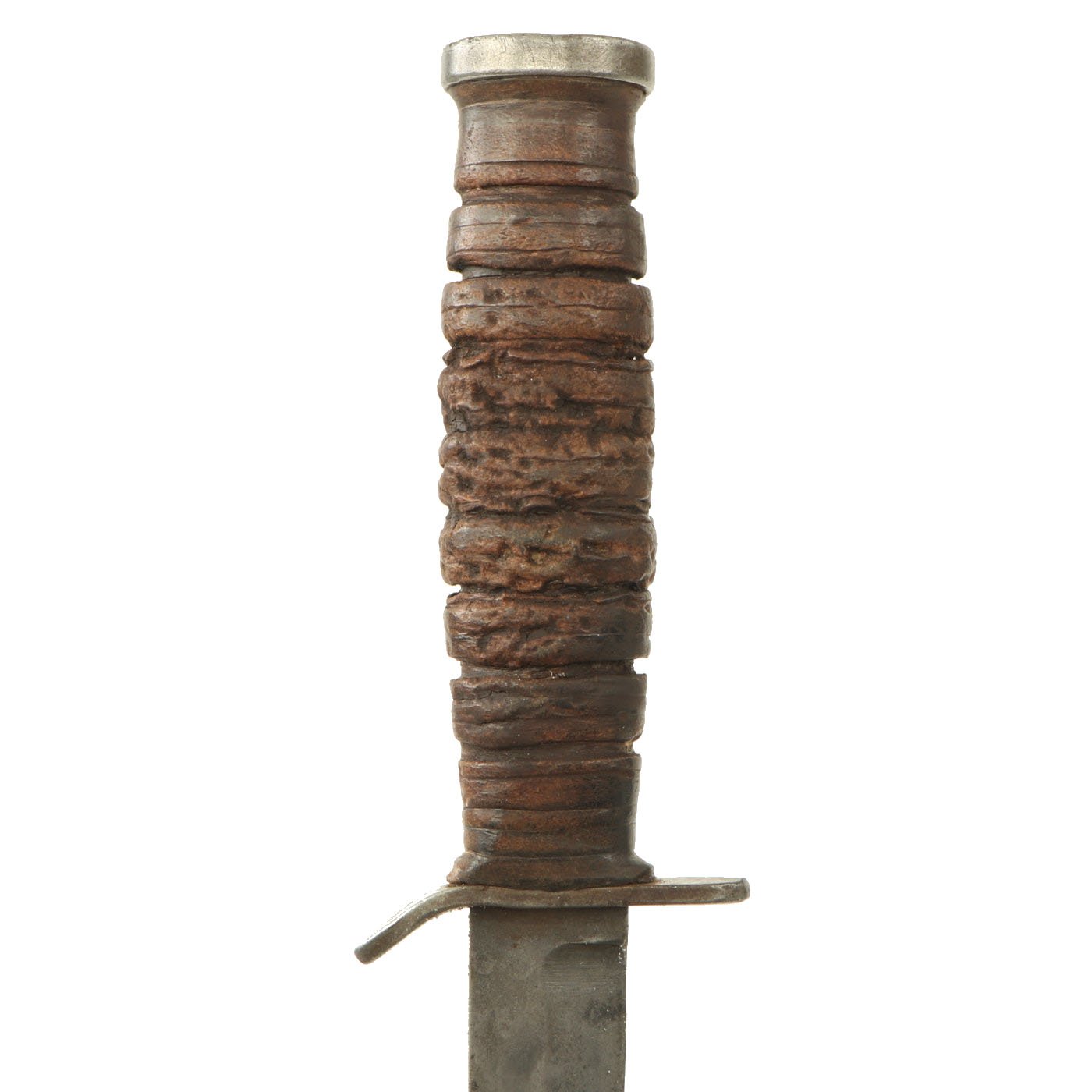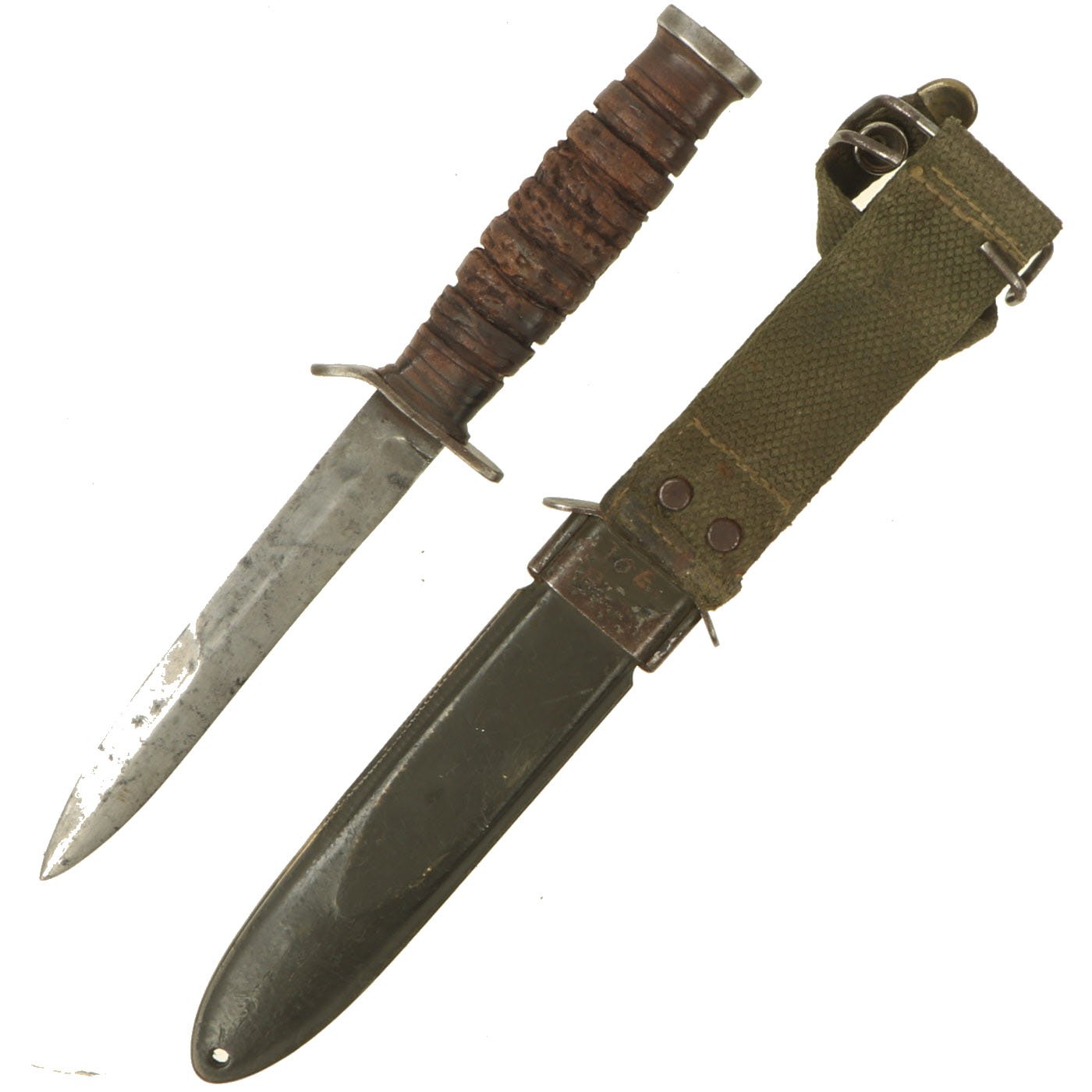 A very nice service used example of an early issue blade marked M3 knife from a desirable maker, complete with the correct scabbard. Ready to add to your WWII edged weapon collection!