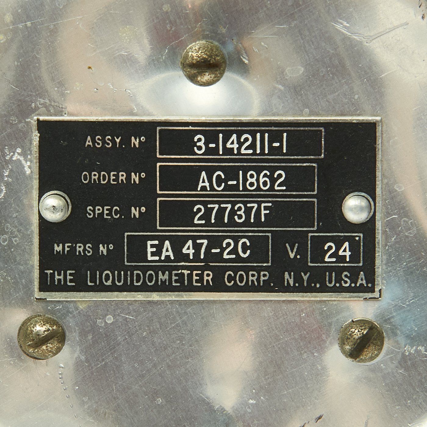 Original Item: Only One Available. This is a WWII Fuel Quantity Indicator that is located in the pilot's main instrument panel of the Boeing B-17 Flying Fortress. It was manufactured by the Liquidometer Corporation and is part number EA-47-2C. It is in very good condition and would look fantastic in a display panel.